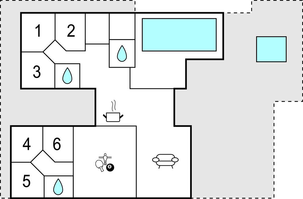 Indenfor venter jer et aktivitetsrum, der vil få ethvert spilleelskers hjerte til at banke hurtigere. Udfordr familien til et underholdende spil billard, bordfodbold, bordtennis eller dart. I stuen kan I slappe af i sofaområdet, se en film eller fordrive tiden med spillekonsollen og derved nyde hyggelige timer sammen. Det åbne og rummelige køkkenalrum byder alle feriegæster velkommen. Det er ikke blot et sted, hvor madlavningen er en fornøjelse, men også en social samlingsplads under jeres ferie.