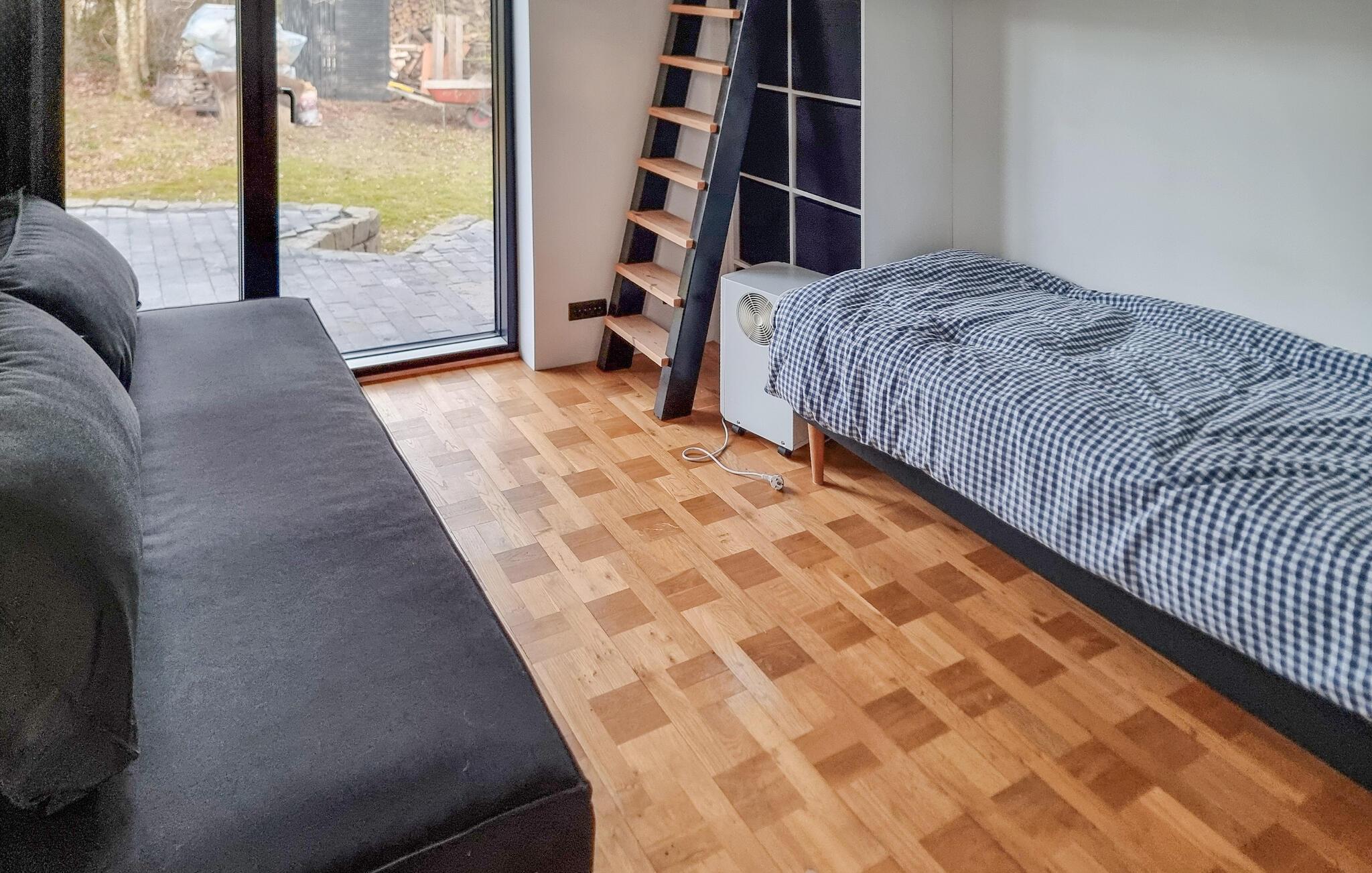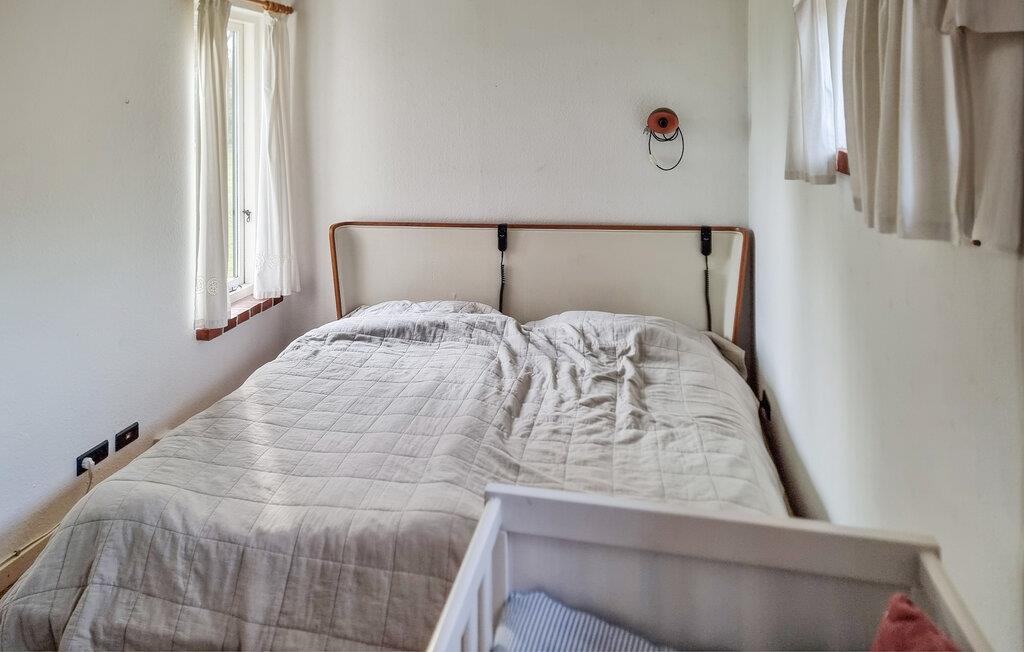Dette komfortable feriehus byder jer velkommen med et hyggeligt interiør, hvor store vinduer giver masser af naturligt lys og giver jer en smuk udsigt over haven. Tilbered kulinariske lækkerier, lyt til den blide knitren fra brændeovnen under afslappede måltider og slap af med en film i stuen efter en lang dag på farten.