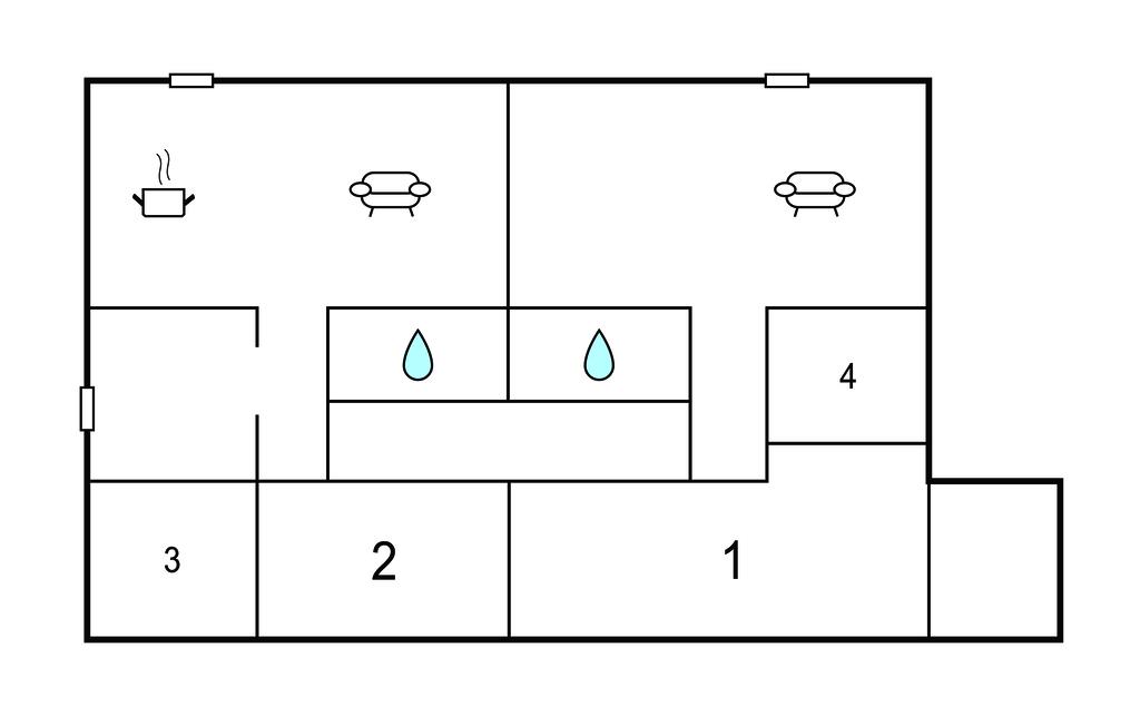 Opholdsstue - 2 Sovepladser. (Sofa, madras eller lignende). 1 Soveplads. (Madras).