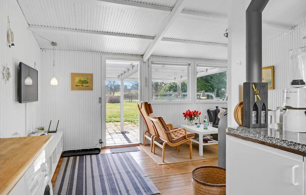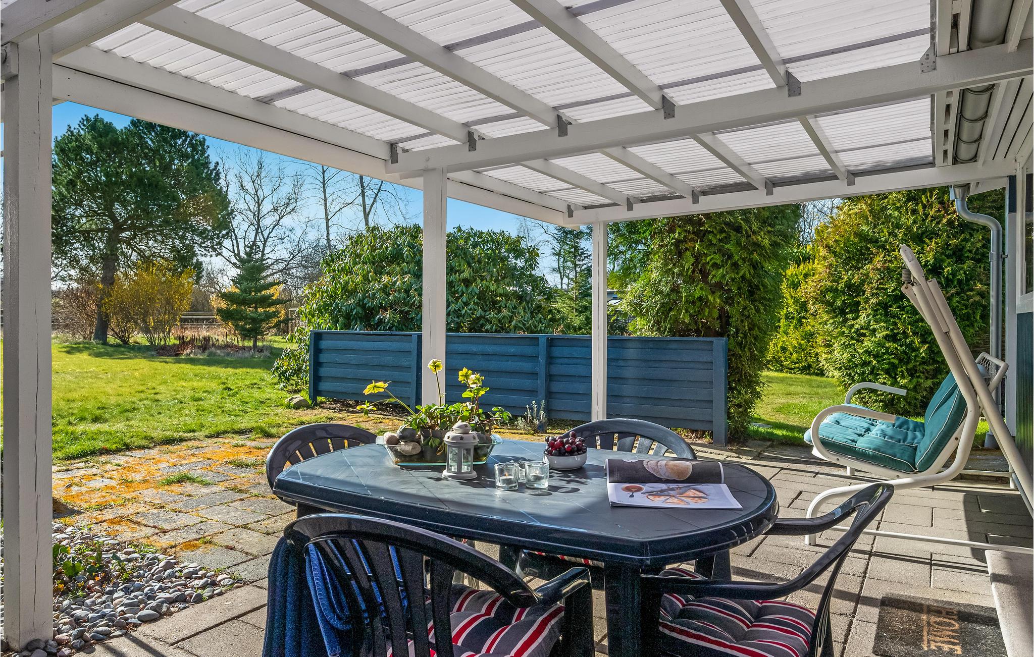 Velkommen til dette hyggelige, lille sommerhus i Nordsjælland, hvor I bliver mødt af husets flotte, blå facade og de skønne, grønne omgivelser. Huset er lyst og behageligt indrettet i klassisk dansk sommerhusstil med gedigne materialer og en brændeovn til de kølige aftener. Haven skaber en rolig ramme omkring huset, så her kan I sætte jer ud, når solen er fremme og læse en bog i en af liggestolene. Der står også en grill klar til sommeraftenerne, hvor I kan sidde ude længe og lytte til fuglefløjt.