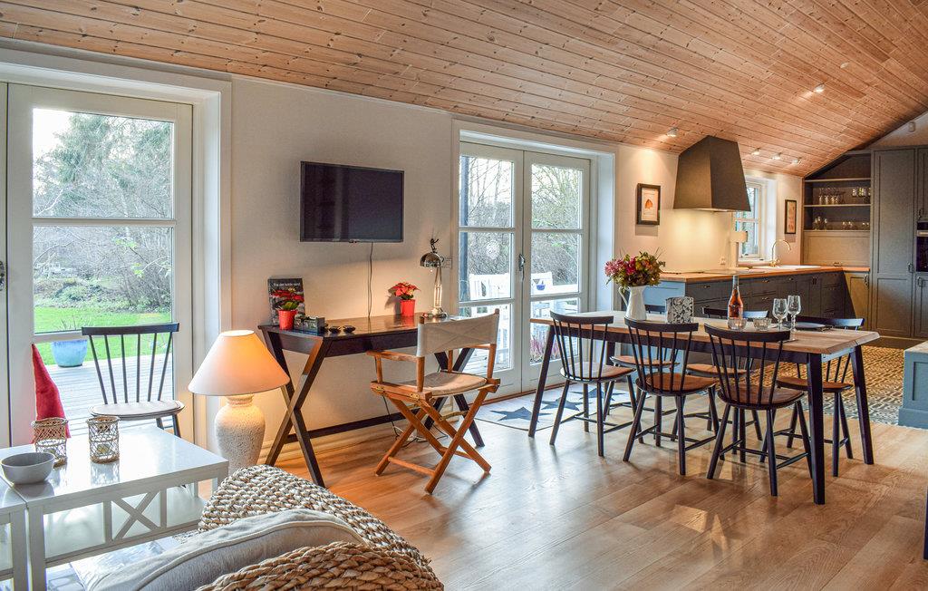 Smagfuldt indrettet feriehus i en lys og venlig stil, beliggende i et attraktivt sommerhusområde ved Gilleleje. Stuen og køkkenet ligger i samme rum, og det strømmer ind med lys fra det store vinduesparti. Den hyggelige brændeovn sørger for behagelig varme på kølige dage og aftener, og den energivenlige varmepumpe er en supplerende varmekilde. Tre gode værelser hvor af der er et ekstra tv på det ene . På terrassen kan I nyde solen dagen lang og grille dejlige måltider både til frokost og aften. Huset ligger på en dejlig stor naturgrund med anlagt græsplæne, for enden af grunden løber en lille å. I dette dejlige feriehus kan hele familien slappe af fuldstændig af og komme hinanden ved.