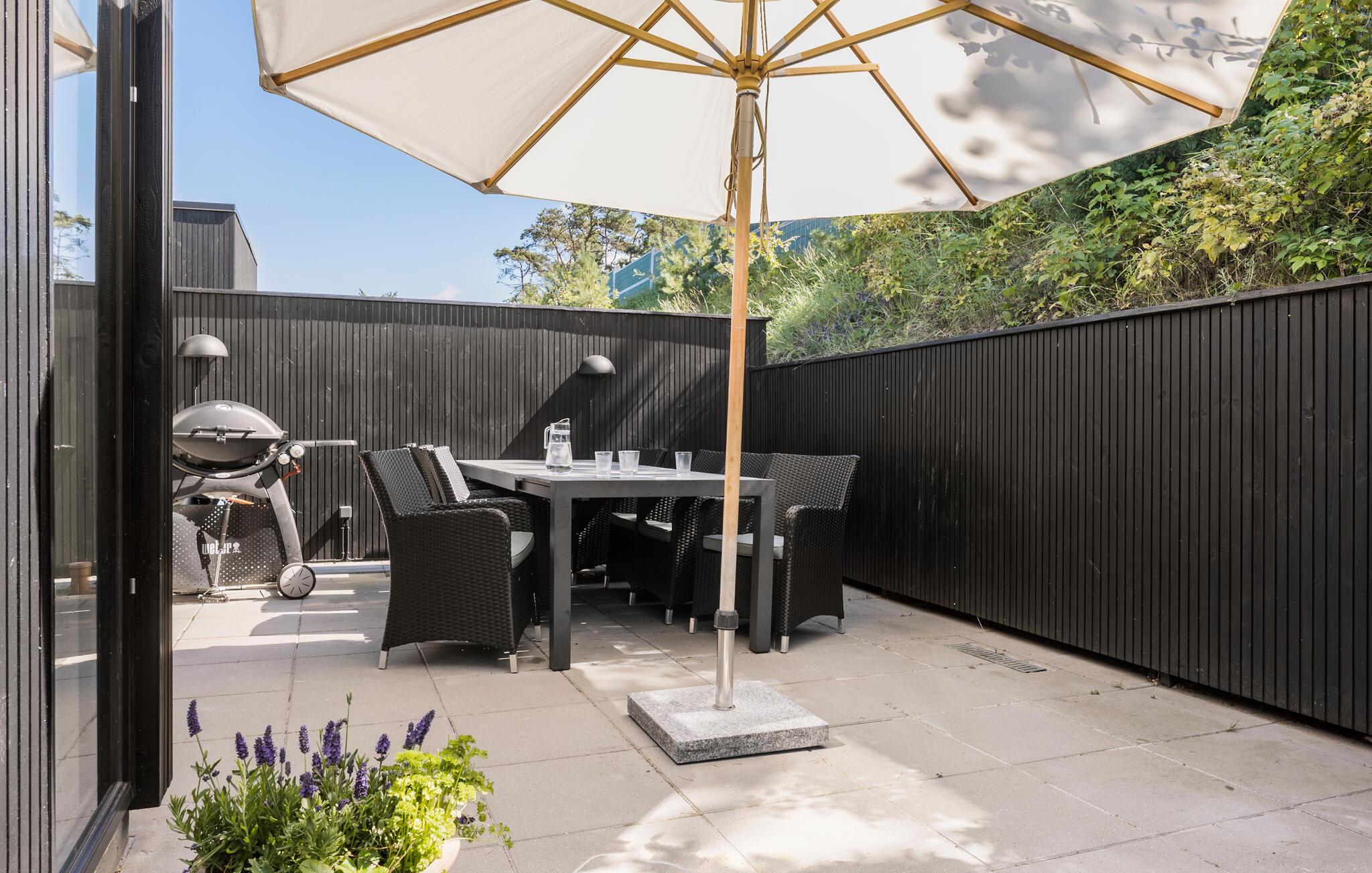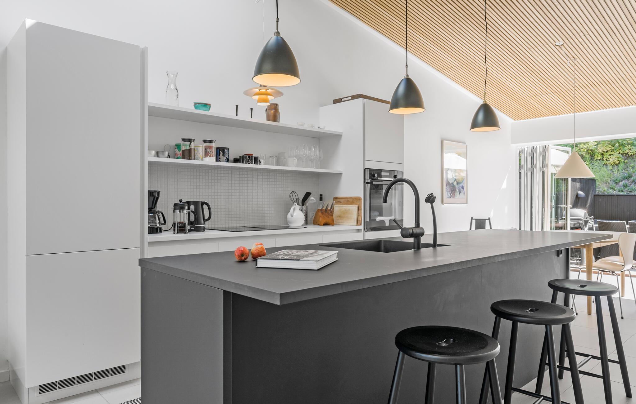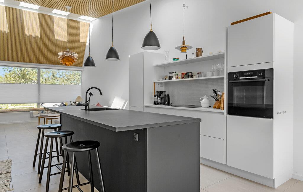 Glæd jer til et skønt sommerhus tæt på stranden i Gilleleje. Huset er en ægte perle med moderne indretning samt åbent og lyst design. Den rummelige opholdsstue med højt til loftet og store vinduespartier lukker masser af naturligt lys ind og skaber en indbydende og afslappet atmosfære. Efter en lang dag kan I læne jer tilbage i den bløde sofa og måske sætte en god film på. I det veludstyrede køkken kan I bruge god til på at lave mad sammen og nyde det enten om det runde spisebord eller ude på terrassen. Står menuen på grillmad, er der mulighed for tænde op i grillen og nyde det danske vejr. Slå parasolen op og slap af i liggestolene med en god bog eller podcast i ørerne.