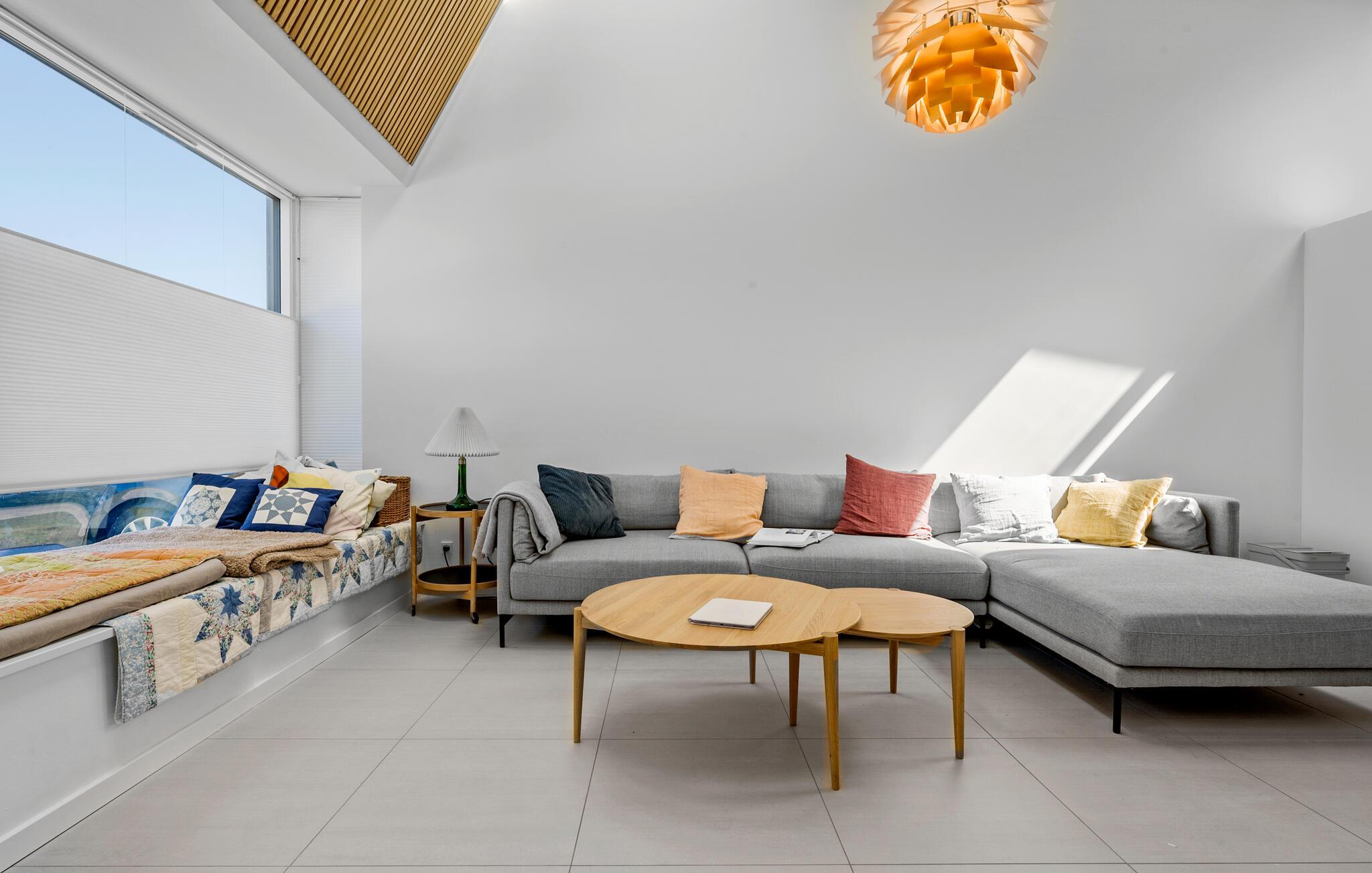 Moderne og lyst sommerhus i Gilleleje tæt på strand og feriecenter med pool og sauna.