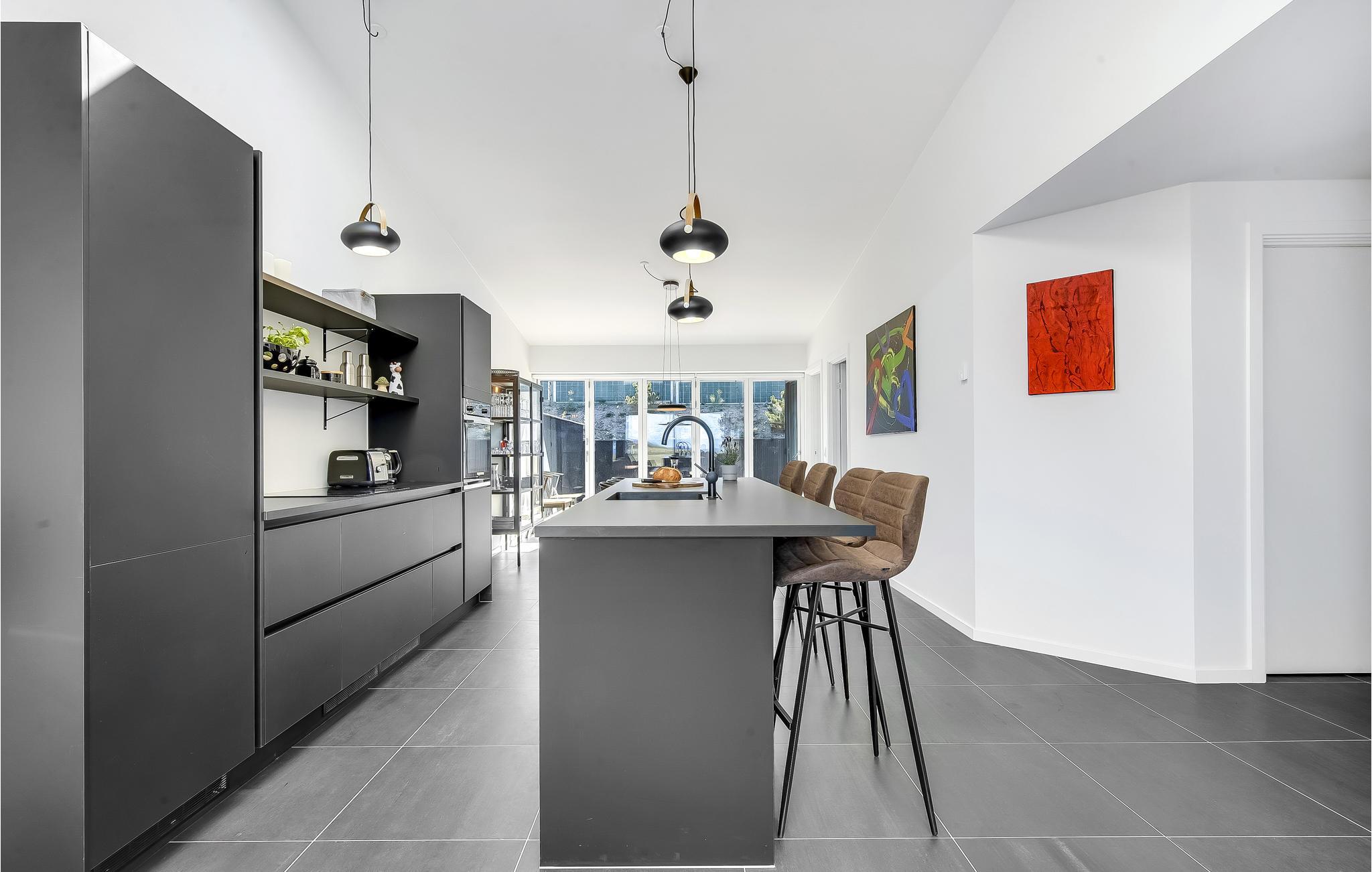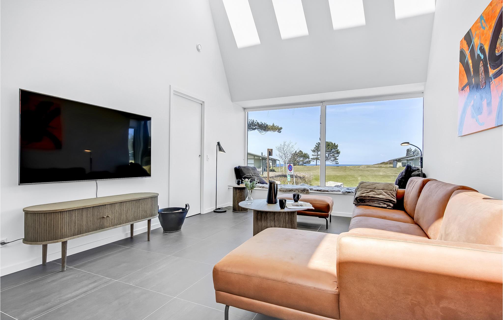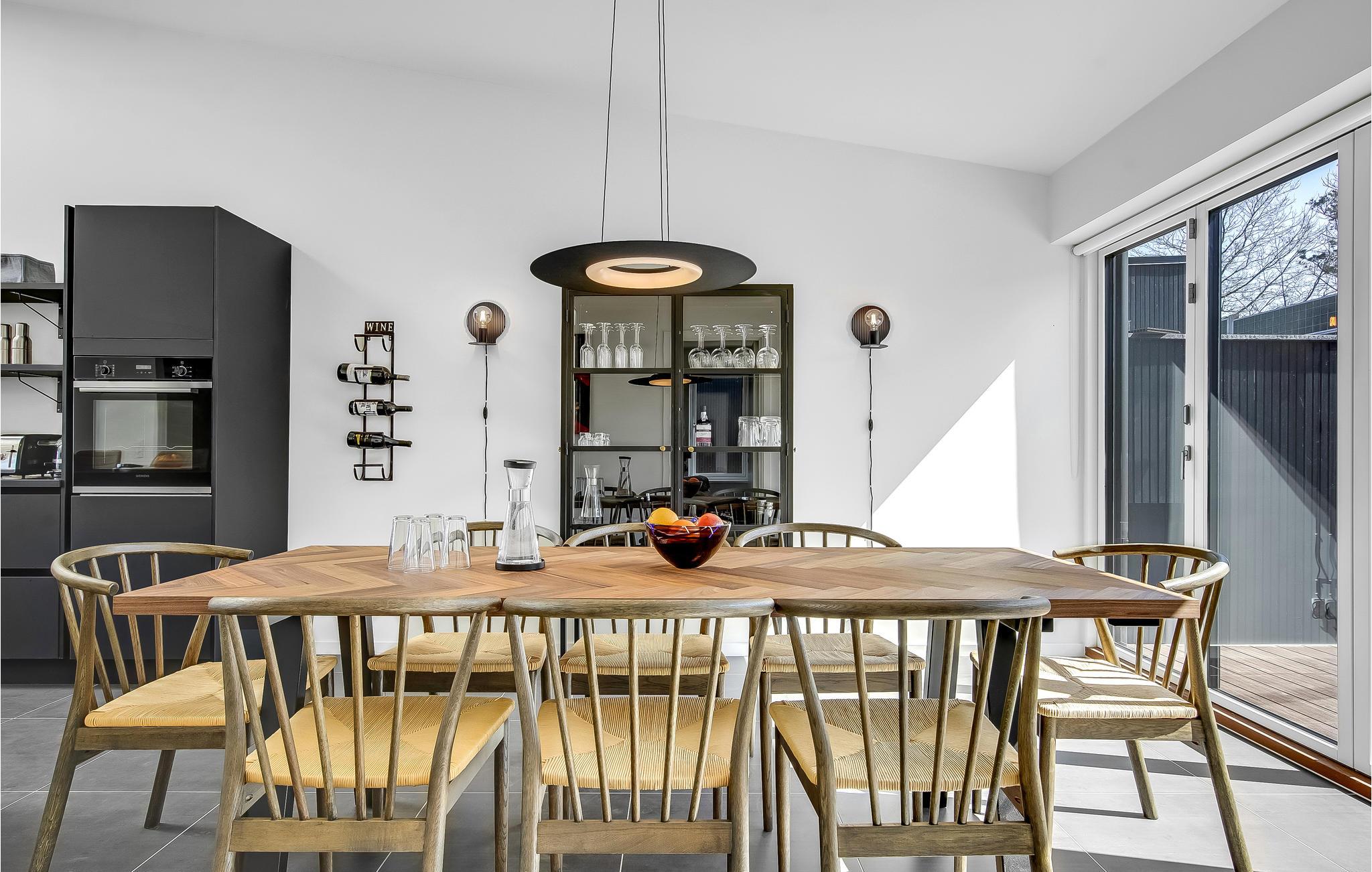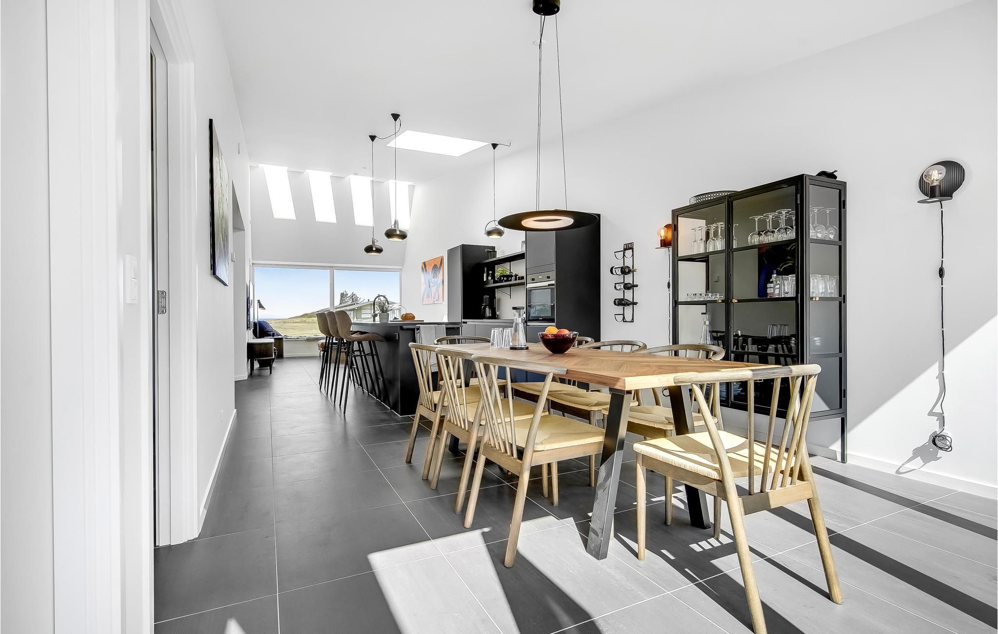 Dette attraktive sommerhus har en forrygende placering på kysten i Gilleleje. Her kan I se frem til nogle dage, hvor I omgiver jer med lækre kvalitetsvalg og smagfulde indretningsløsninger overalt. Dagen begynder måske med en kop kaffe på baren i køkkenet, hvis solen ikke allerede er kommet frem på terrassen. Måltiderne nydes med udsigt til den grønne grund og vandet længere ude. Det er nogle omgivelser, som man kun kan forelske sig i.