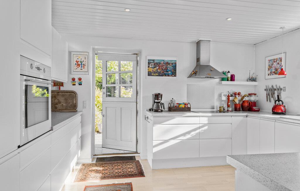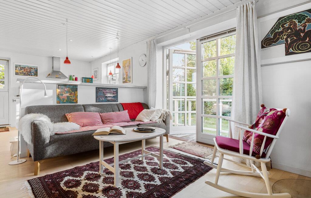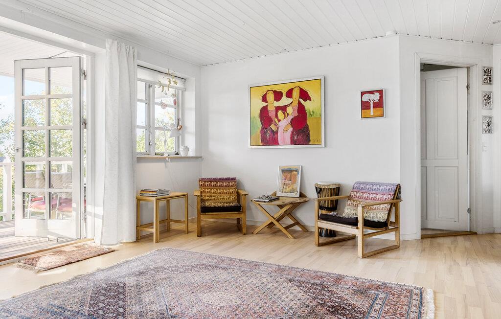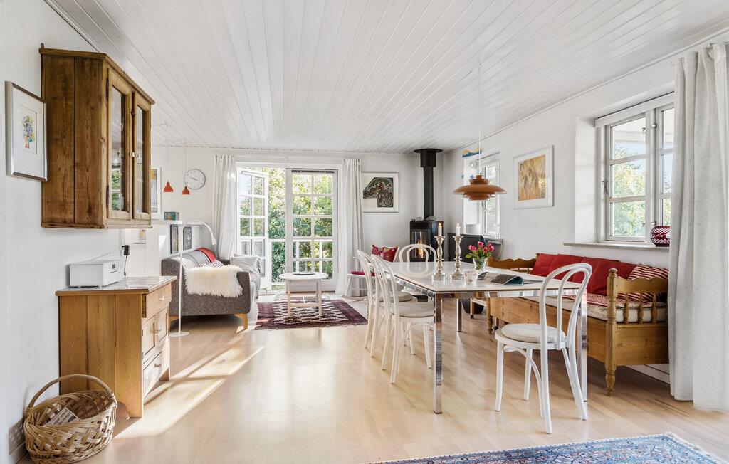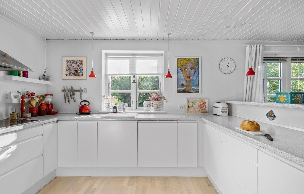 Tilbring jeres ferie i dette traditionelt designede feriehus ved Gilleleje Strand, som imponerer med et åbent og lyst rumkoncept. Den rummelige stue med de store vinduer skaber en indbydende atmosfære. Efter en dag ved havet kan I slappe af på de komfortable siddepladser eller tilberede lækre måltider i det veludstyrede køkken. Spiseområdet, som glider sømløst over i stuen, er ideelt til hyggelige aftener med familie og venner.