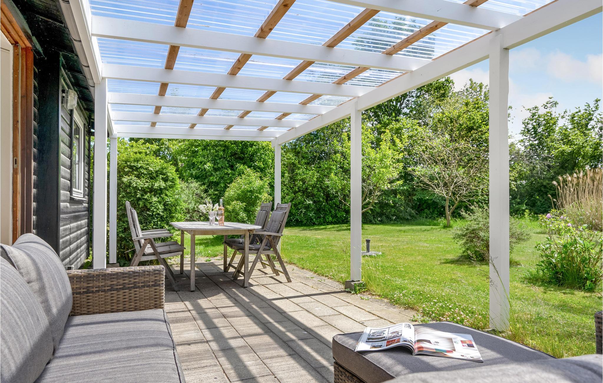 Udenfor inviterer terrassen jer til at nyde dejlige øjeblikke udendørs. Start dagen her med en lækker morgenmad og planlæg dagens aktiviteter. I finder smukke lounge møbler på den overdækkede terrasse.