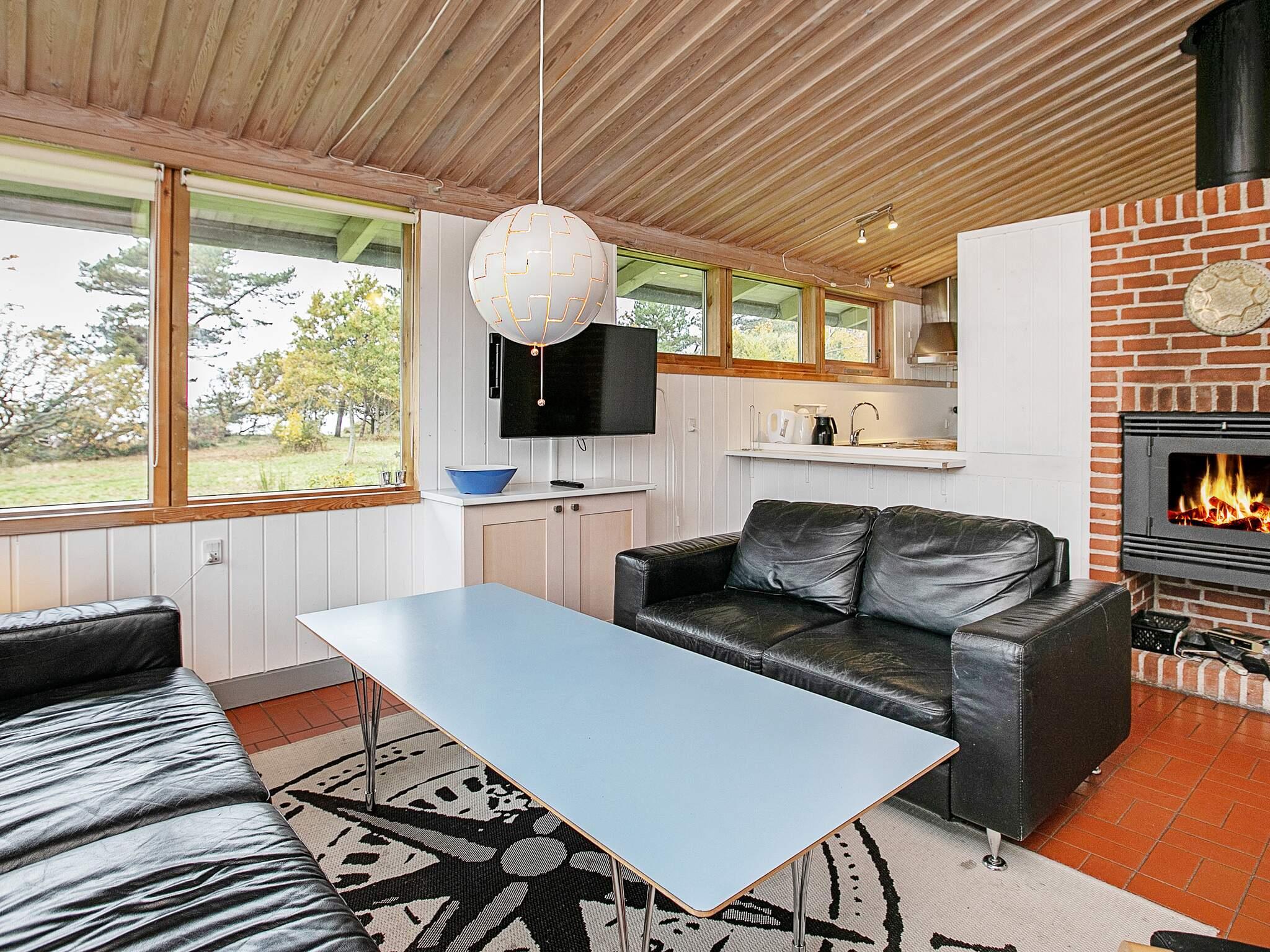 Dette kysthus er indrettet med entre og fordelingsgang samt to soveværelser, hvoraf det ene er med dobbeltseng. Det andet værelse i huset indeholder to enkeltsenge samt to køjesenge. Husene indeholder derudover en stor lys stue med brændeovn samt et stort køkken-alrum med spiseplads. Der er fra stuen direkte adgang til den store overdækkede terasse. I disse typer er der to badeværelser i boligen.