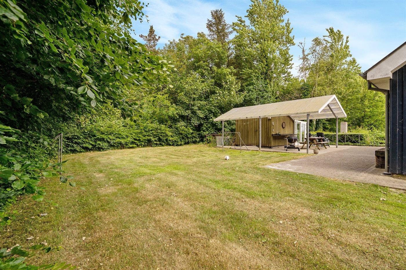 Ferieboligen er beliggende på en 5500 m² stor naturgrund. Der er 15000 m til havet. Der er 150 m til fjorden. Nærmeste forretning er beliggende i en afstand af 3800 m. Der er en golfbane i en afstand af 3000 m. Til ferieboligen hører 100 m² terrasseareal. Desuden er der 18 m² overdækket terrasse. Der er redskabsrum. På lune aftener sørger en udendørs pejs for hyggelig stemning. Grill til rådighed. Parkering ved ferieboligen.