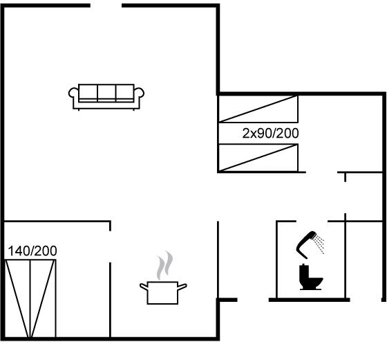 Der er i alt 2 soveværelser. Sovepladserne fordeler sig på: 2 sovepladser i dobbeltseng. 2 sovepladser i enkeltsenge.