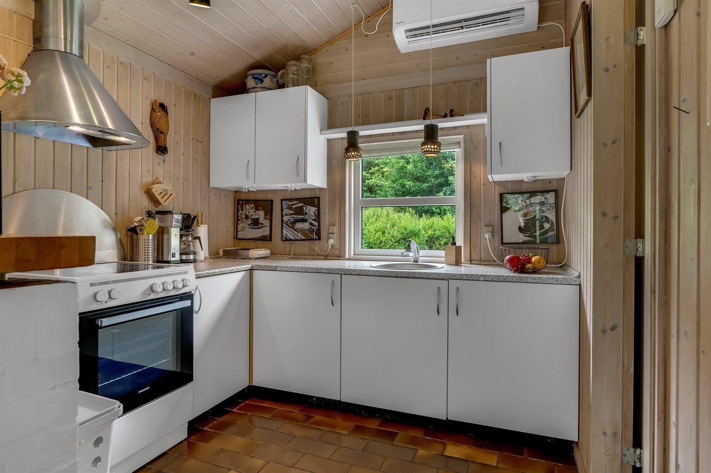 Ferieboligen er beliggende på en 3302 m² stor havegrund. Der er 400 m til fjorden. Nærmeste forretning er beliggende i en afstand af 3000 m. Til ferieboligen hører åbent terrasseareal. Desuden er der overdækket terrasse. Grill til rådighed. Parkering ved ferieboligen.