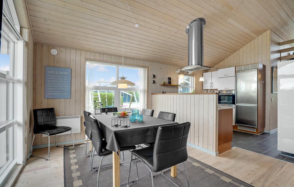 Dette charmerende sommerhus har en lys og behagelig indretning, så her får I en behagelig ramme om jeres dage i det vestjyske. Børnene vil sikkert elsker at lege på den store hems, og i haven er der også god plads til at boltre sig. Her finder I også en grill til de lune sommeraftener, hvor I vil lave mad udendørs. Efter en lang dag på farten er det skønt at slappe af i spabadet eller tænde op i brændeovnen.