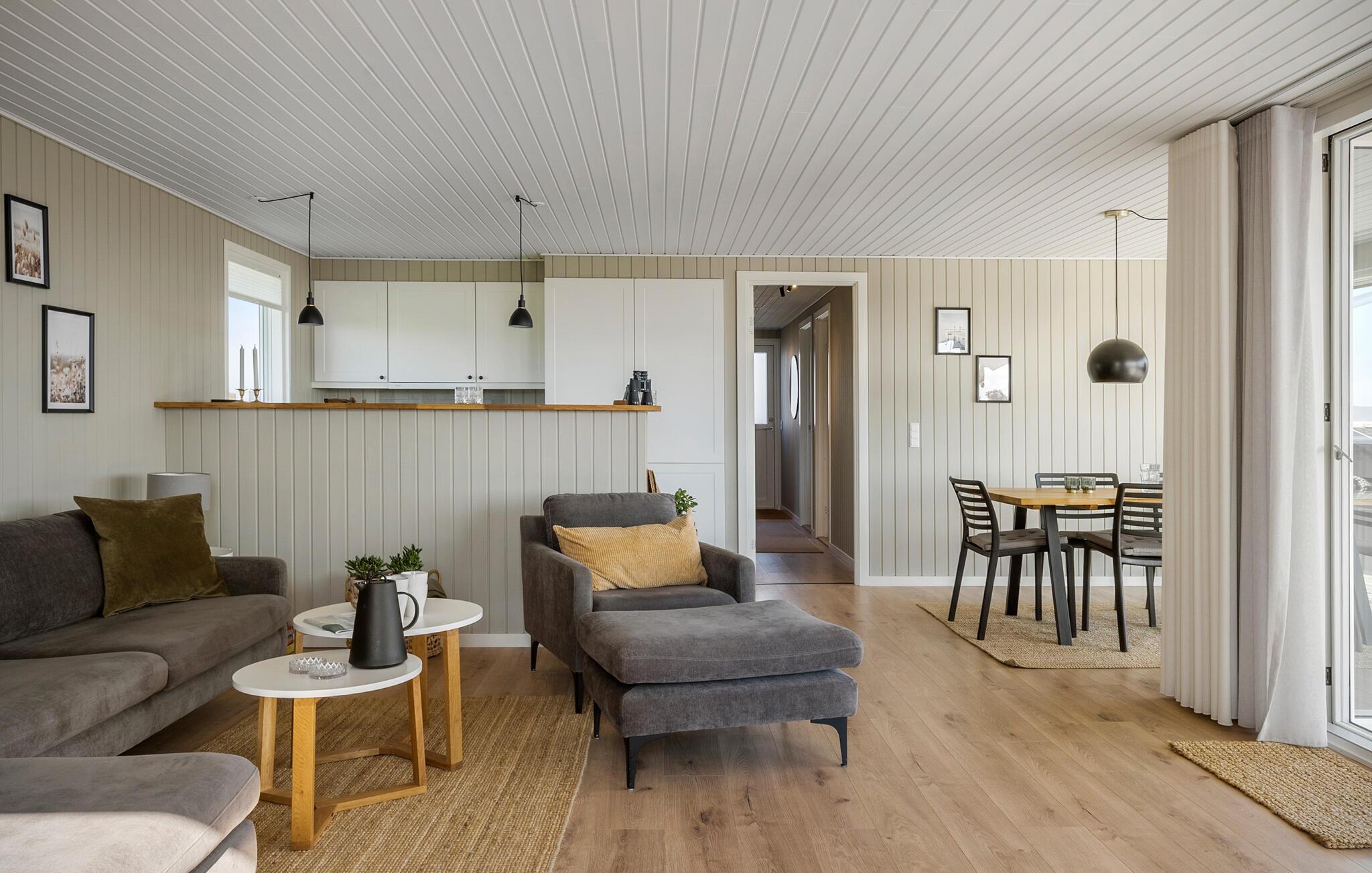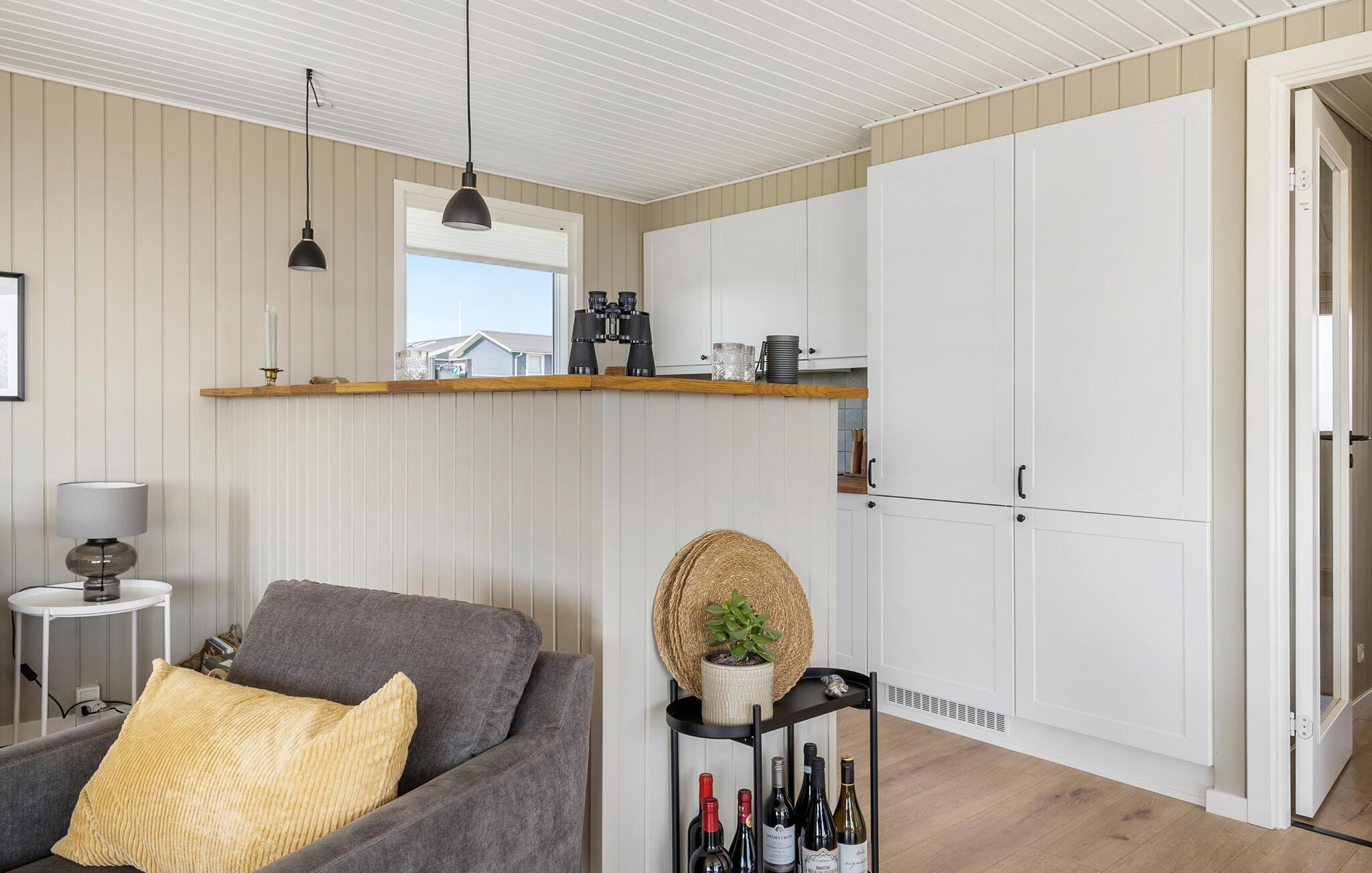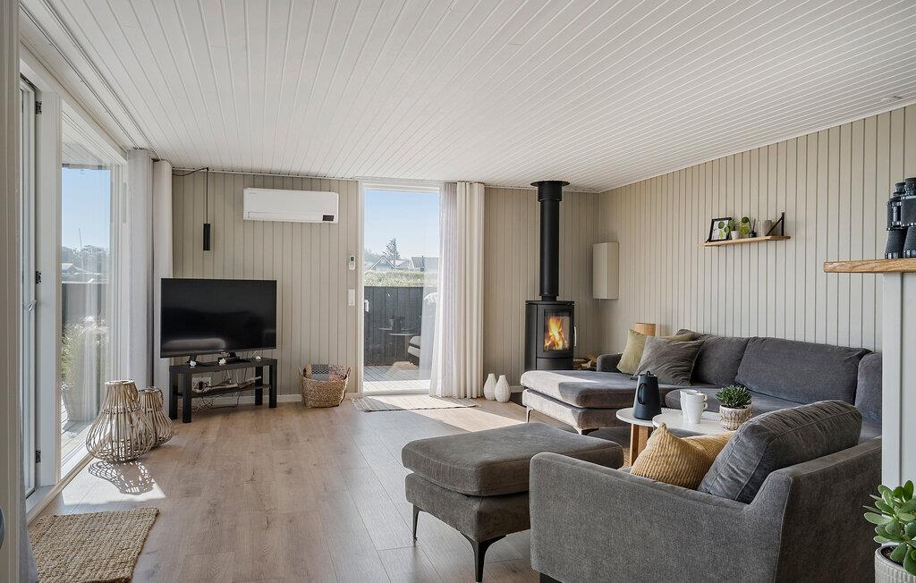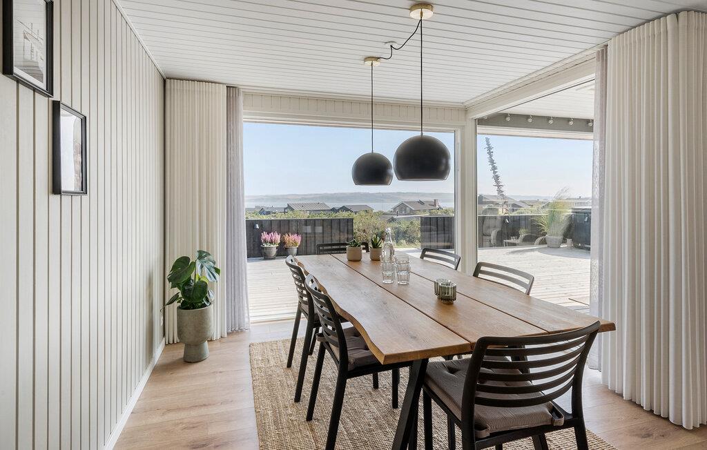 Forestil jer at vågne op i et lyst feriehus, mens de første solstråler kaster et gyldent skær over Limfjorden. Dette veludstyrede hus byder ikke kun på en fantastisk udsigt, men også en indbydende, moderne atmosfære, der gør det nemt at føle sig hjemme. Nyd de bløde, lyse farver og den åbne planløsning med køkken, stue og spisestue, hvor I kan slappe af og nyde ferien. Glæd jer til en hyggelig aften foran pejsen med en god film og benene oppe i sofaen.