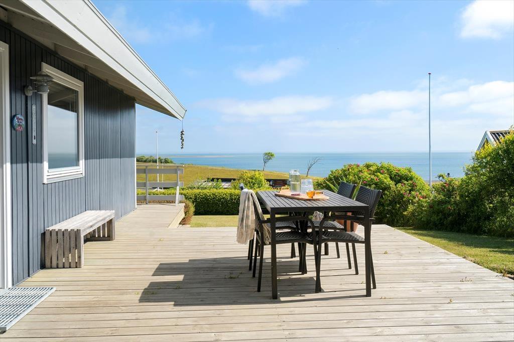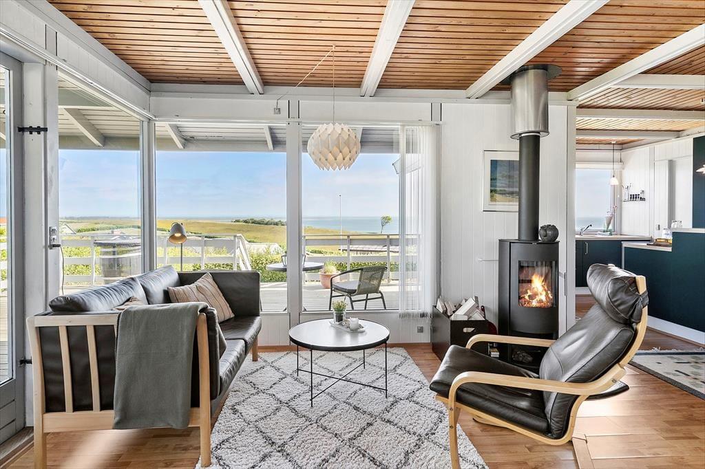På Gyvelvej 20 i Gjellerodde ligger et dejligt sommerhus, der kombinerer en skøn beliggenhed tæt på vandet med smuk udsigt over det bakkede landskab og Limfjorden. Her er der lagt op til ro, natur og nærvær – både på den store terrasse og indenfor i det lyse opholdsrum med brændeovn. Hvis du drømmer om en ferie, hvor du kan nyde morgensolen med udsigt til vandet og gå til stranden på få minutter, er det her det rette sted.