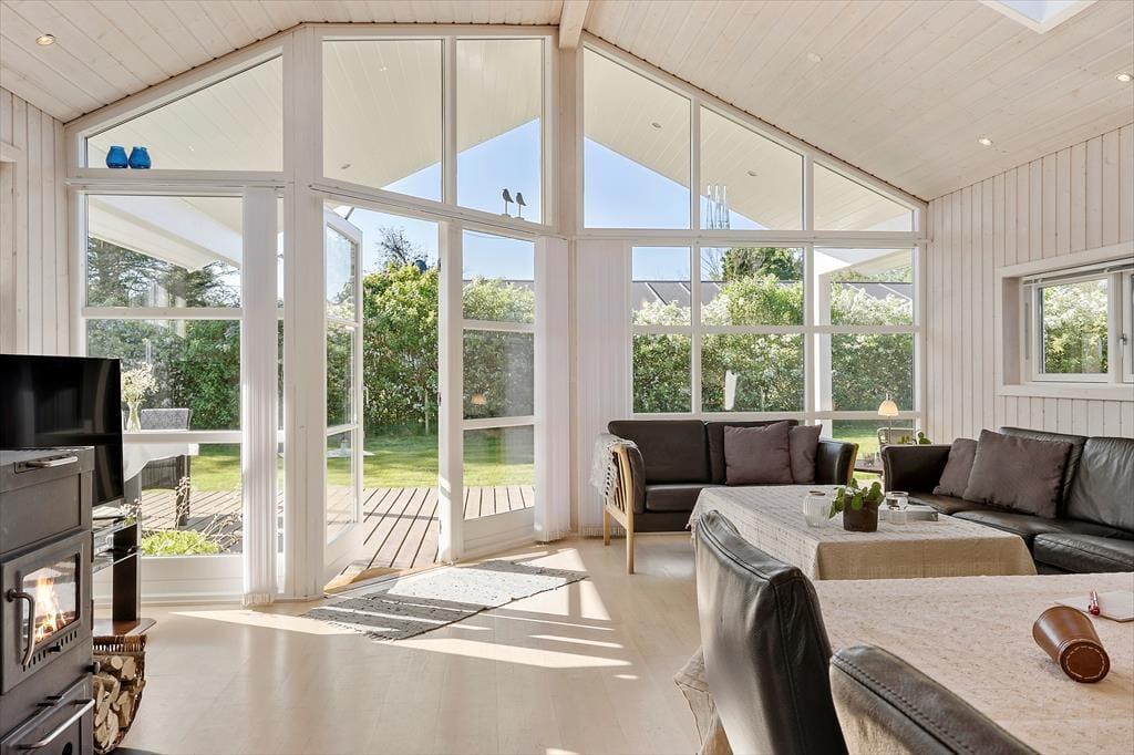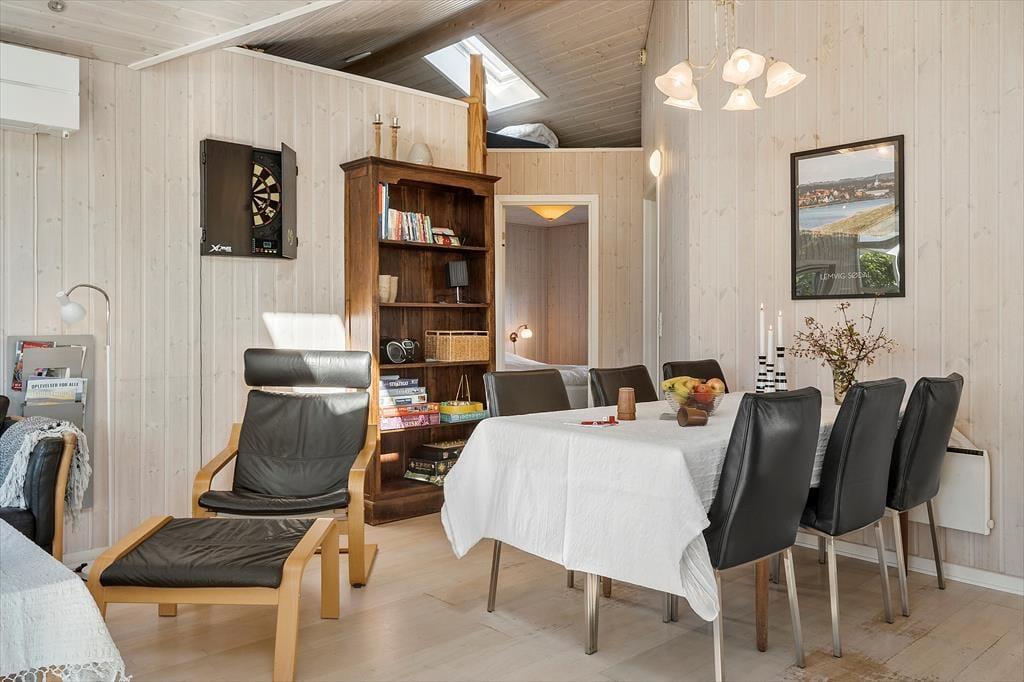 Når du holder ferie i Gjellerodde, har du sikkert lyst til at bruge en stor del af dagen ved Limfjorden eller ude i de smukke naturomgivelser, men det er nu også fristende at blive inden døre i husets komfortable og velindrettede omgivelser. Det store badeværelse med spabad og sauna er perfekt til tilbagelænet afslapning, og i stuen er brændeovnen med til at skabe en varm og indbydende stemning også udenfor højsæsonen. Mens aftensmaden passer sig selv i ovnen i det åbne køkken, kan du løse krydsogtværs i sofaen eller spille dart med dine kære, og når måltidet er ovre, og I er færdige med at se film eller spille kort, kan I sige godnat og gå til ro på de husets tre gode soveværelser.