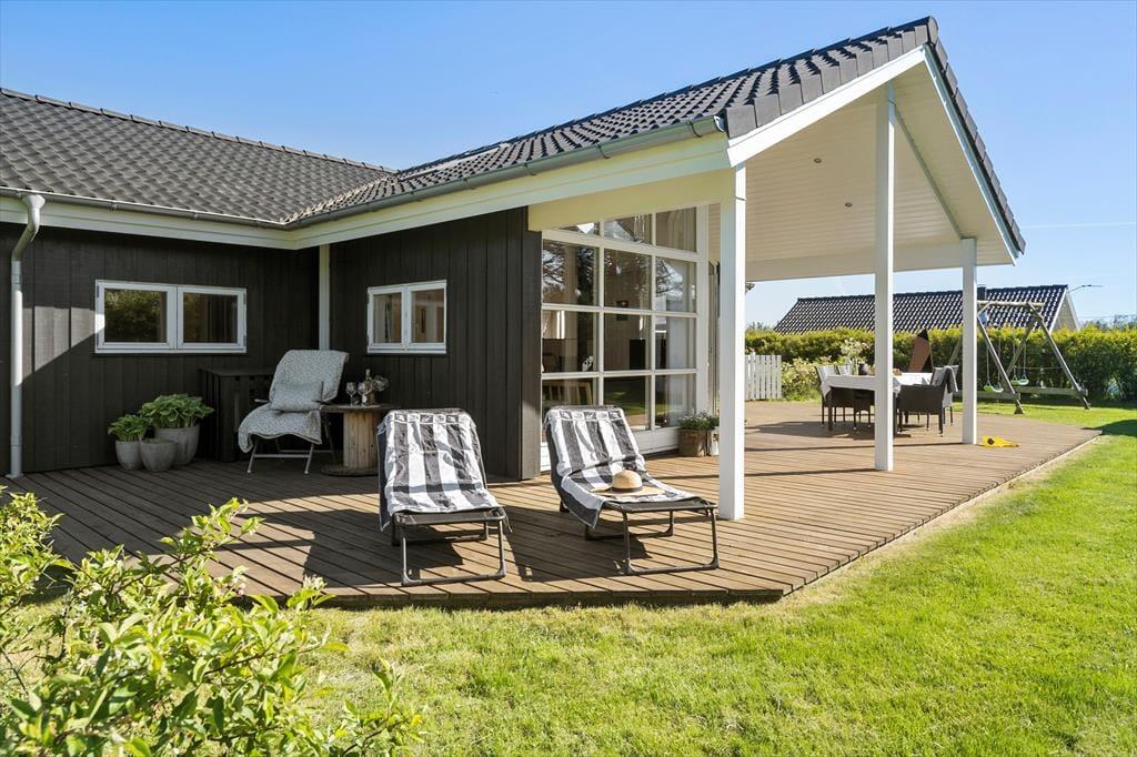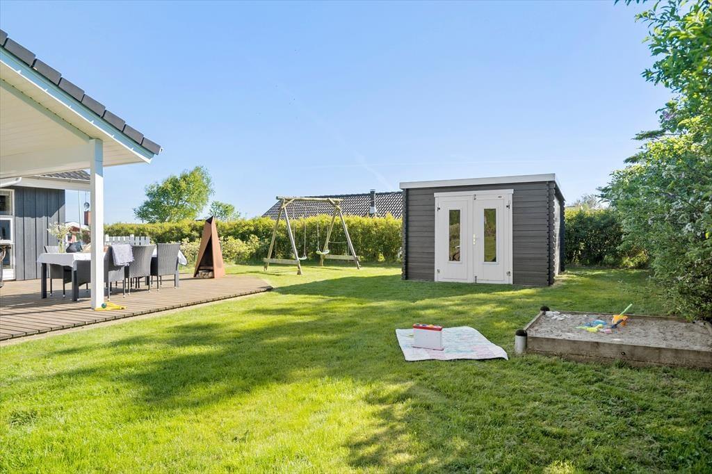 Sommerhuset ligger dejligt roligt i bunden af en lille sidevej til Porsevej, og på en lys og lun sommerdag er det store terrassemiljø det helt rette sted at nyde livet. En del af det sydøstvendte areal er overdækket, mens resten af terrassen er helt åben, og uanset om du vil sidde med morgenkaffen i dagens første solstråler eller nyde en rolig aften med friskgrillet mad, kan du finde et dejligt sted at sidde. På grunden er der legeredskaber til de yngste feriegæster, og den store græsplæne inviterer til leg og havespil for både børn og voksne