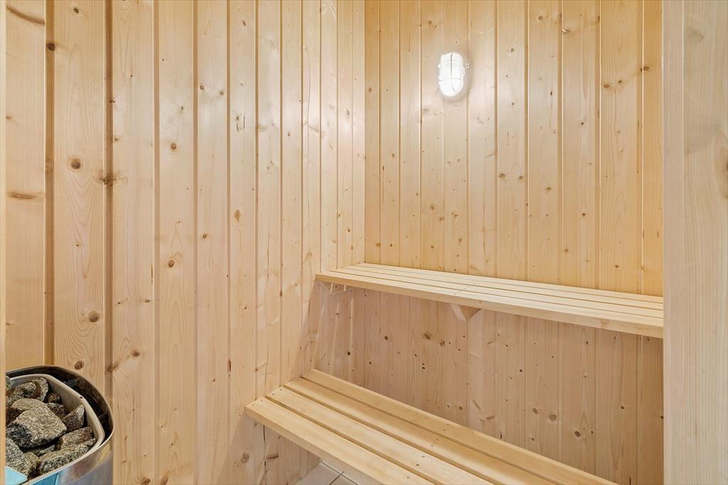 På den lukkede Porsevej i naturskønne Gjellerodde indbyder dette dejlige sommerhus til en mindeværdig ferie. Med sin lyse atmosfære og lækre faciliteter som spabad, sauna og brændeovn er det godt at være inden døre selv på en kølig dag – og når sommersolen skinner fra en blå himmel, kan driverlivet oplagt foregå på terrassen.