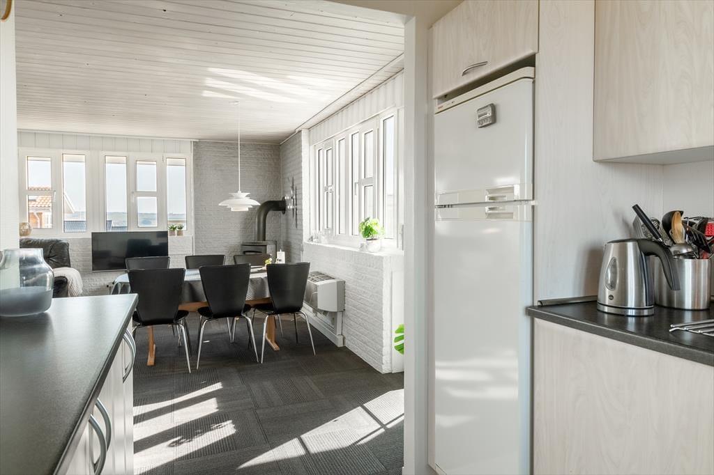Sommerhuset ligger i det naturskønne Gjellerodde, hvor du har den smukke Lem Vig som nærmeste nabo. Området er ideelt til vandre- og cykelture, hvor du kan følge de hyggelige stier langs fjorden og nyde den betagende udsigt over vandet. Vil du have en dukkert, kan du tage til den familievenlige strand ved Gjellerodde, hvor det rolige vand gør det perfekt til både badning og kajaksejlads. I Lemvig, blot en kort køretur væk, finder du en charmerende havneby med hyggelige caféer, specialbutikker og den stemningsfulde marina. Her kan du også besøge Lemvig Museum eller gå en tur på Planetstien, der giver et spændende perspektiv på solsystemets dimensioner. For de eventyrlystne er en tur til Bovbjerg Fyr en oplagt mulighed – her kan du nyde den storslåede udsigt fra toppen af fyret eller tage en gåtur i det dramatiske kystlandskab.
