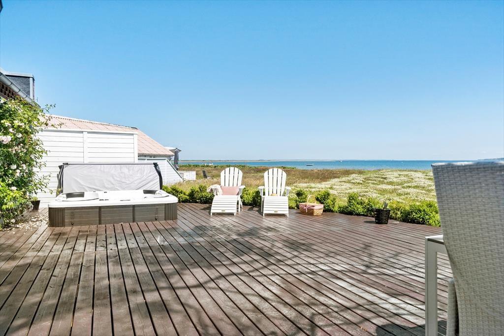 Det er svært at forestille sig en bedre ramme om det danske sommerhusliv end den, du finder her. Den private grund går helt ned til vandet, og med kun ti meter til stranden bliver det næppe nemmere at tage en morgendukkert, bygge sandslotte med børnene eller bare lade sig opsluge af udsigten med fødderne i sandet. På terrassen kan du slappe af i udespaen, mens du lytter til bølgernes rolige klukken og mærker vinden i håret – og om aftenen forvandler stedet sig til et stemningsfuldt fristed under stjernerne. Omkring huset er der flere skønne hjørner til afslapning, uanset om du er til sol eller skygge, selskab eller ro. Her kan du virkelig mærke, hvordan ferien langsomt sætter tempoet ned – og bare lader dig være til stede i nuet.