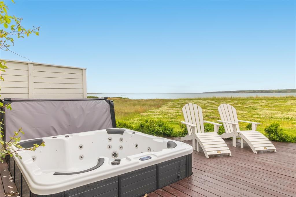 På Gjelleroddevej 56 i hjertet af det naturskønne Gjellerodde venter et ganske særligt feriehus – en sand perle med direkte adgang til stranden og en udsigt, der hver eneste dag vil tage vejret fra dig. Her får du ikke bare en fantastisk beliggenhed få skridt fra Limfjordens rolige vande, men også et charmerende og stilfuldt indrettet sommerhus i to plan. Og når solen går ned over fjorden, kan du nyde udsigten fra terrassens udespa – med et glas vin i hånden og fødderne i det varme vand.