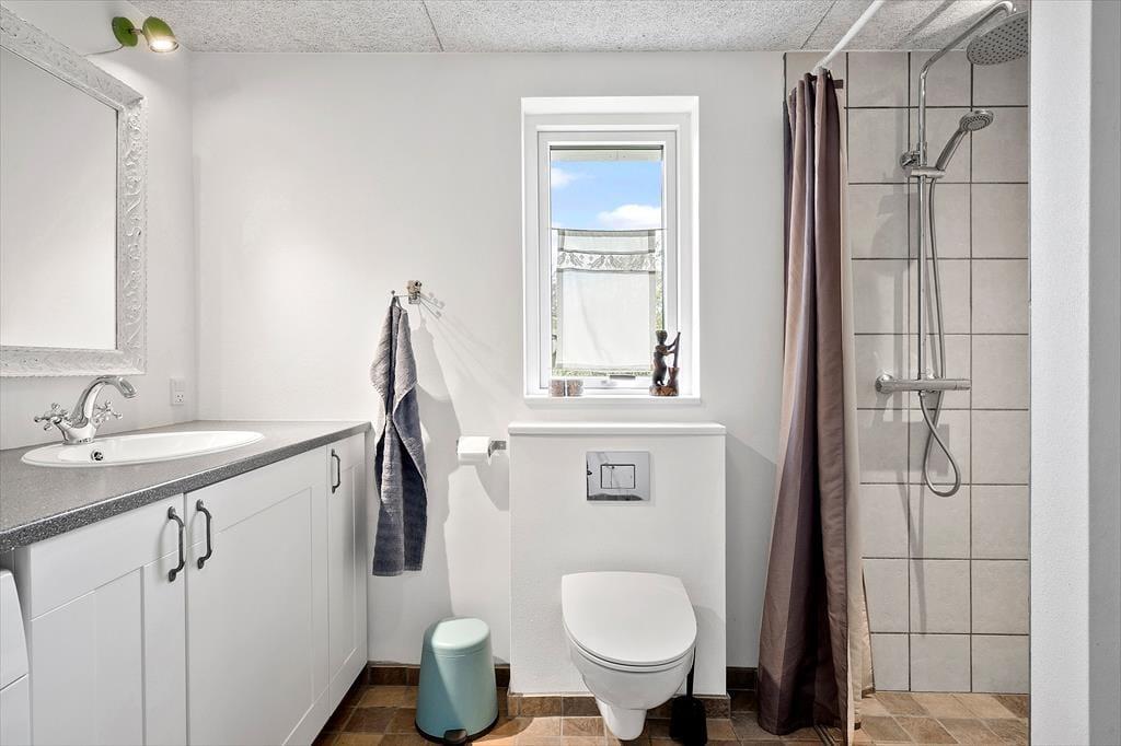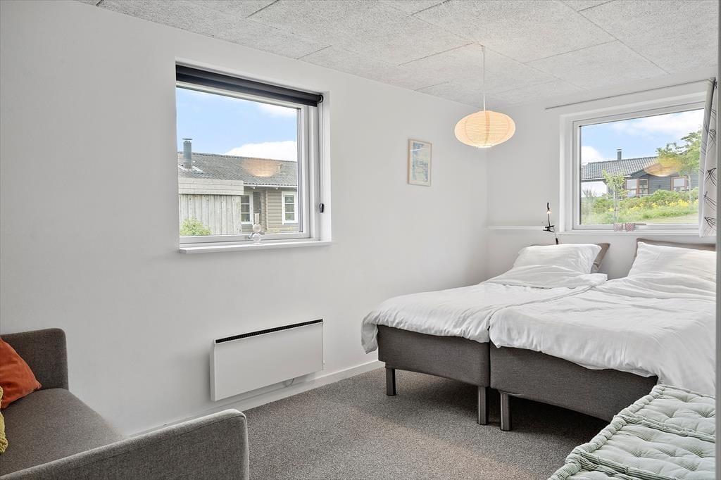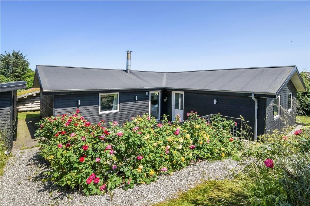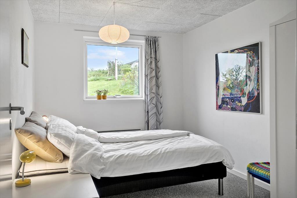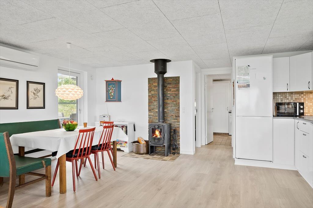 Når du træder ind i sommerhuset på Skovstjernevej 63, bliver du straks mødt af en indbydende og hyggelig atmosfære, der lægger op til afslapning og samvær. Huset har plads til hele familien – og mere til – og med sin funktionelle indretning er det let at finde sig til rette, uanset om du er på ferie med børn, bedsteforældre eller gode venner. Det naturlige samlingspunkt er stuen, hvor brændeovnens knitren hurtigt spreder varme og hygge. Herfra er der åben forbindelse til køkkenet, så der kan snakkes og grines på tværs af rummene, mens maden forberedes. Store vinduer inviterer lyset indenfor og giver et glimt af fjorden i horisonten, og i flere af værelserne er der også tænkt på rolige rammer for en god nats søvn efter en dag fyldt med oplevelser i det vestjyske.