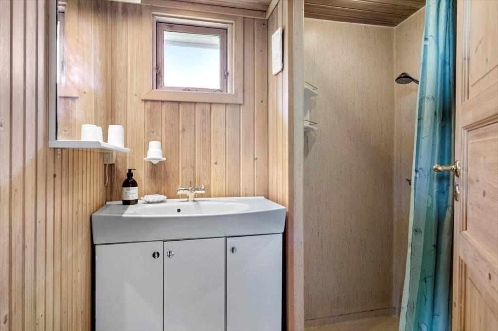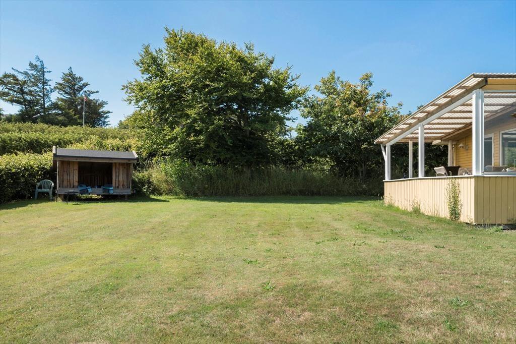 Haven omkring sommerhuset er en skøn oase med plads til både afslapning og aktivitet. Her kan du finde dig en god plads i solen på en af de dejlige terrasser – måske med en bog og en kop kaffe – eller søge skygge under et træ, mens du nyder fuglesangen i baggrunden. I haven venter også et shelter, som især børnene vil elske at sove i og gode snakke under stjernerne. For de firbenede gæster er haven et trygt sted at snuse rundt, og du kan slappe af, mens både børn og hund boltrer sig på plænen. En lille sti fører dig hurtigt og nemt ned til stranden, så det er oplagt at tage en formiddagstur til vandet eller nyde en dukkert, når solen står højt.