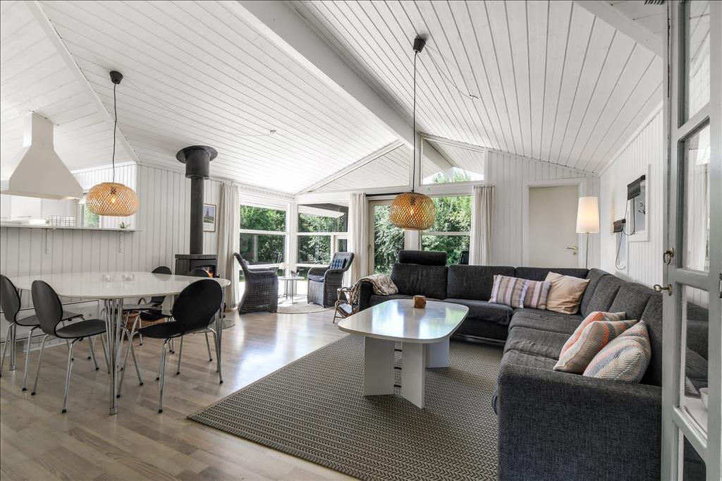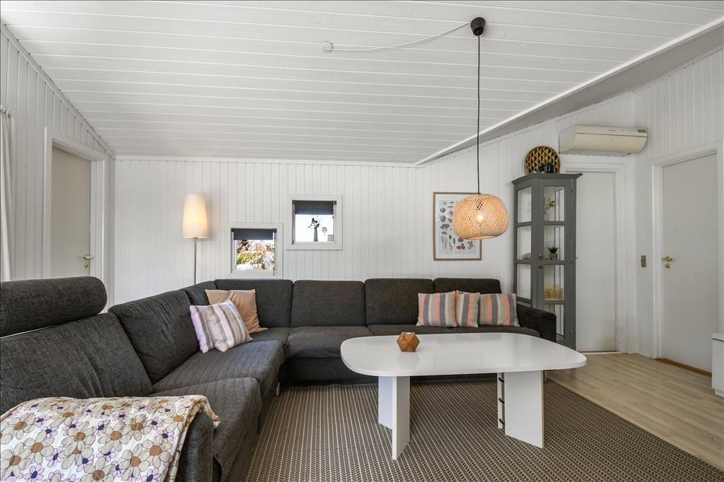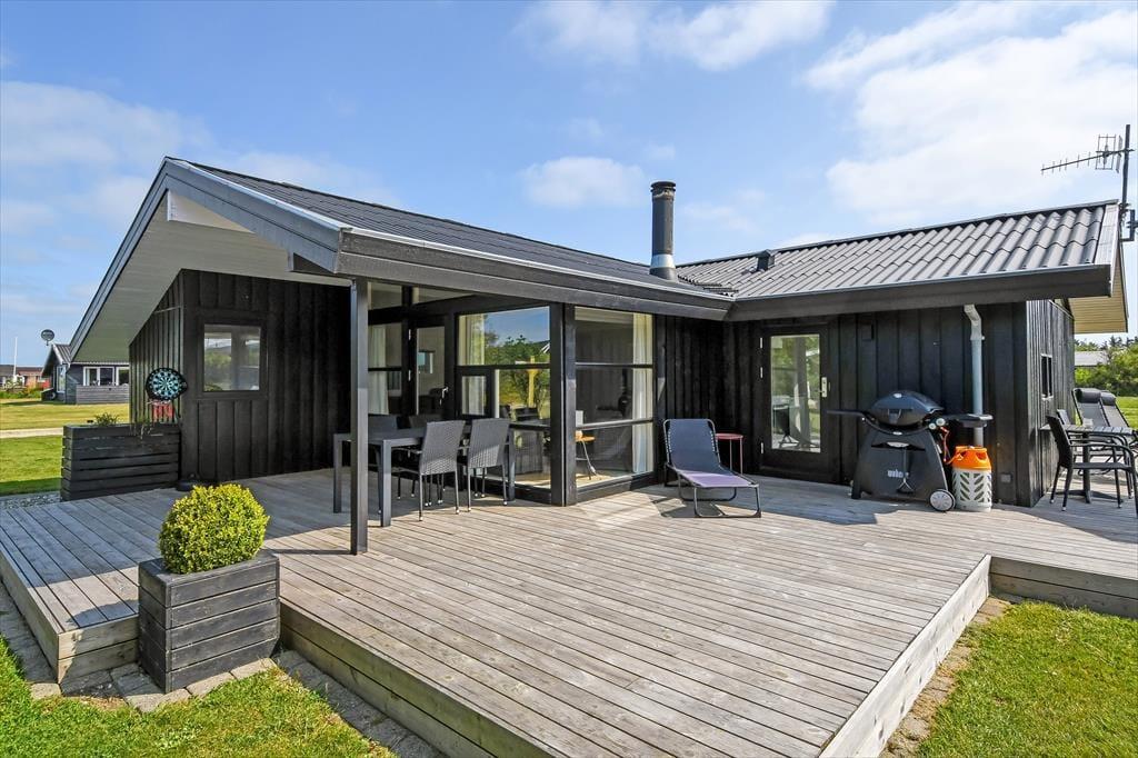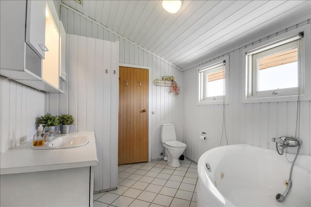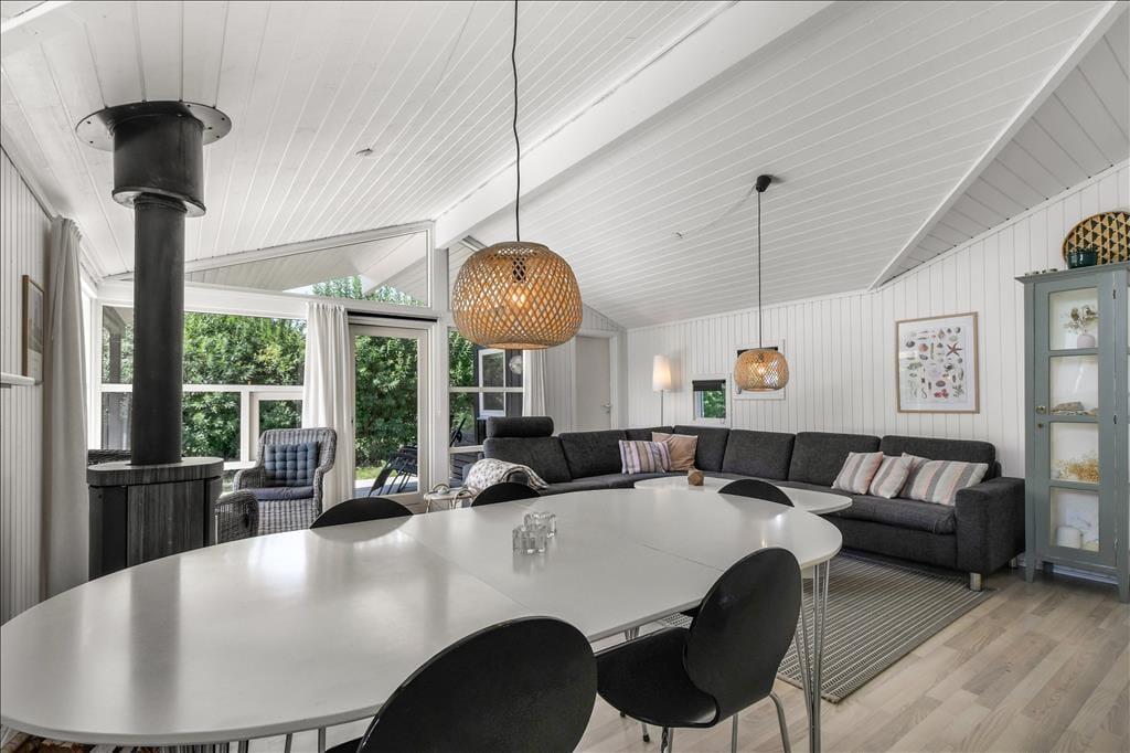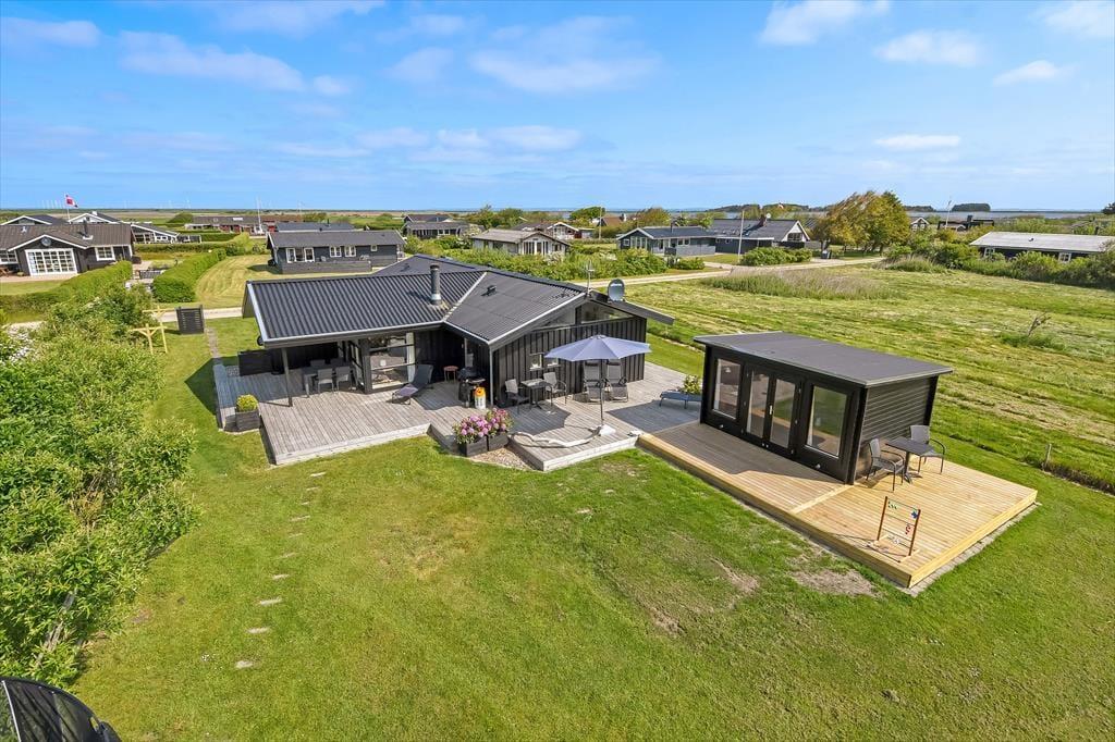 Det er ikke svært at komme i feriestemning, når du træder ind i dette velindrettede sommerhus. Her er en lys og afslappet atmosfære, hvor det er nemt at finde ro. Opholdsrummet er samlingspunktet med åbent køkken og stue, så du kan lave mad og samtidig være en del af snakken, der foregår omkring spisebordet eller i sofahjørnet. Efter en lang dag med oplevelser i det vestjyske landskab kan du forkæle dig selv i husets indendørs spa, mens børnene leger eller slapper af. Og trænger du til ekstra velvære, kan du træde ind i saunaen og lade varmen omslutte dig – perfekt til de køligere dage. Huset har plads til op til otte personer, så her er god mulighed for, at både familie og venner kan nyde ferien sammen. Og har du hund, er den naturligvis også velkommen – den vil helt sikkert føle sig hjemme i det rummelige hus og den store have.