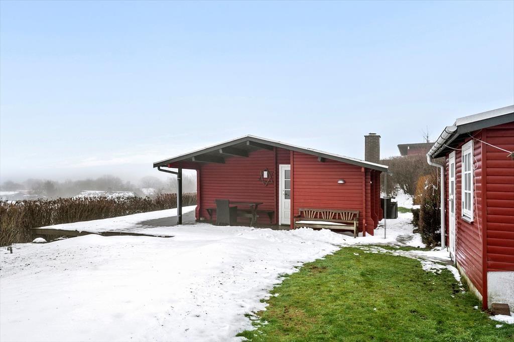 Det er udenfor, sommerhusets beliggenhed virkelig kommer til sin ret. Fra den store terrasse har du en enestående panoramaudsigt over Limfjorden – et syn, der ændrer sig i takt med dagens lys og vejrets skiften. Her kan du nyde morgenkaffen, mens disen letter over fjorden, eller slutte dagen af med et glas vin, mens solen går ned bag bakkerne i det fjerne. Rundt om huset finder du flere små terrasser, hvor du altid kan finde en solplet eller lækrog. De private omgivelser gør det nemt at slappe helt af, og både børn og hunde kan frit boltre sig på grunden. Og når mørket falder på, kan I tænde op i grillen og nyde den friske fjordluft til lyden af fugle og vind i træerne.