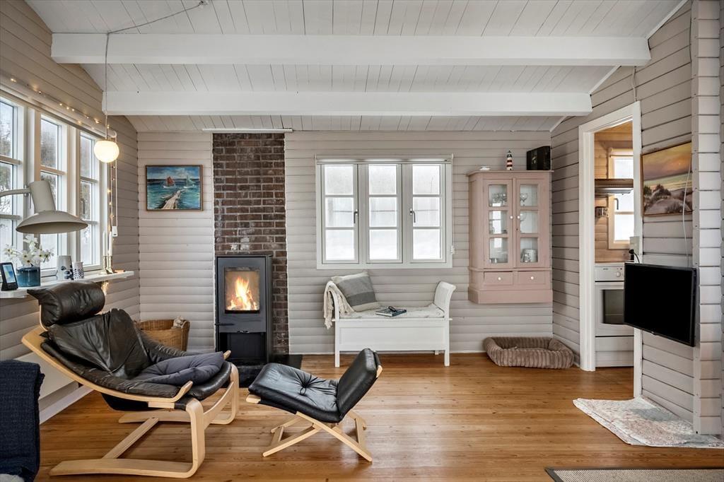Det charmerende røde bjælkesommerhus byder på en hyggelig og hjemlig atmosfære fra det øjeblik, du træder indenfor. Trævæggene og de klassiske detaljer skaber en varm og autentisk stemning, som inviterer til afslapning og nærvær. I stuen kan du samles med familien omkring brændeovnen, der spreder både varme og hyggelys på kølige dage – perfekt til en god bog, en kop kaffe eller et spil kort, mens vinden rusker udenfor. Køkken og opholdsrum ligger i åben forbindelse, så ferielivet flyder let, uanset om I laver mad, spiller brætspil eller planlægger næste dags udflugter. Det hyggelige anneks med to enkeltsenge giver ekstra fleksibilitet, og børn eller teenagere vil helt sikkert elske at have deres eget lille fristed derude.
