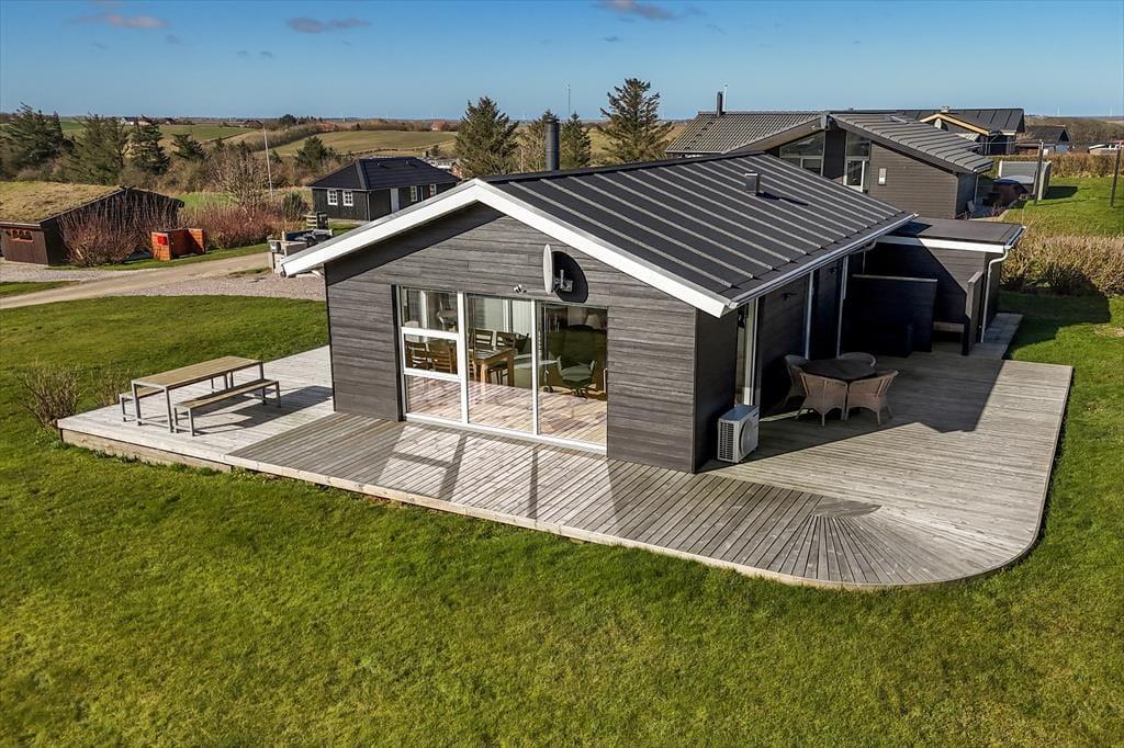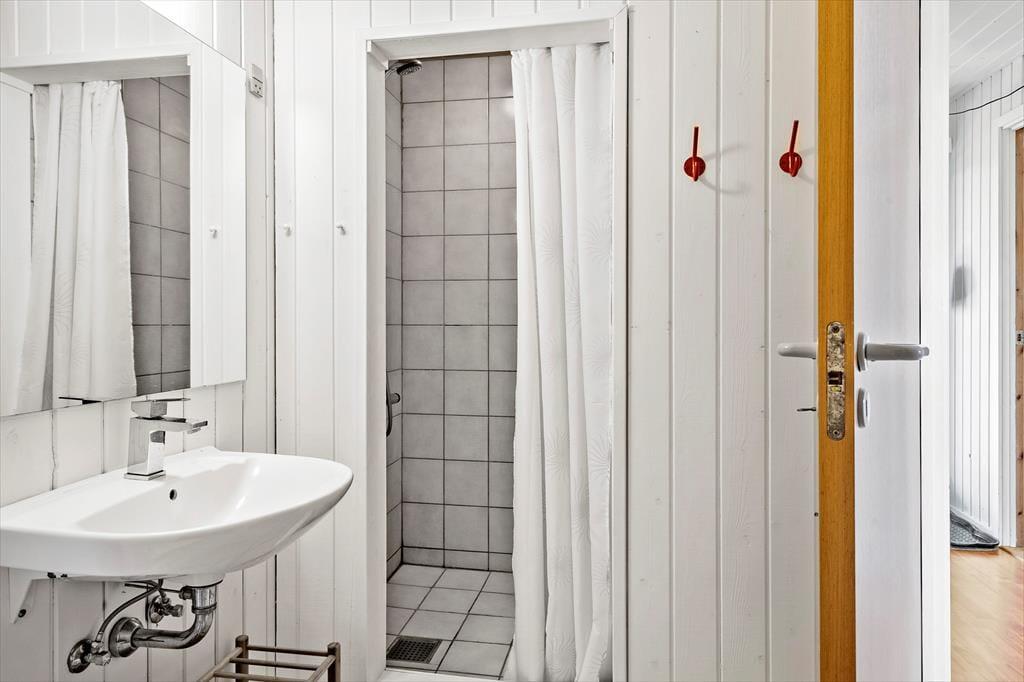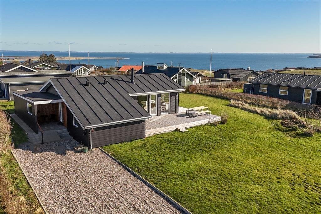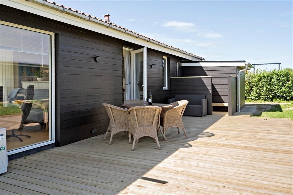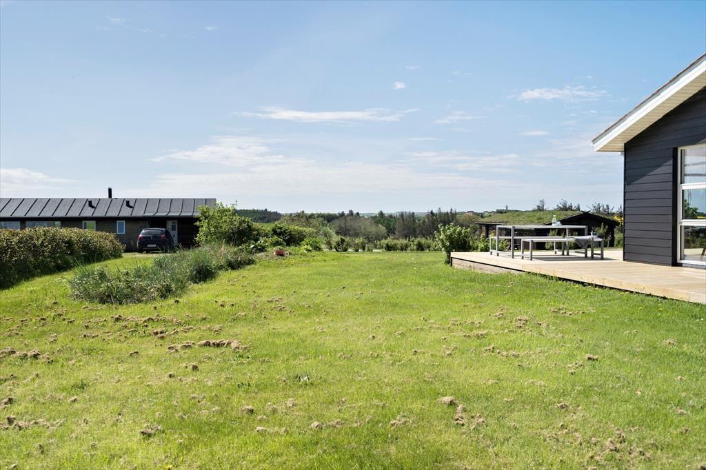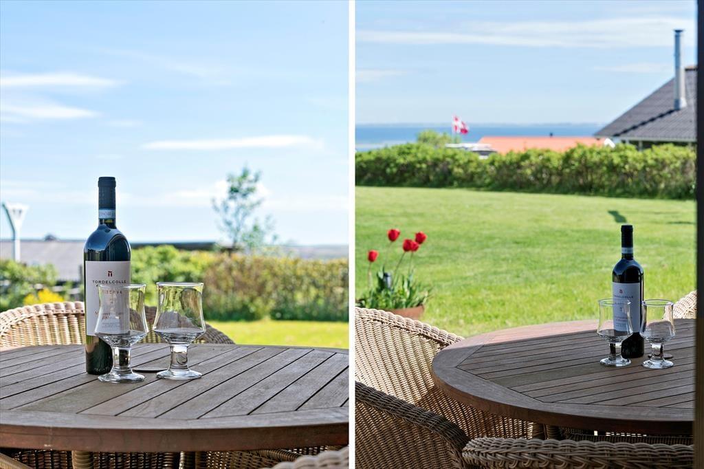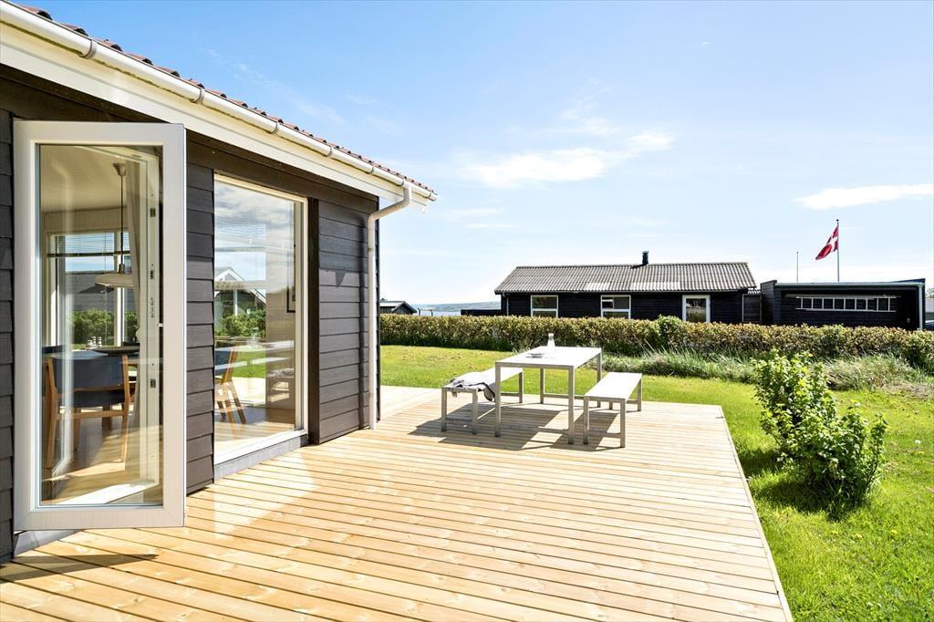 Terrassen snor sig næsten hele vejen rundt om huset og skaber rig mulighed for at finde en solrig, vindstille krog i løbet af dagen. Uanset om du er til lange morgenmåltider under åben himmel, en lur i skyggen eller aftensmad ved grillen med fjordens stille glans i baggrunden, så finder du det helt rette sted her. Den udendørs bruser giver en ekstra dimension til sommerlivet – især efter en tur til stranden, eller når du bare vil have en frisk start på dagen. Haven omkring huset er enkel og grøn, og med udsigten over Limfjorden i baggrunden bliver udelivet en helt naturlig del af ferien.