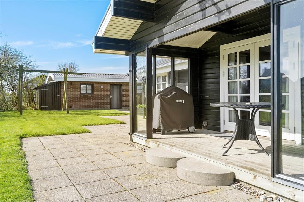 Sommerhuset har hele 70 m2 terrasse, så der er masser af plads til at finde sit yndlingsspot i solen – eller i skyggen, alt efter temperament. Udsigten over Limfjorden er betagende hele dagen, men særligt når morgensolen danser over vandoverfladen, bliver terrassen et magisk sted at starte dagen. Her er rig mulighed for at tilbringe lange, lyse sommeraftener med grillmad og kølige drikke, mens fjordens blide bølger skaber en fredfyldt baggrundsmusik. Omgivelserne er rolige og naturskønne, og både børn og voksne kan nyde udelivet i trygge og afslappede rammer – med naturen som det faste centrum.