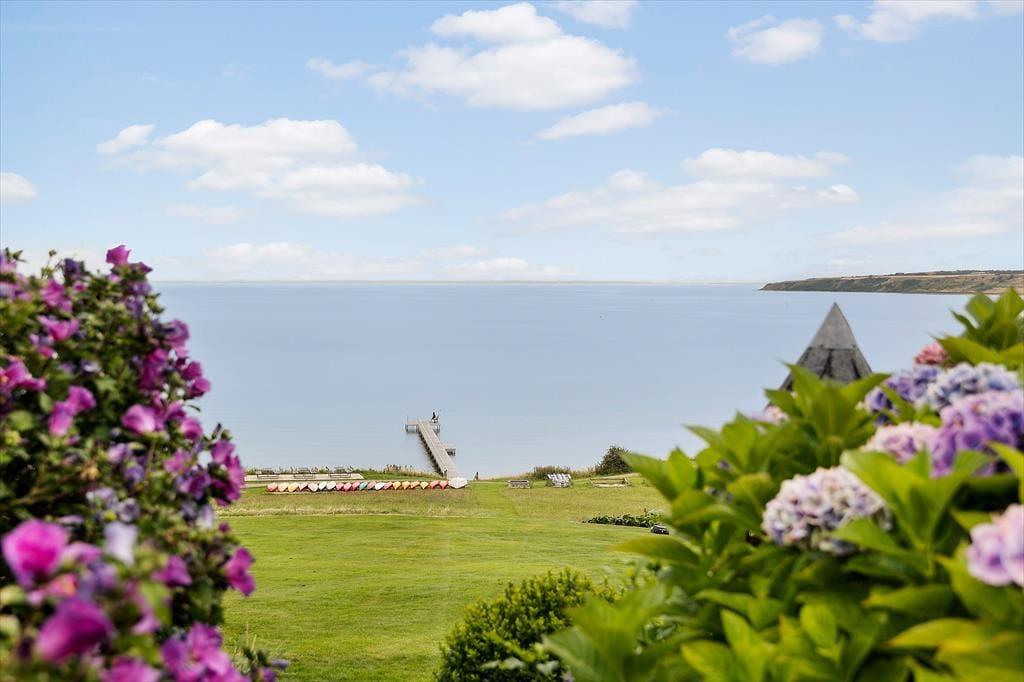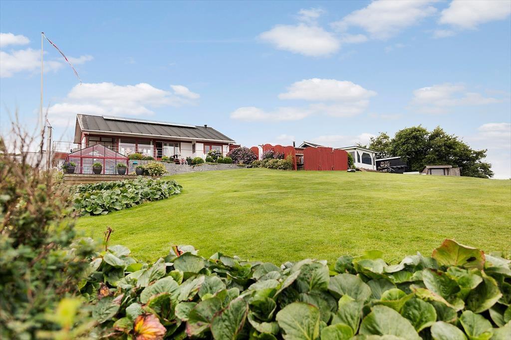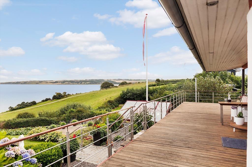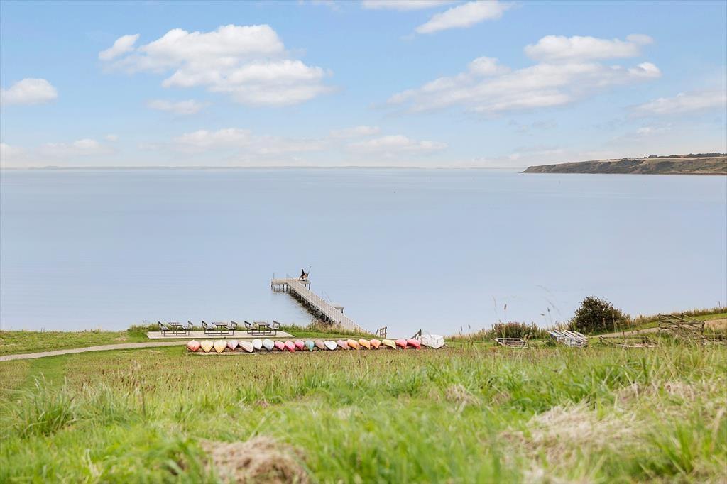 Udelivet folder sig for alvor ud på den store terrasse, der strækker sig over hele 130 m2 og tilbyder små, hyggelige kroge til enhver smag og stemning. Du kan tage kaffen med ud og finde din yndlingsplads i solen – eller trække dig ind i den charmerende pavillon, når duggen falder sidst på dagen. Her bliver aftenerne lange og stemningsfulde, mens fjorden changerer i blågrønne toner og landskabet spejler sig i det stille vand. Med badebroen lige ved hånden, er det oplagt at starte dagen med en frisk dukkert – og måske slutte den med et glas vin og kig til stjernerne. Her er rammerne sat for rendyrket feriehygge i ét med naturen.