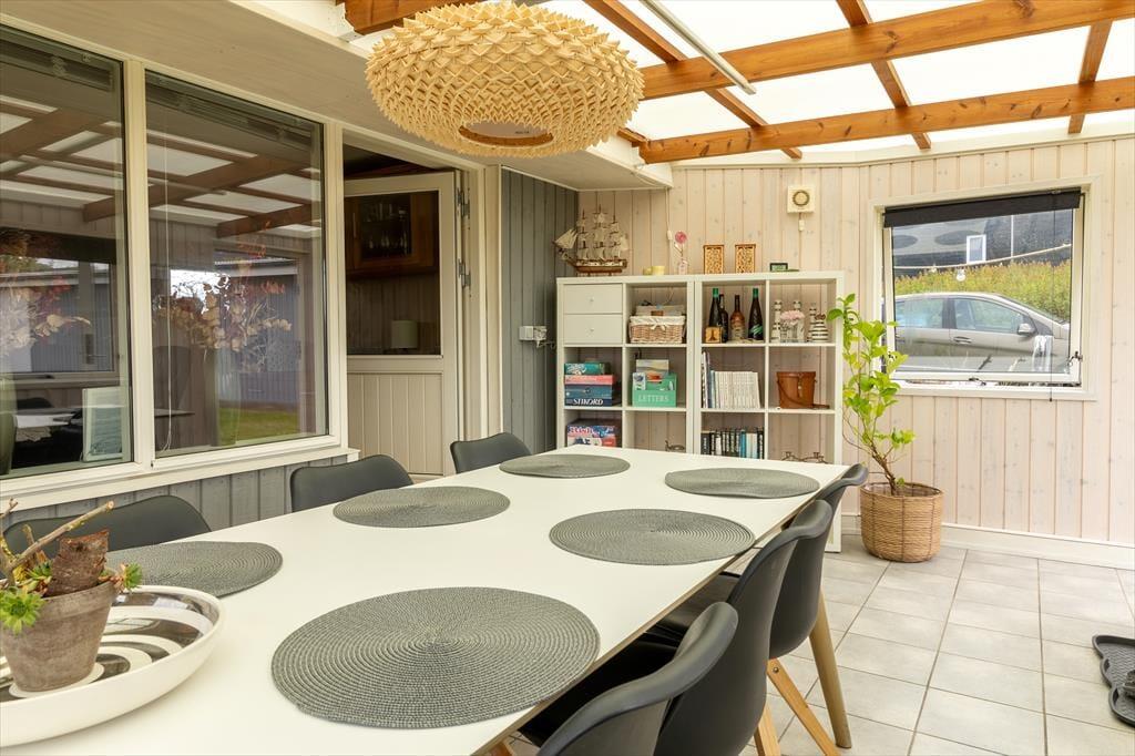 Der er noget helt særligt ved stemningen i det charmerende sommerhus på Violvej 10 – her føler man sig hjemme fra det øjeblik, man træder ind. De lyse rum og den fine indretning skaber en varm og venlig atmosfære, og det er nemt at finde sig til rette, uanset om du er her med familien, gode venner eller din firbenede ven. Opholdsrummet med stue og køkken i åben forbindelse indbyder til fælles måltider og lange snakke, mens duften af nylavet morgenmad breder sig fra køkkenet. I det hyggelige sofahjørne kan I samles til en god film eller en klassisk brætspilsaften – og den fine udestue fungerer perfekt som ekstra rum til både afslapning og gode ferieminder. Her er alle forudsætninger for at trække stikket og bare nyde roen.