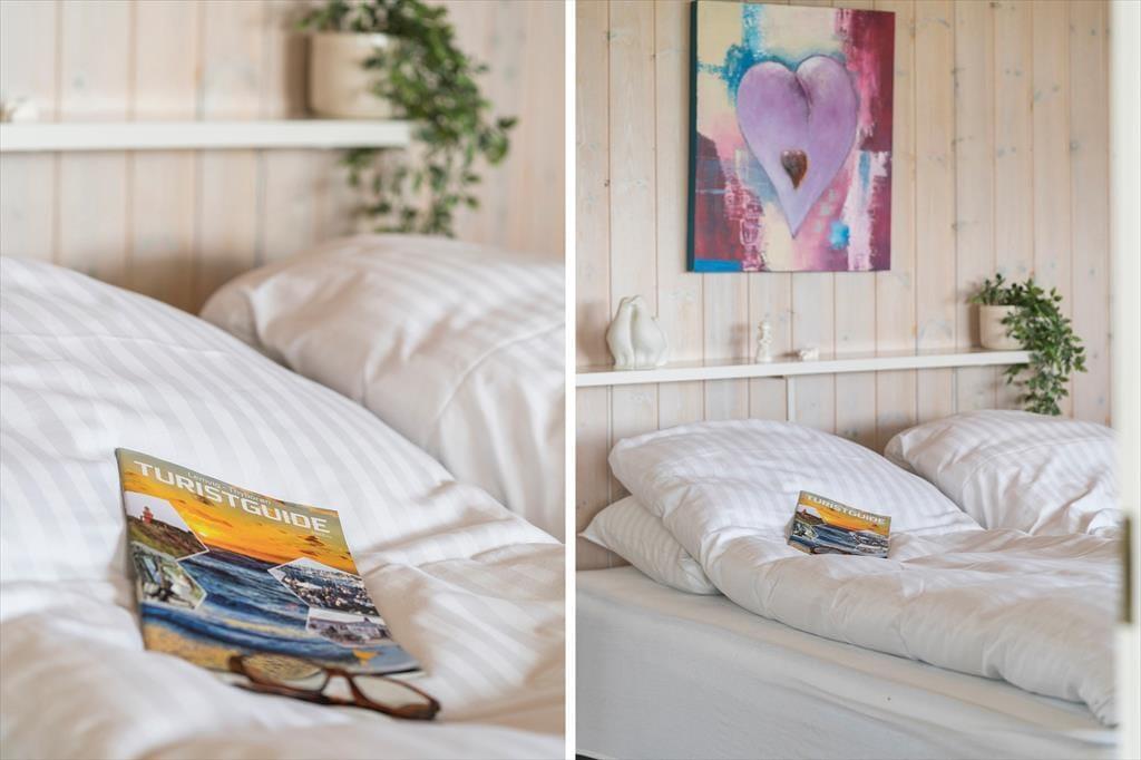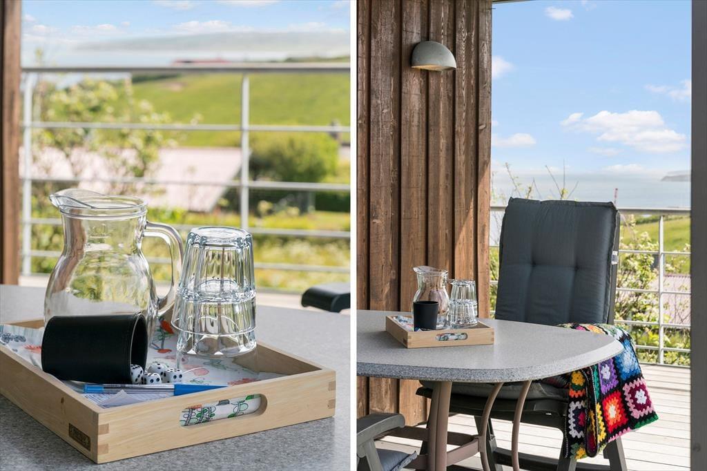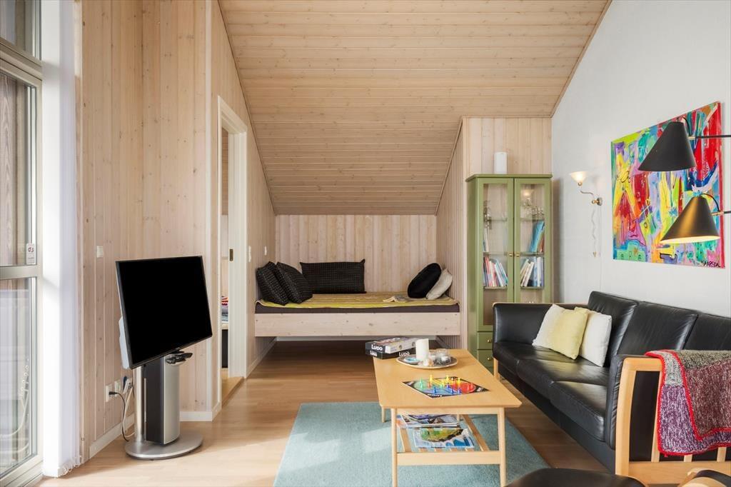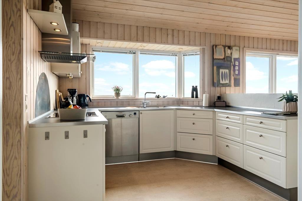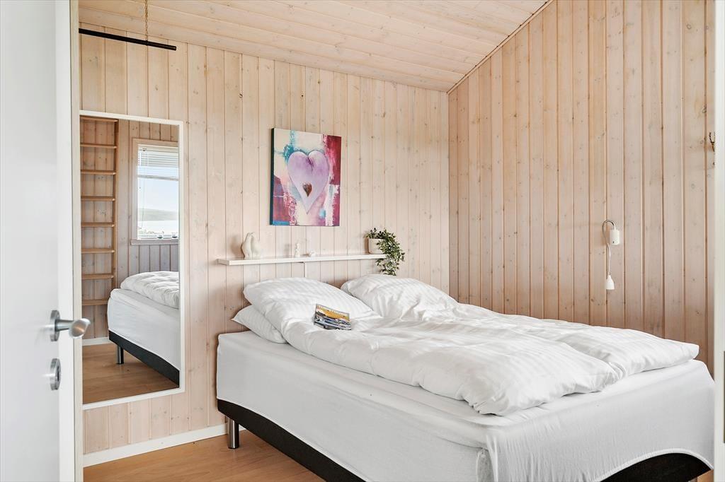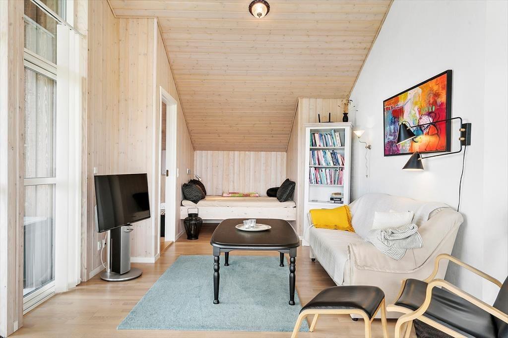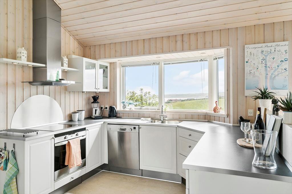 Når du træder indenfor, bliver du mødt af en dejlig, lys atmosfære og en indretning, der får dig til at føle dig hjemme med det samme. Den åbne opholdsafdeling med stue og køkken samler hele huset og indbyder til hyggestunder foran brændeovnen, der spreder varme og ro, når aftenerne bliver kølige. Et af husets mest charmerende elementer er den hyggelige alkove og den lille hems – perfekte gemmesteder for børn eller til en stille stund med en god bog. Store vinduespartier inviterer lyset og naturen indenfor, og uanset om du er i køkkenet eller har sat dig til rette i sofaen, har du fjorden i horisonten. Indretningen er gennemtænkt og komfortabel, så her er alt, hvad du skal bruge for at nyde ferien i dit helt eget tempo.