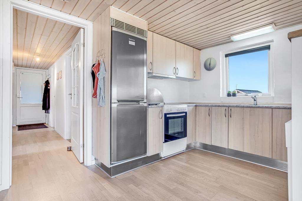 Det første, der møder dig, når du træder ind i sommerhuset på Myntevej 30, er lyset og rummeligheden. Huset breder sig over to plan og har en spændende og funktionel indretning, hvor udsigten hele tiden spiller med – store vinduespartier og opholdsrum i forskellige niveauer sørger for, at du næsten uanset hvor du befinder dig, kan nyde fjordens blå flade i det fjerne. I det åbne køkken- og stueområde er der god plads til både hyggelige måltider og afslapning, og her føles det naturligt at samle sig omkring samtaler, madlavning eller spil på en rolig feriedag. Huset har også en hems, som børnene hurtigt vil tage til sig som et fristed til leg og hygge. Her er en rar og uformel stemning, som gør det nemt at falde i feriemode fra første dag.