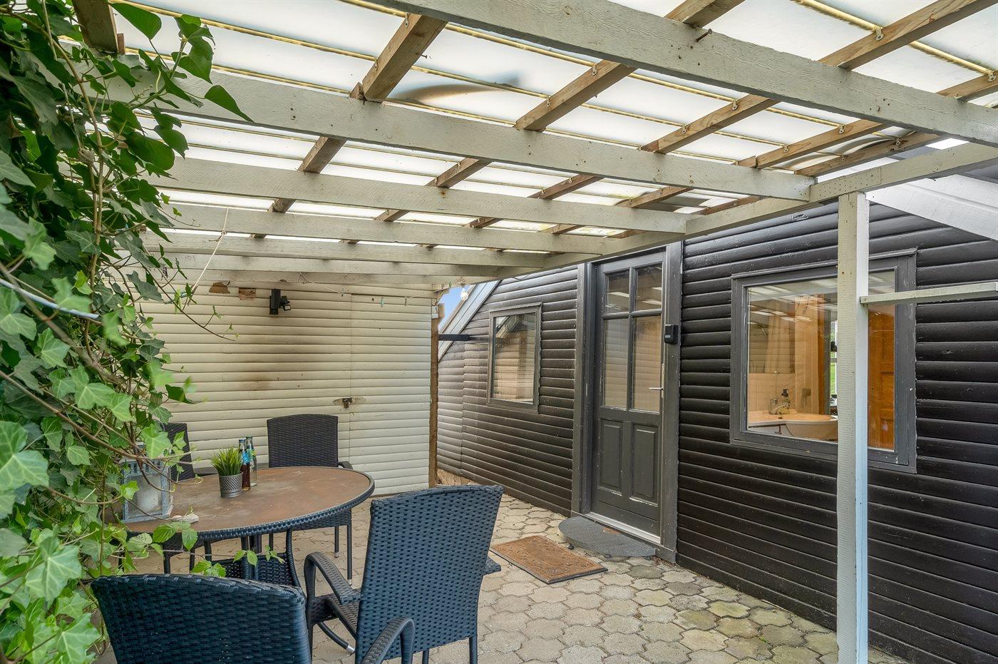 Ferieboligen er beliggende på en 830 m² stor naturgrund. Der er 250 m til fjorden. Nærmeste forretning er beliggende i en afstand af 250 m. Til ferieboligen hører 50 m² terrasseareal. Desuden er der 8 m² overdækket terrasse. Der er redskabsrum. Parkering ved ferieboligen.