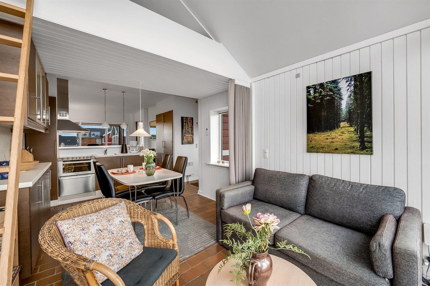 Ferielejligheden egner sig til 6 personer. 2 af sovepladserne er kun egnet til større børn (4-11 år). Ferieboligen er på 50 m², er i 2 plan, og er bygget i 1977. I 2020 gennemgik ferieboligen en delvis renovering. Det er ikke tilladt at medbringe husdyr. Ferieboligen er udstyret med 1 energibesparende luft til luft varmepumpe. Frysekapacitet på 40 liter. Der er desuden brændeovn.