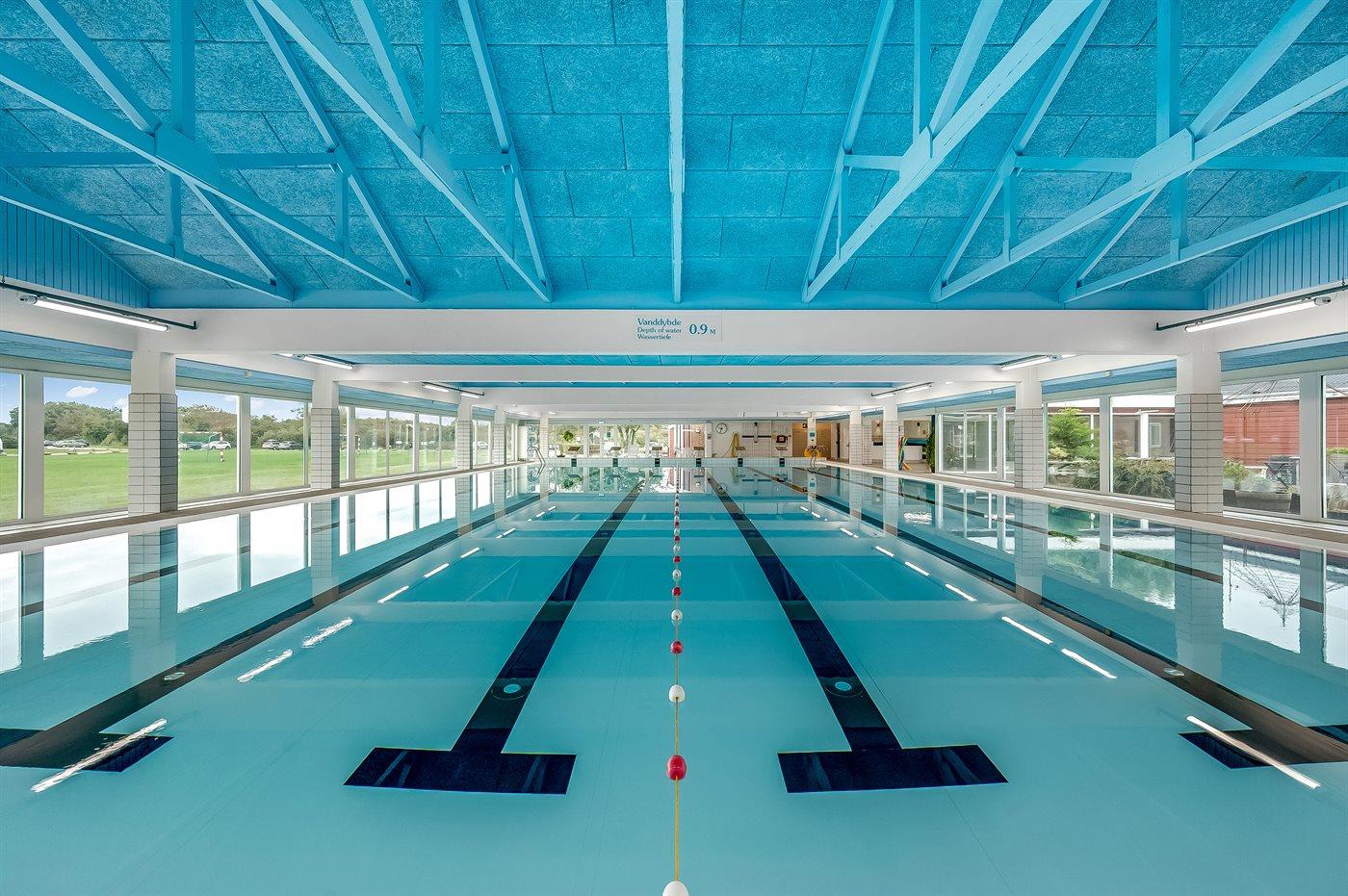 Der er fælles indendørs swimmingpool til rådighed, hvor der er mulighed for leg og hyggeligt samvær. Swimmingpoolen måler op til 8 m i bredden, 20 m i længden og den er op til 1,4 m dyb. Vandet er mellem 24 og 28° C varmt.
