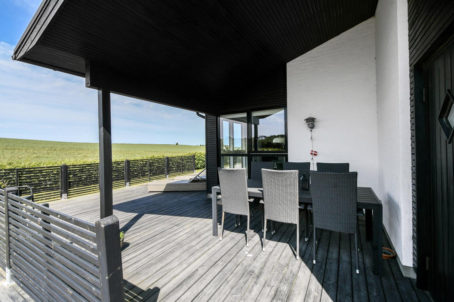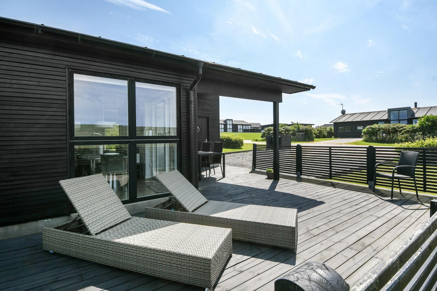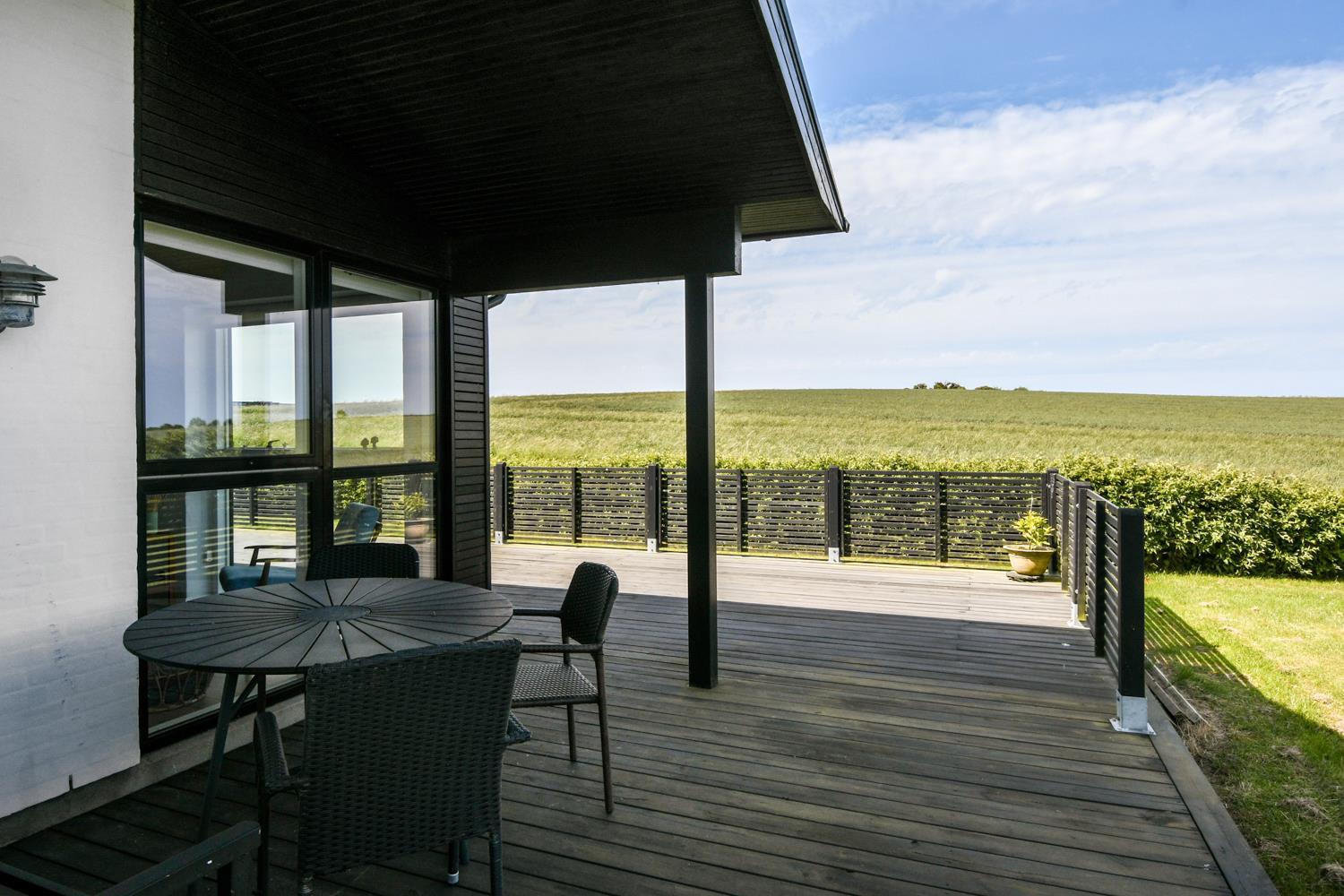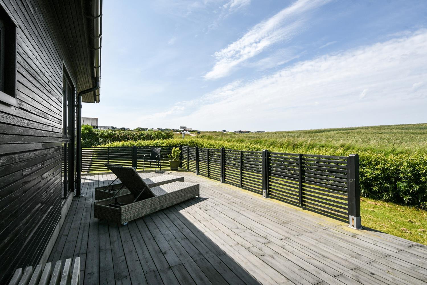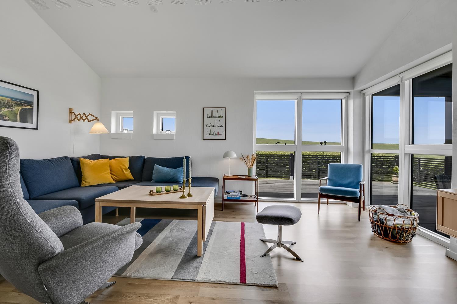 Huset er beliggende på en 840 m2 naturgrund med græsplæne. Fra grunden er der en flot udsigt over Limfjorden. Der er både overdækket og åben terrasse med havemøbler og grill. Der er blot 350 m ned til Limfjorden, hvor der er en dejlig børnevenlig strand med badebro. Tæt på badestranden ligger den nye legeplads som er lavet af træ som gratis kan benyttes. Handelsbyen Lemvig ligger en kort køretur fra huset og her er der flere gode restauranter, legeplads på havnepromenaden og flere gode butikker. Et dejligt hus i et skønt område med mange gode muligheder for at vandre, løbe og cykle.