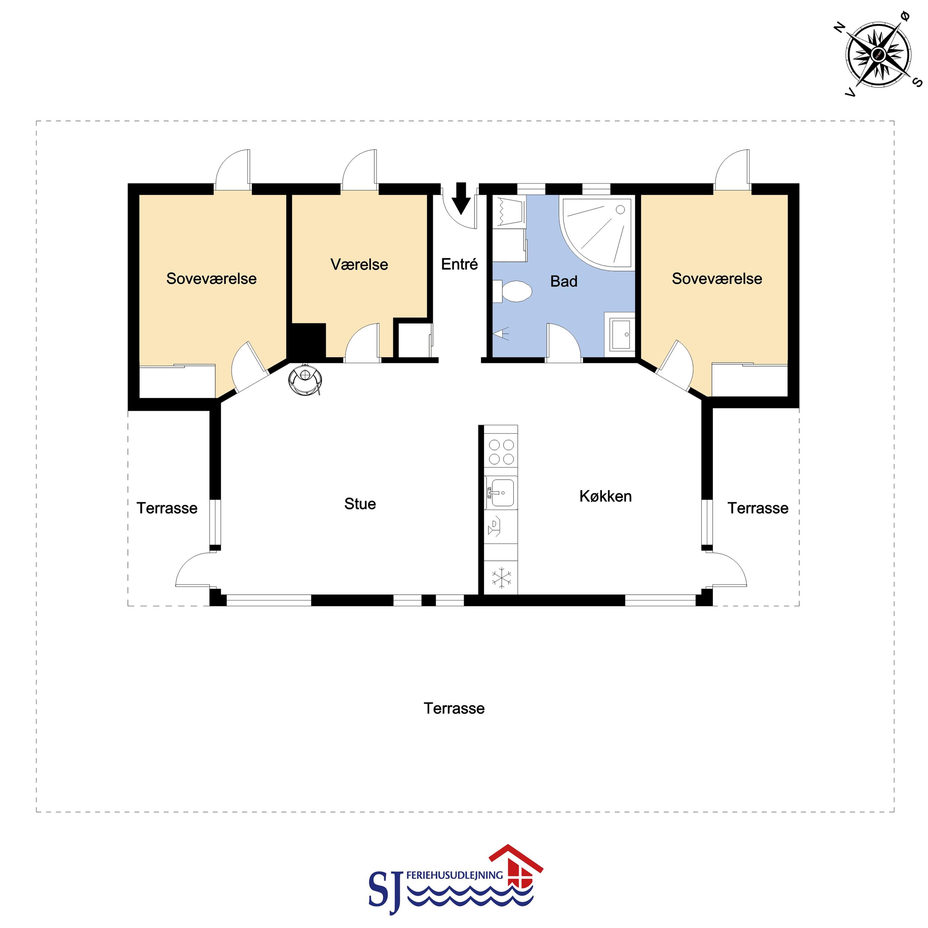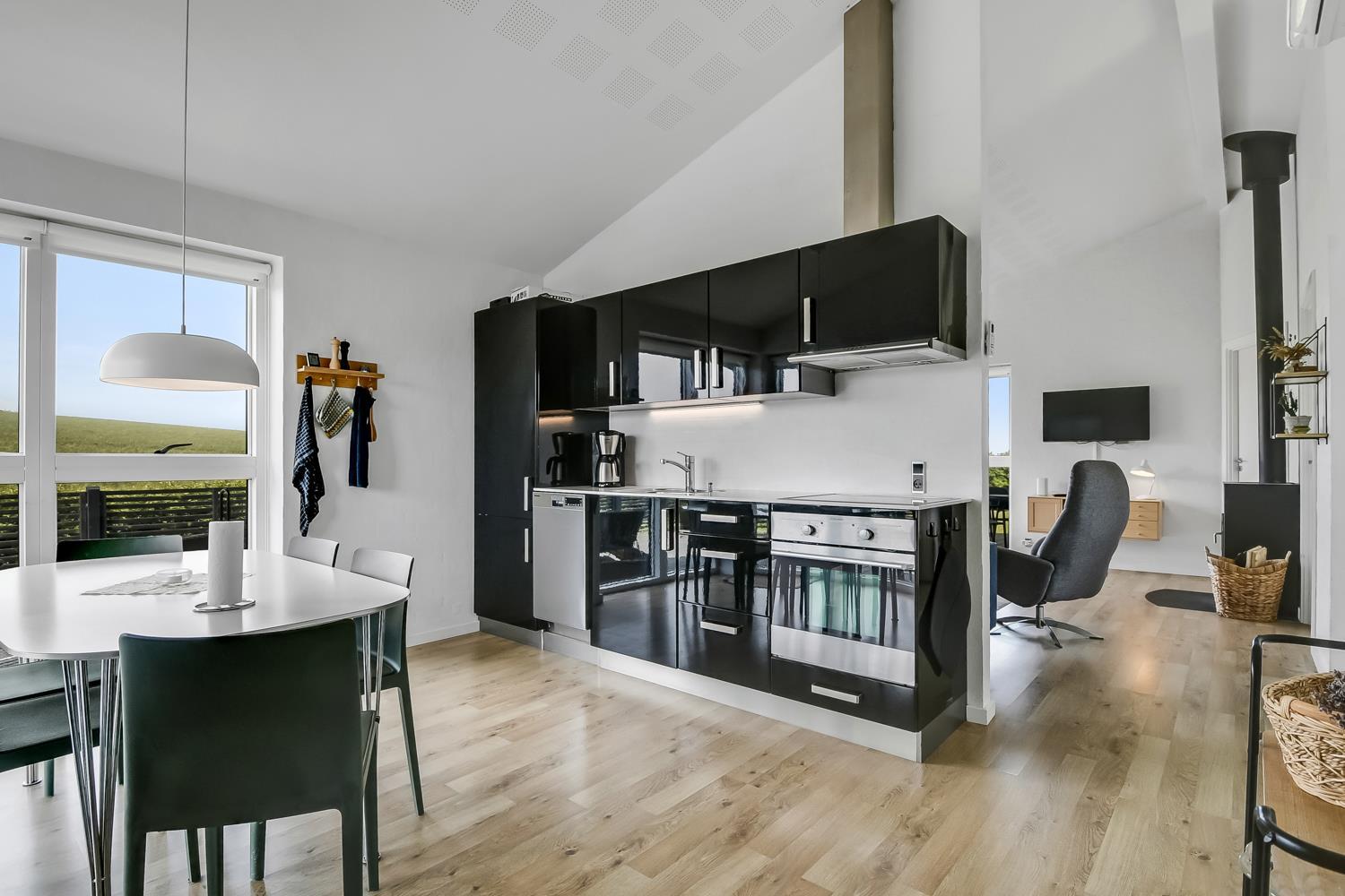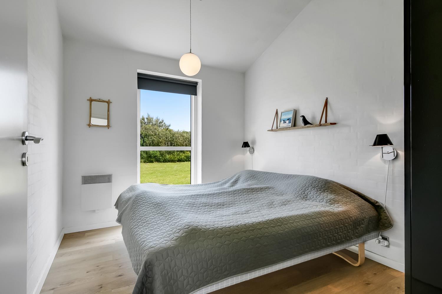 Allerede når I kører op til huset kan I se at det er et meget velholdt feriehus. Der er en kombineret stue og køkken, hvor køkkenet er afskærmet med en væg, her er spisebordet også placeret. Dejlig lys opholdsstue med gode lædermøbler, her er der TV med danske og tyske programmer samt en DVD afspiller, trægulv, der er desuden en dejlig brændeovn som sammen med varmepumpen sørger for en behagelig varme på de kolde dage og begge er medvirkende til at forbrugsafregningen blir lavere. Køkkenet er godt udstyret og har el-keramisk kogeplade, opvaskemaskine, emhætte, mikroovn, indbygningsovn samt en køle-/fryseskab her er der også trægulv. Husets badeværelse er med toilet, håndvask, bruser, spabad samt vaskemaskine og tørretumbler. 3 gode soverum: 1DS + 1DS + 1 doppelt sovesofa. Til de mindste gæster er der en barneseng. Et meget moderne og indbydende hus. Ikke rygerhus. 1 husdyr tilladt.