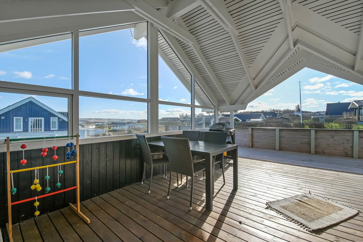 Husets store overdækket træterrasse er noget helt særligt. Herudover findes der også altid en plads i solen på huset terrasse som ikke er overdækket. Fra begge terrasser er der flot kig til Limfjorden. Havemøbler, solvogn og grill kan flyttes rundt på terrasserne efter behag. Højt, ugeneret beliggende på en stikvej på en velholdt grund på ca. 844 m2 kun 500 m. fra Limfjorden. Fra huset findes der stisystemer, som på få minutter fører direkte ned til fjord, badestrand og badebroer. Nær ved huset ligger også den nye flotte naturlegeplads i træ med rutsjebaner, gynger og meget andet. Her findes også iskiosk og restaurant. Der er i øvrigt kun ca. fire km til Lemvig by, som er en livlig handelsby med mange butikker, fiskerestaurant, biograf, skaterbane, museum mm.