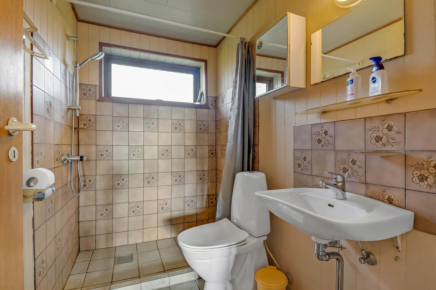 Der er tre soveværelser: to med dobbeltsenge og ét med enkeltseng. Badeværelset er indrettet med toilet, håndvask og bruser. Derudover er huset udstyret med både vaskemaskine og tørretumbler.