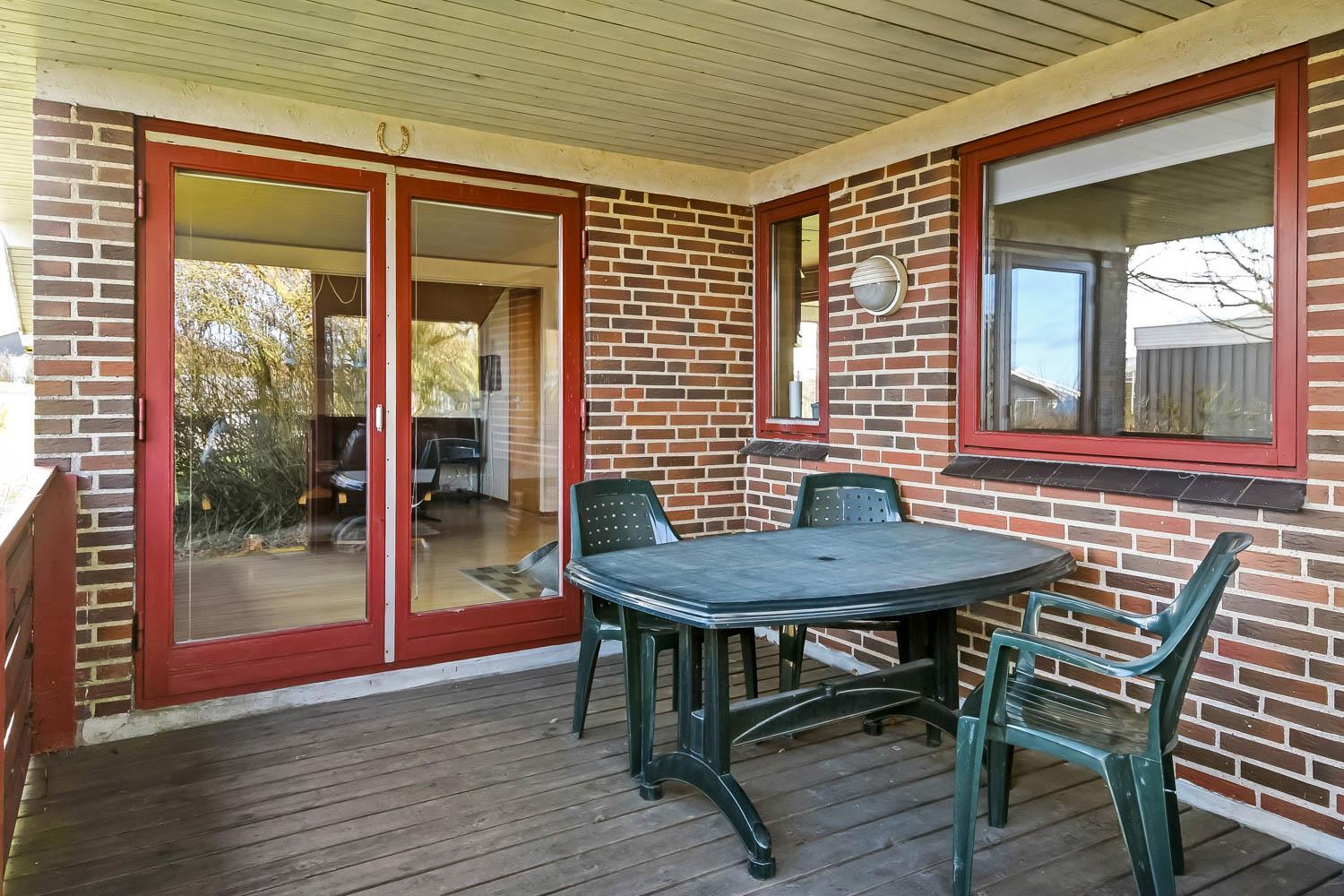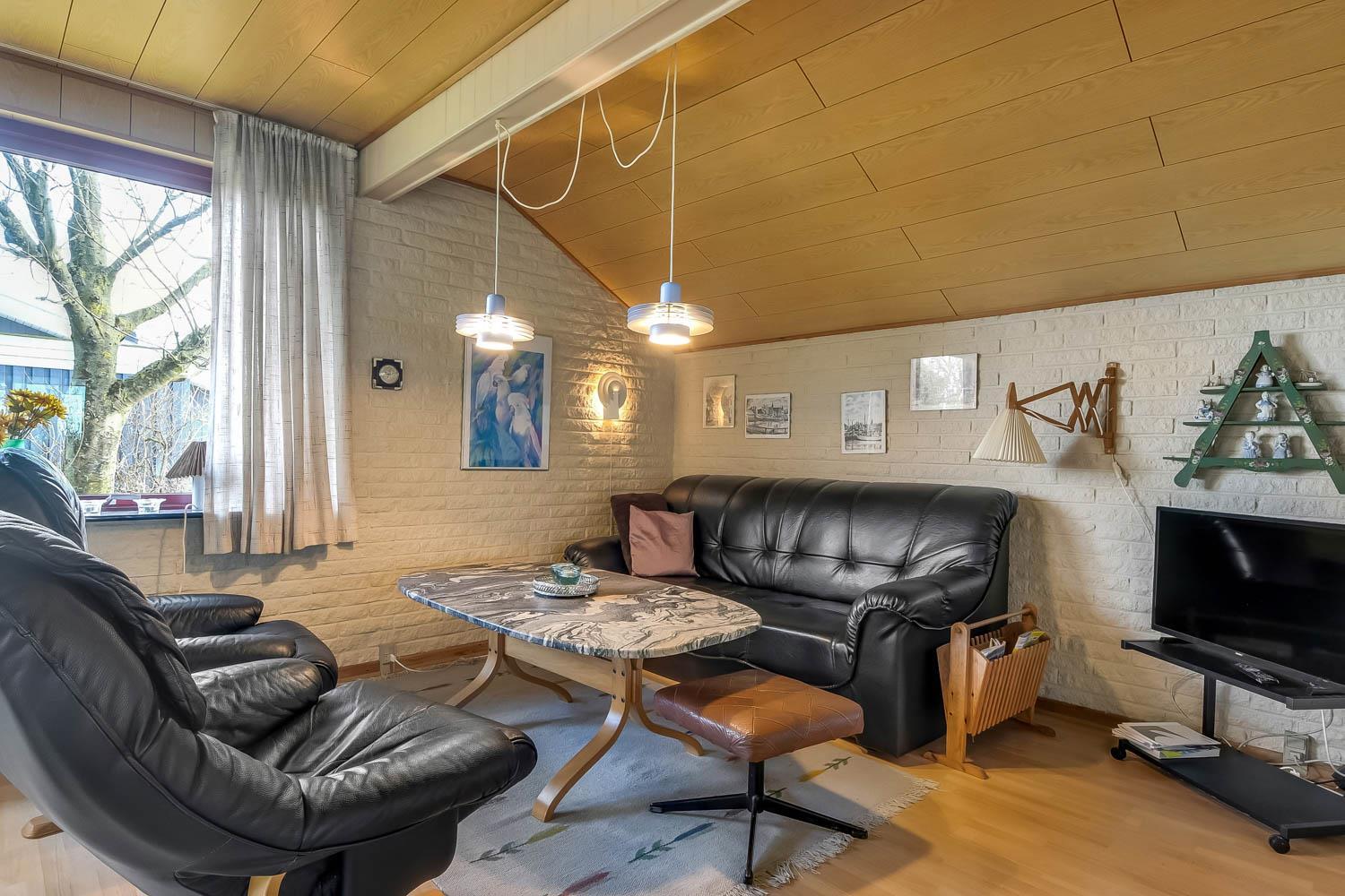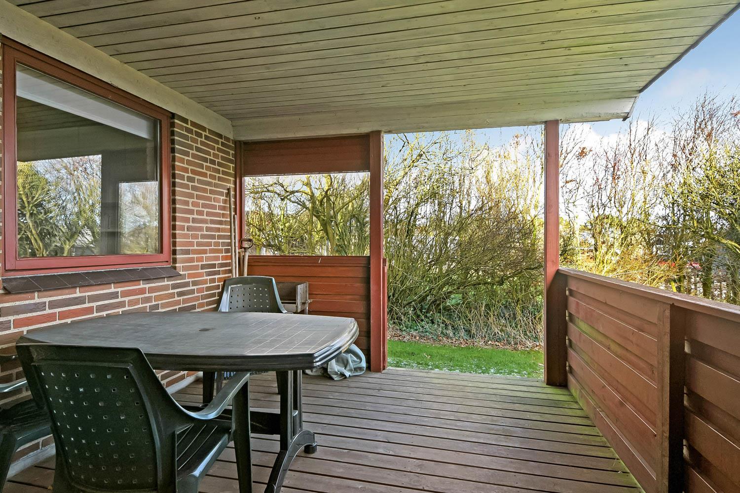 Dette velindrettede stenhus ligger på en ca. 850 m² græsplænegrund med gynge og gode udendørsarealer. Huset har en østvendt terrasse med direkte udgang fra stuen, hvor morgen- og formiddagssolen kan nydes.