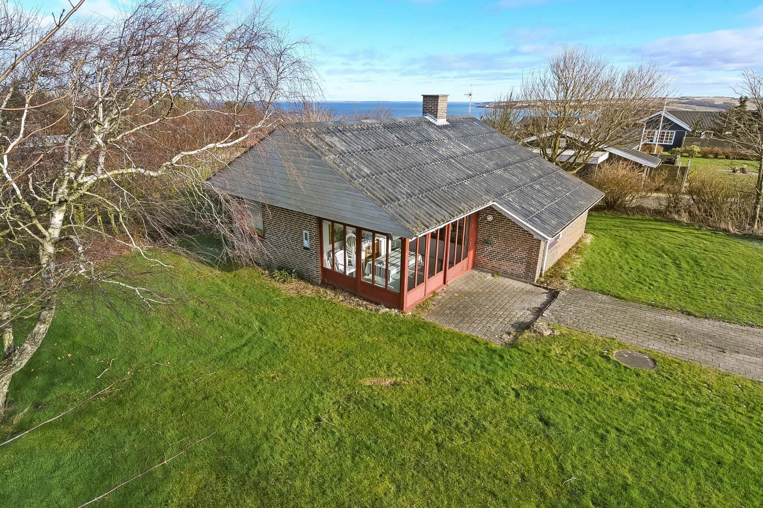 Huset er beliggende på en 850 m² naturgrund med terrasse, havemøbler og grill. Fra huset er der adgang til et stisystem, som på få minutter fører til fjorden, badestrand og badebroer.