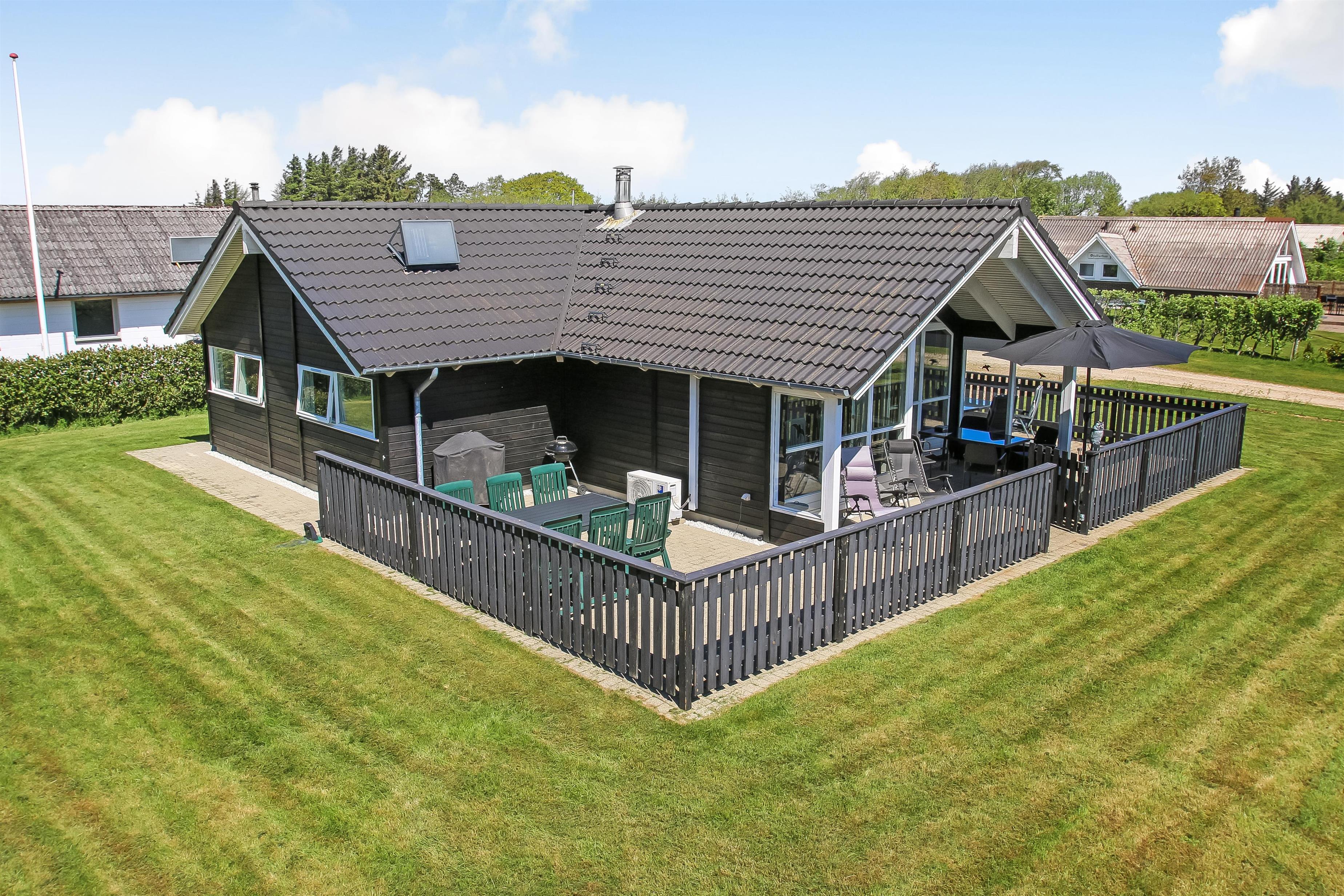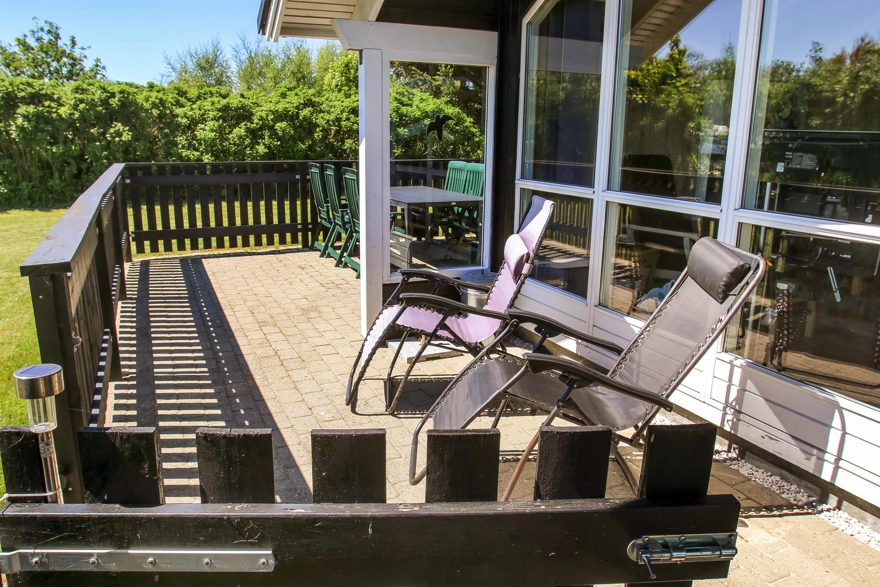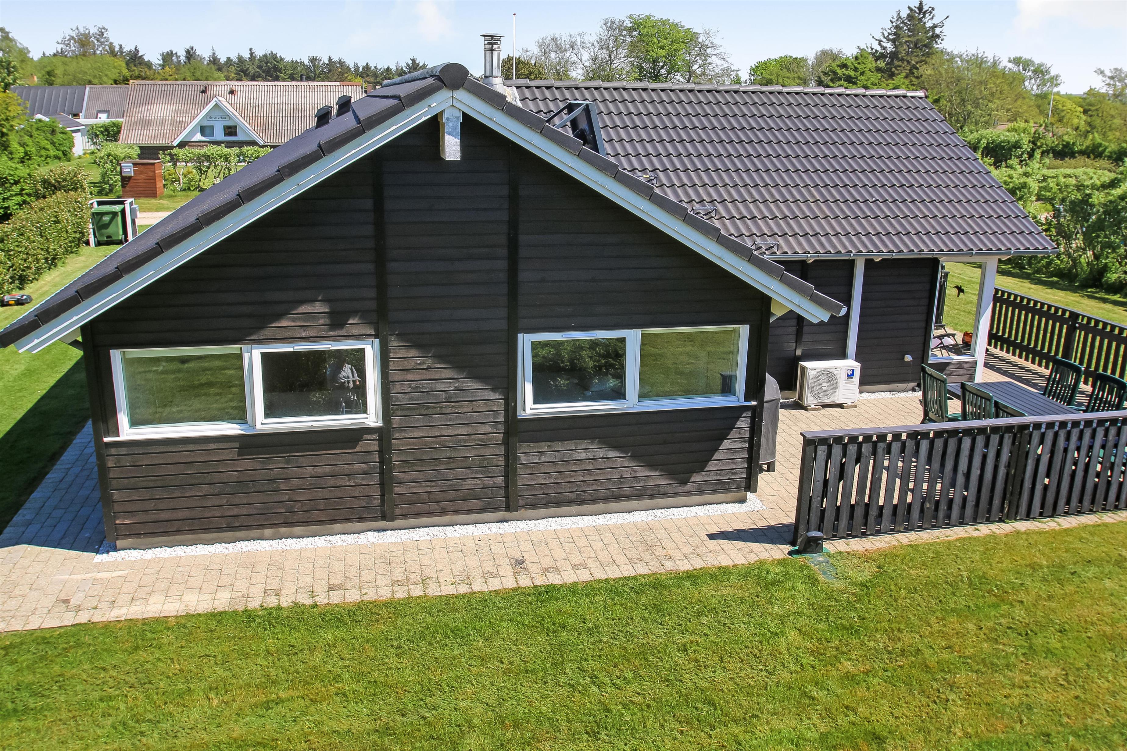 Beliggende på en ca. 1.100 m2 stor, velholdt grund kun 200 fra Limfjorden. Stort, delvist overdækket og indhegnet terrasseanlæg med havemøbler, solsenge og grill. Terrassen går hele vejen rundt om huset. For enden af den velholdte græsplæne er der lavet en fantastisk, udendørs, naturlig aktivitets område . Her er der altid læ samt en plads i solen. Der er bålplads, sandkasse og trampolin. Det perfekt område til leg og hyggeligt samvær. Perfekt til familier med mindre børn. Et lækkert feriehus på alle årstider. Fra huset findes der er dejligt stisystem som fører direkte ned til vandet på få minutter. Ca. 400 m fra huset ligger den nye flotte naturlegeplads i træ med fodboldbane og rutsjebane. Der er kun fire km til Lemvig, som er en livlig handelsby med mange butikker, fiskerestaurant, museum m.m. Tager man bilen er en tur til Thyborøn en oplevelse i sig selv og klares på 20 min. Her er der flere forskellige aktiviteter som fiskeriauktion, Sea War Museum eller besøg det spændende Jyllandsakvarie, hvor børnene kan se og røre ved fisk og krabber, eller besøg det helt unikke Sneglehus. Dagen sluttes af med is i hånden, mens at I går tur langs havnekajen og ser på alle fiskekutterne.