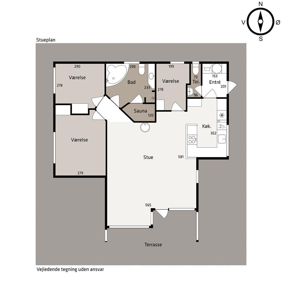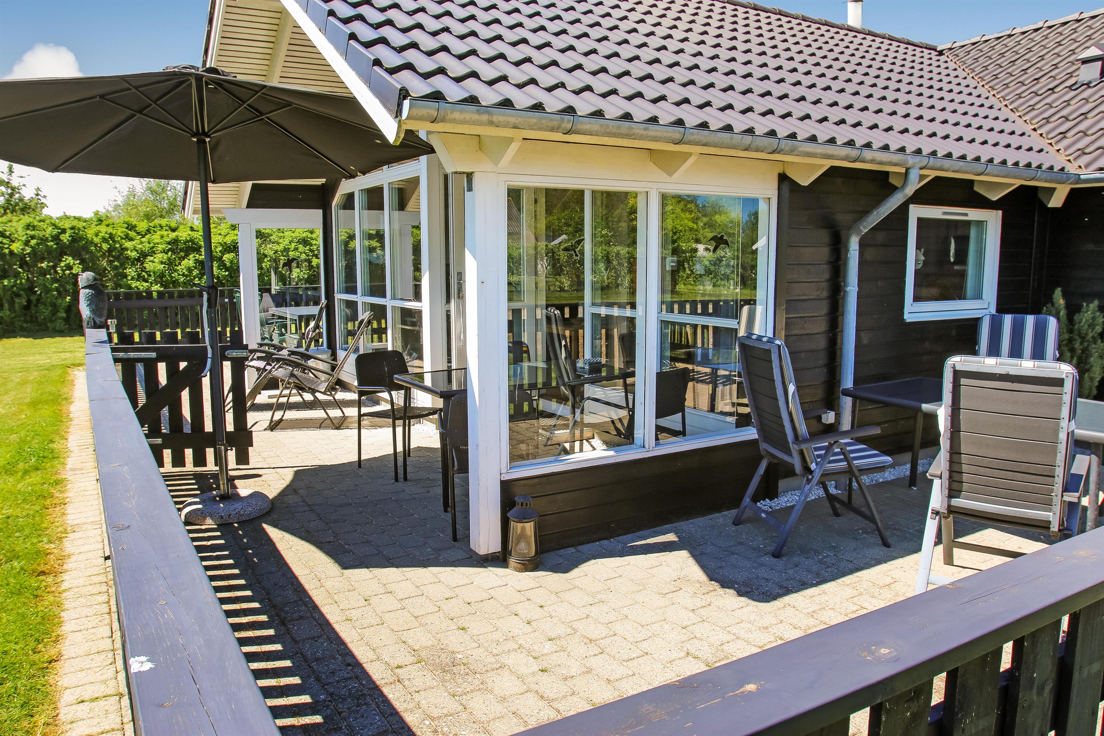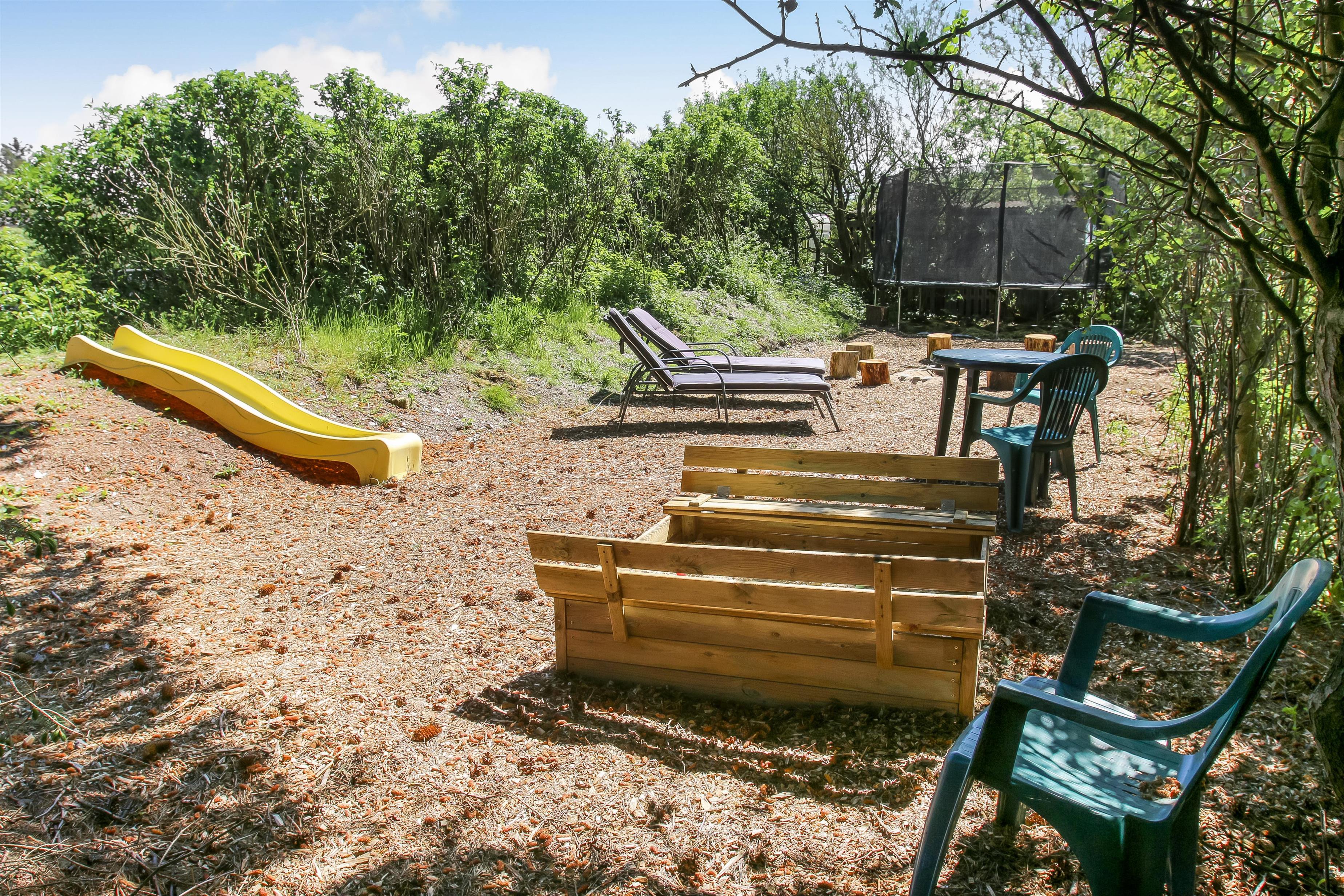 Beliggende på en ca. 1.100 m2 stor, velholdt grund kun 200 fra Limfjorden. Stort, delvist overdækket og indhegnet terrasseanlæg med havemøbler, solsenge og grill. Terrassen går hele vejen rundt om huset. For enden af den velholdte græsplæne er der lavet en fantastisk, udendørs, naturlig aktivitets område . Her er der altid læ samt en plads i solen. Der er bålplads, sandkasse og trampolin. Det perfekt område til leg og hyggeligt samvær. Perfekt til familier med mindre børn. Et lækkert feriehus på alle årstider. Fra huset findes der er dejligt stisystem som fører direkte ned til vandet på få minutter. Ca. 400 m fra huset ligger den nye flotte naturlegeplads i træ med fodboldbane og rutsjebane. Der er kun fire km til Lemvig, som er en livlig handelsby med mange butikker, fiskerestaurant, museum m.m. Tager man bilen er en tur til Thyborøn en oplevelse i sig selv og klares på 20 min. Her er der flere forskellige aktiviteter som fiskeriauktion, Sea War Museum eller besøg det spændende Jyllandsakvarie, hvor børnene kan se og røre ved fisk og krabber, eller besøg det helt unikke Sneglehus. Dagen sluttes af med is i hånden, mens at I går tur langs havnekajen og ser på alle fiskekutterne.