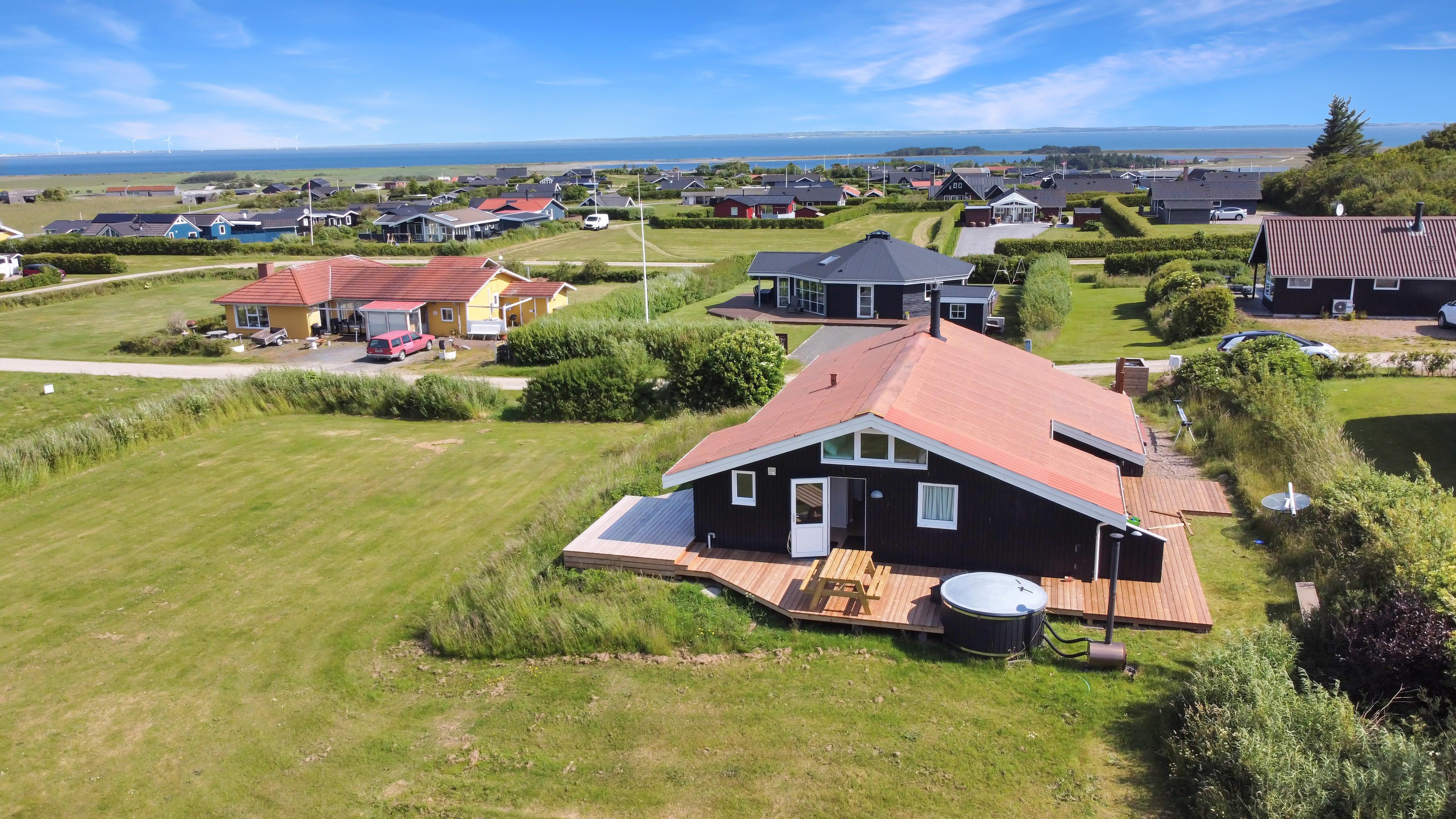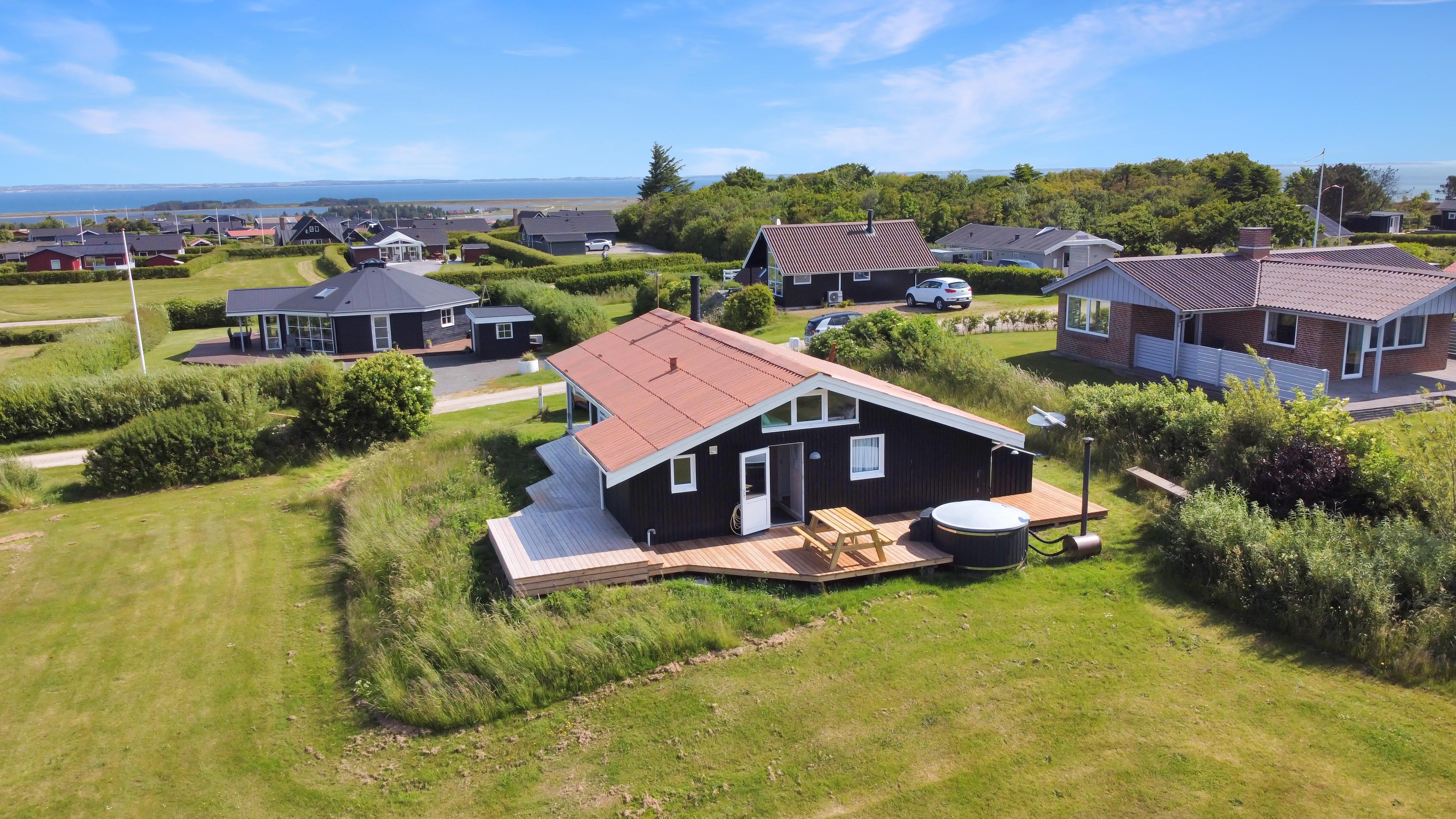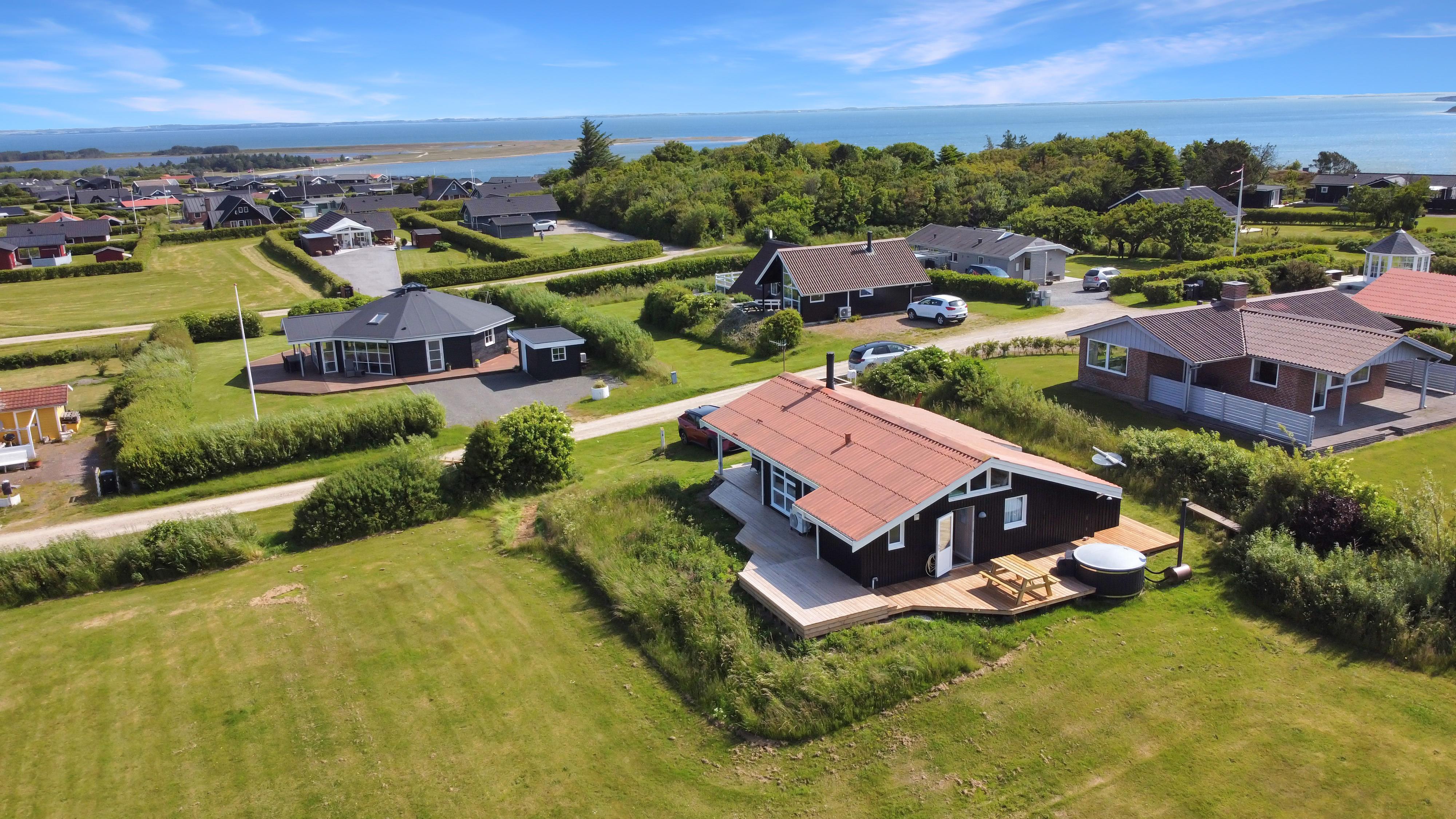 Helt ny terrasse fra midt i maj 2025. Flot, moderniseret med gratis Internet, vildmarksbad og en helt unik beliggenhed. Fantastisk udsigt over Limfjorden, Gjellerodde - til Thyborøn og Agger og med Vesterhavet i horisonten. Huset er ideelt både til 2 voksne og til familien som ønsker noget særligt og som ønsker at bo i et børnevenligt område med mange muligheder.