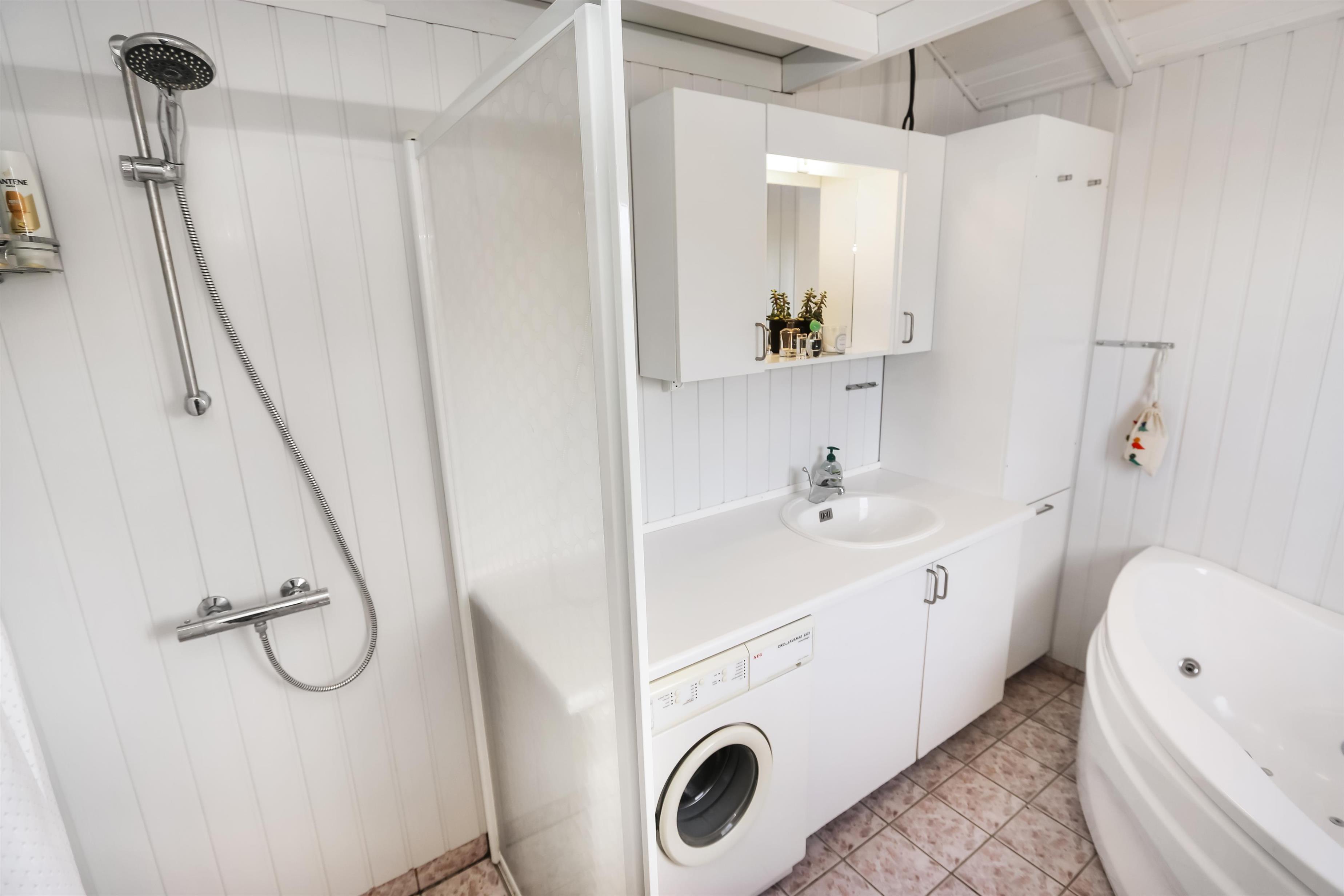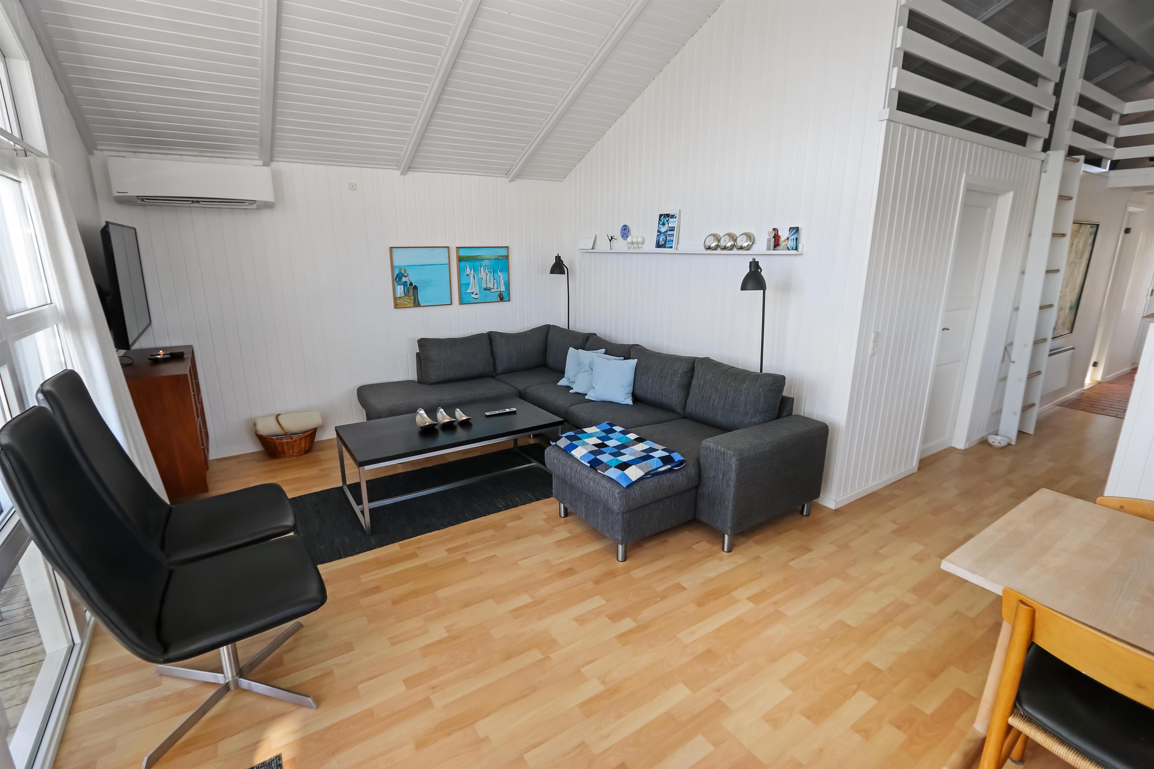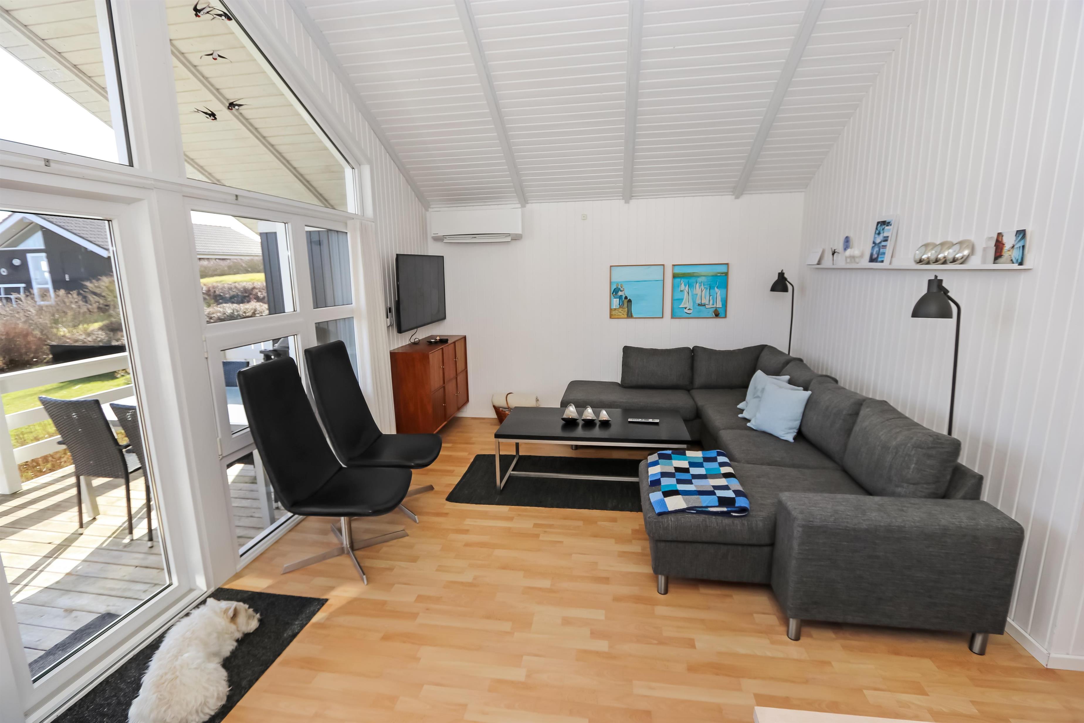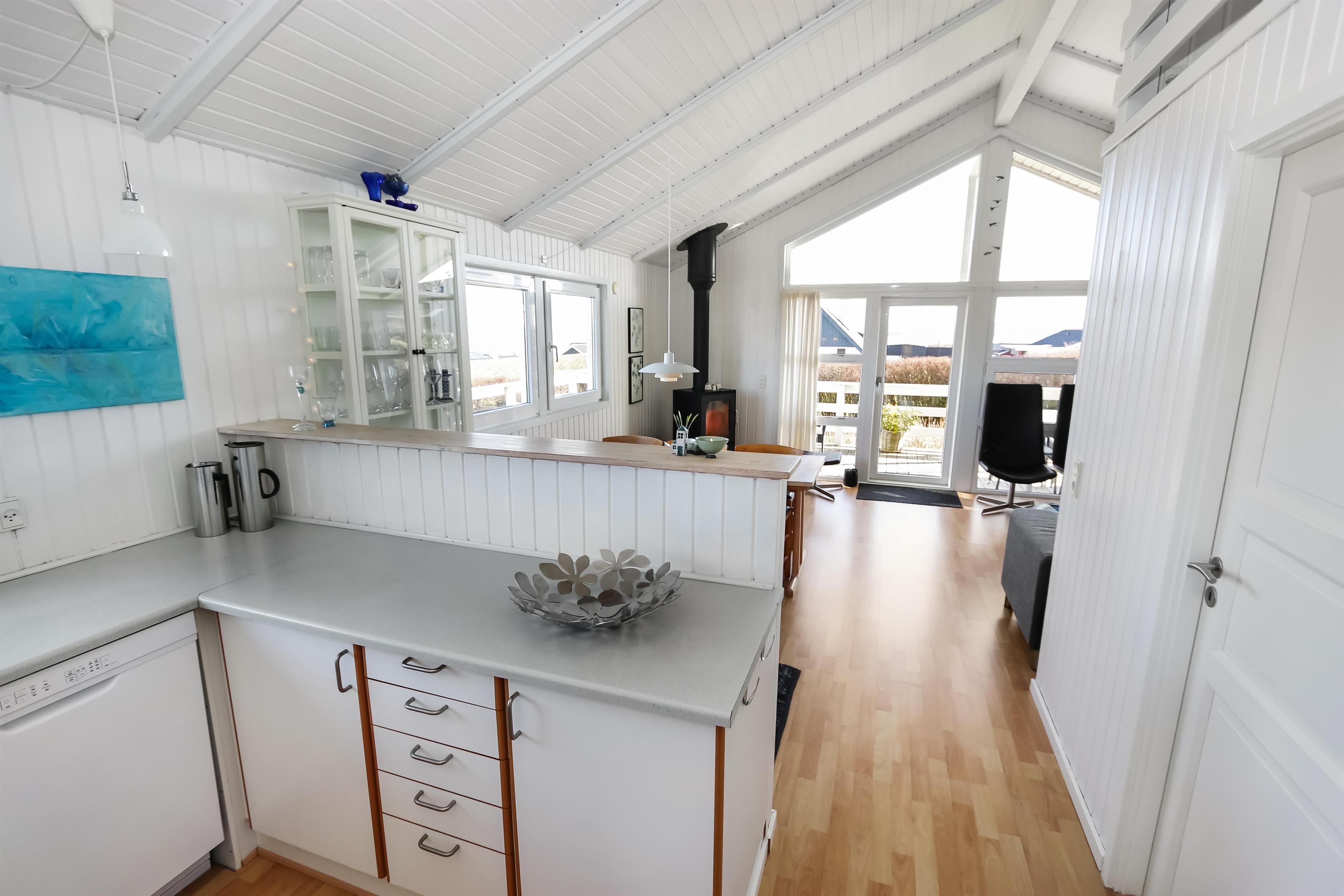 Allerede fra når i har parkeret bilen kan i se den flotte udsigt fra grunden. Stue og køkkenet er kombineret og der er åben til kip, de lyse farver i rummet og det store vinduesparti får hele rummet til at virke meget lys og hyggeligt. Stuen er med trægulv og flotte moderne lædermøbler, bærbar bluetooth højtaler, Smart-TV med danske programmer samt mulighed for streaming af TV / radio / Apps, så har du en mobiltelefon eller et andet device med kan du streame hvad du nu har abonnement. Spiseafdeling tæt ved køkkenet. Slap af foran den knitrende brændeovn som sammen med varmepumpen hjælper med at reducere udgiften til varmeregningen. Flot køkkenafdeling med alle tænkelige hjælpemidler så som El-komfur, køleskab med 30 l frostboks, opvaskemaskine og mikroovn. 3 gode soverum: 1DS + 1DS + 1 3/4 seng. Fra stuen er der opgang til hems med 3 sovepladser. Flot badeværelse: Toilet, håndvask, bruser, gulvvarme og spa. Gæstetoilet: Toilet og håndvask. Desuden er der en vaskemaskine i huset. Dette hus er et ikke rygerhus.