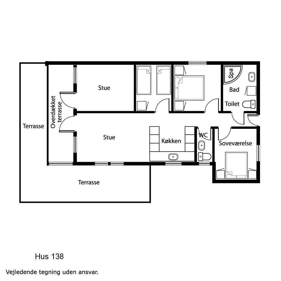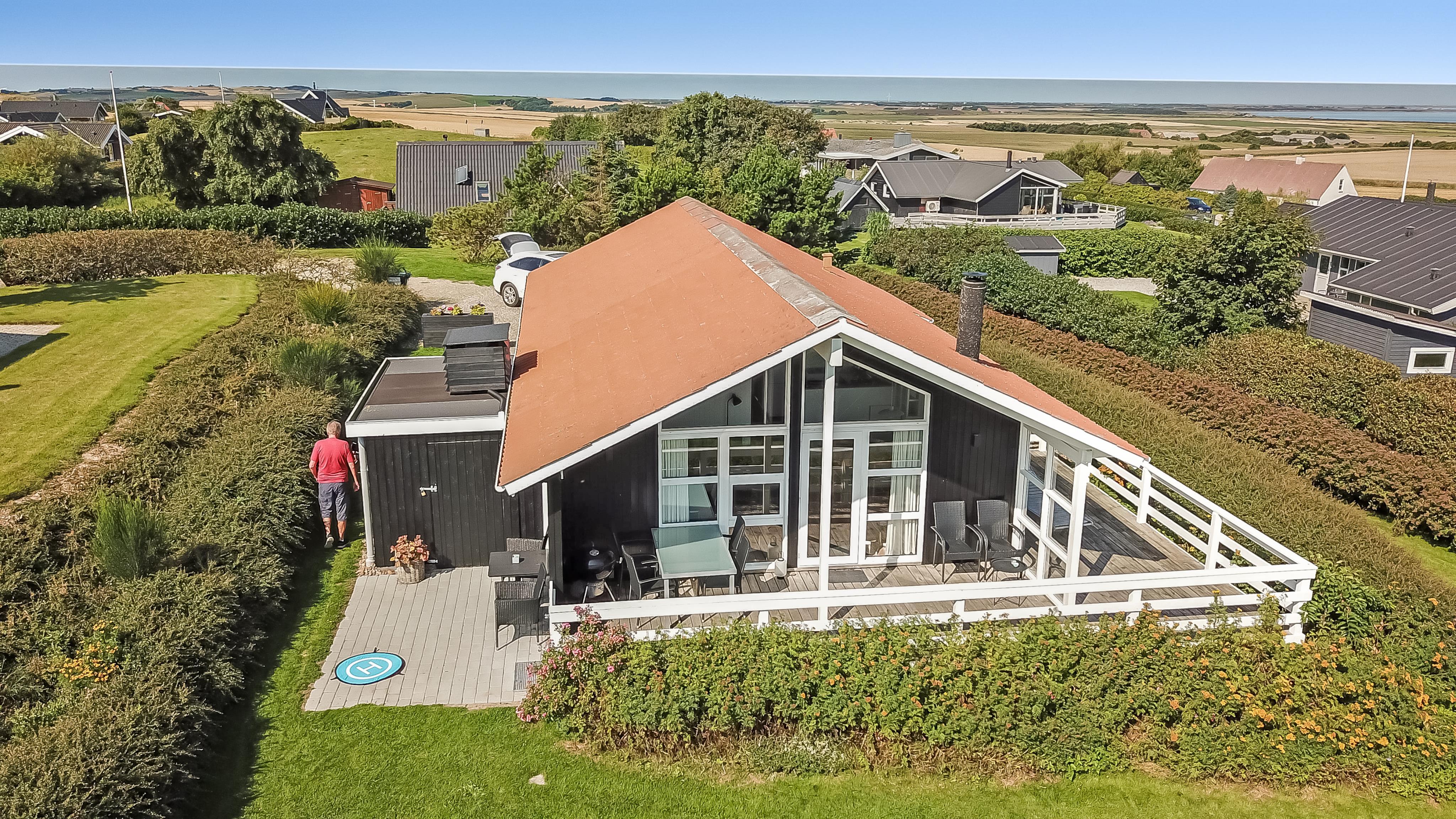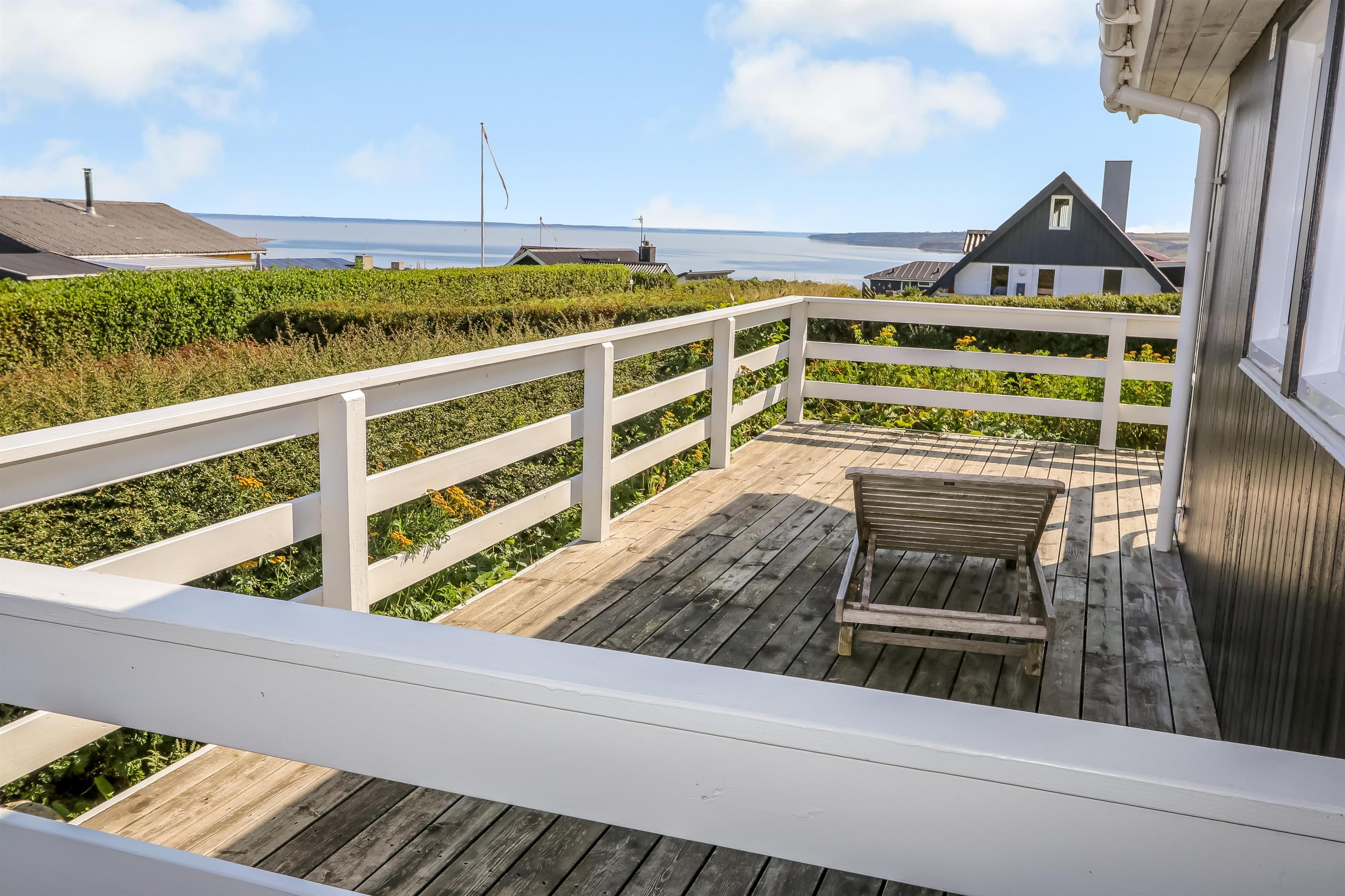 Fra stuen er der udgang til en delvis lukket og overdækket terrasse som selvfølgelig har havemøbler, solvogne og grill til rådighed. Fra terrassen er der en fantastisk udsigt over Limfjorden og området. Lemvig by ligger blot 3 km fra huset og her finder i gode indkøbsmuligheder i mange specialforretninger, restauranter ligesom der på havnen er legeplads og skaterbane til fri afbenyttelse. Dette hus er et virkelig godt valg også hvis man er 2 familier som ønsker at holde ferie sammen.