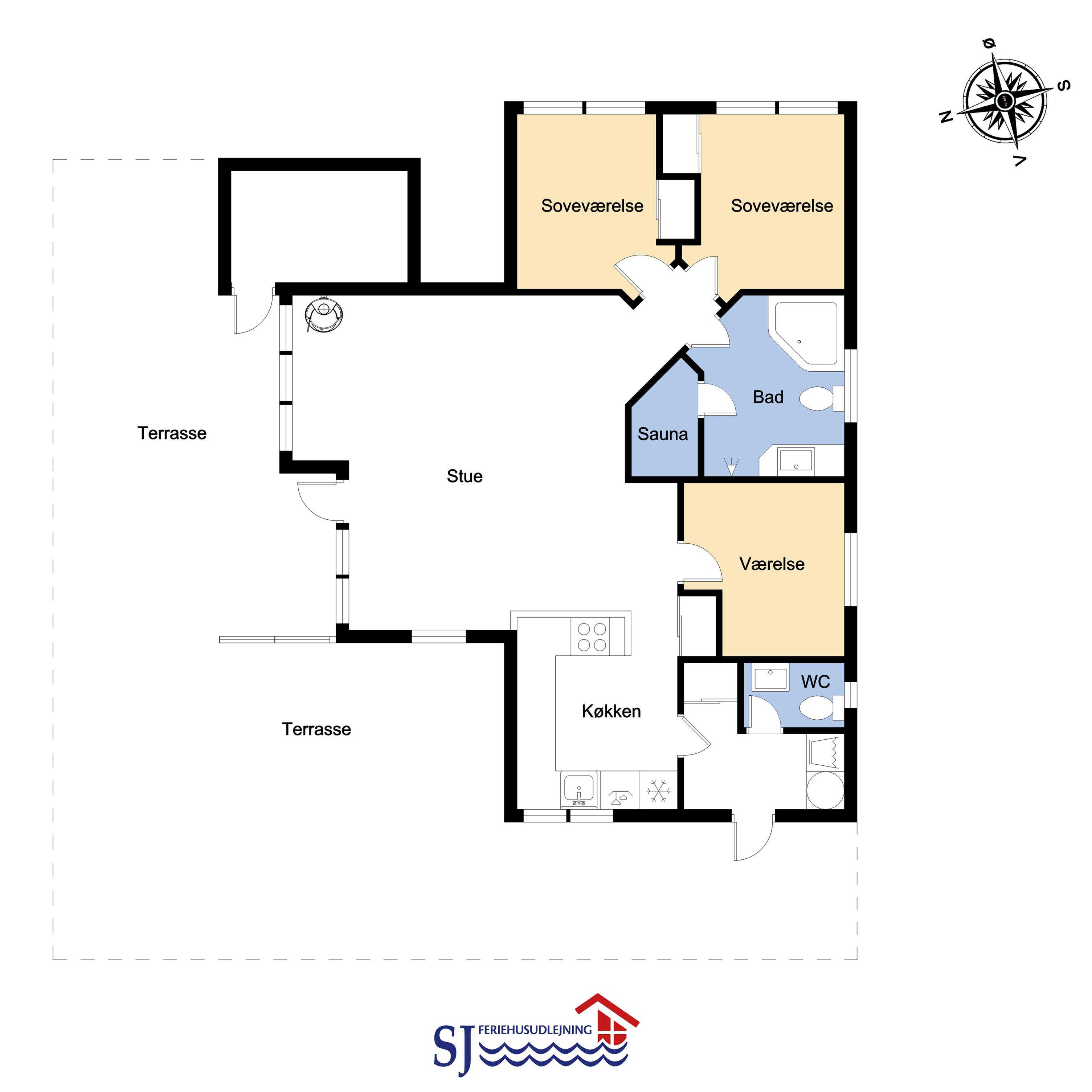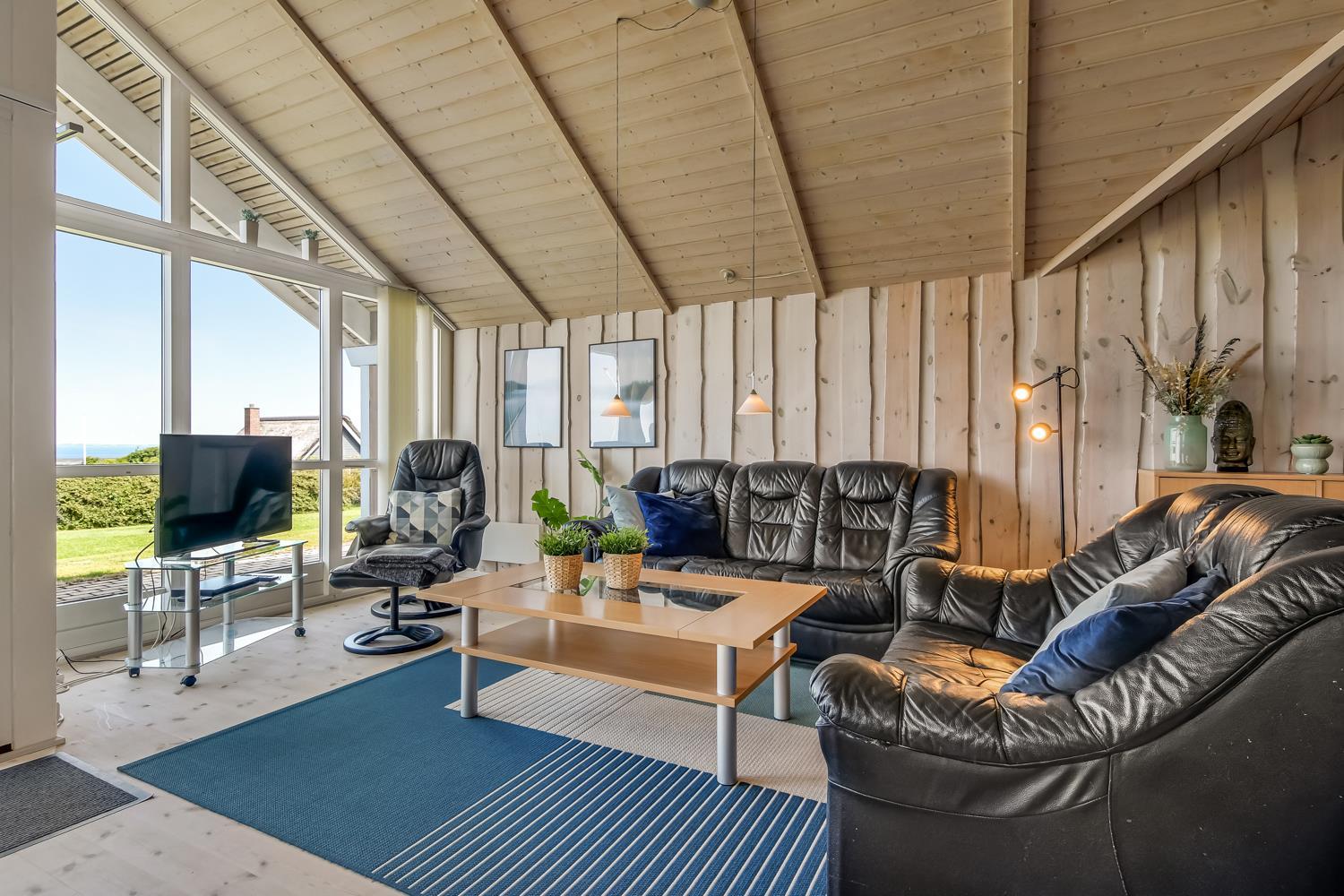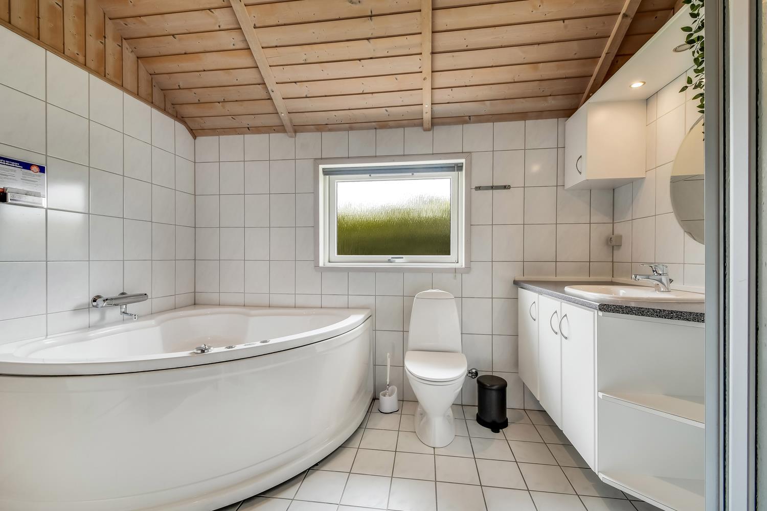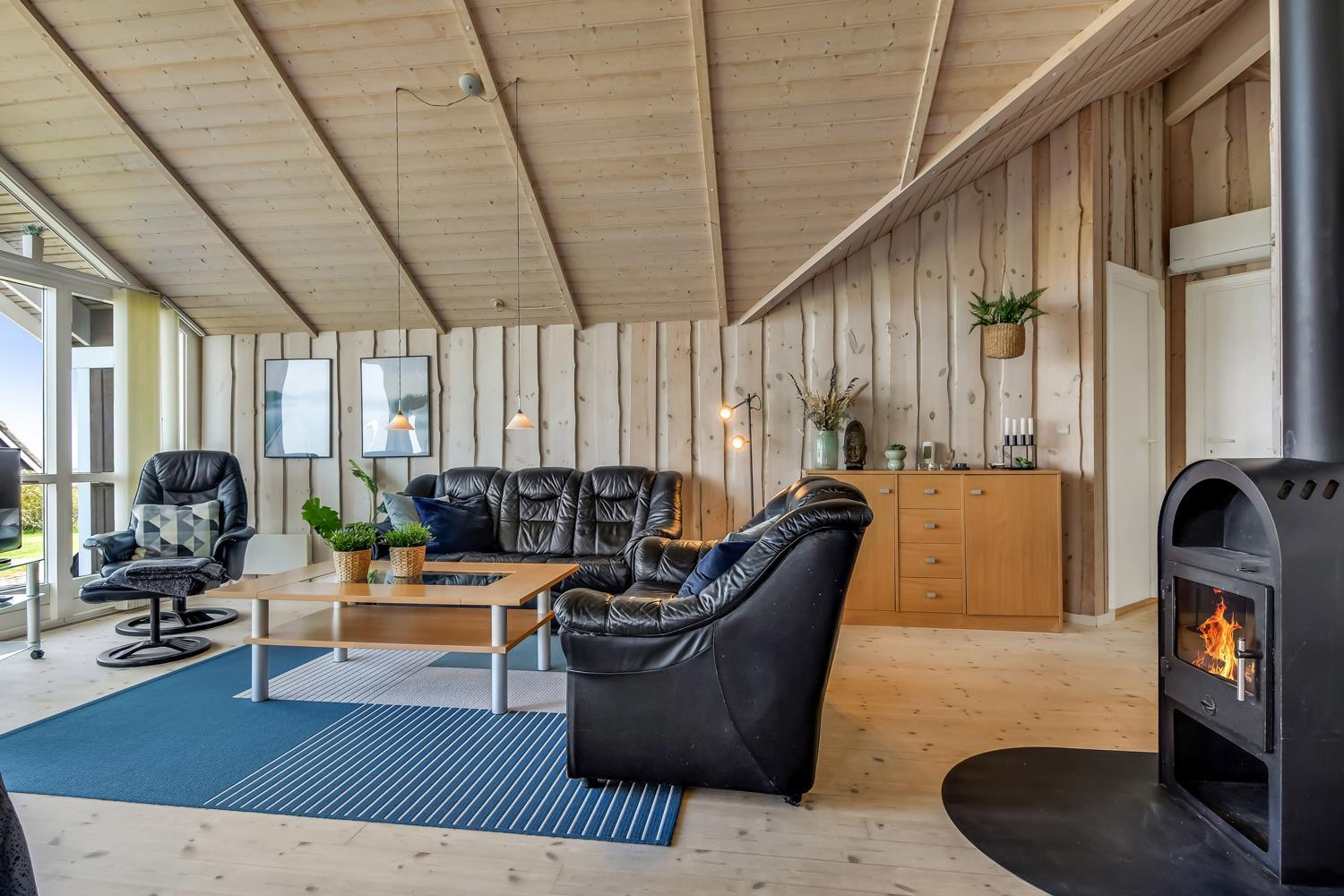 Særdeles flot og velplejet feriehus på 87 m2 med 3 gode soverum (1DS, 1DS, 1KS). En dejlig entré med afliggeplads, vaskemaskine og tørretumbler byder velkommen. Kombineret opholdsstue og køkkenhjørne i kip og med store vinduespartier som gør huset lyst og venligt. Opholdsstuen med gode lædermøbler, spisebord, TV med gratis danske og tyske programmer og mulighed for brug af Chromecast, CD / DVD / Radio. Slap af foran den knitrende brændeovn som sammen med varmepumpen hjælper med at reducere udgiften til varmeregningen. Køkkenhjørnet er lyst og venligt og har alt i hårde hvidevarer: Komfur med glaskeramiske kogeplader, mikroovn, emhætte, køleskab med fryseboks, opvaskemaskine og alt i service / køkkengrej. Praktiske hårde gulve i opholdsstue, køkkenhjørne og i soveværelserne. Stort flot badeværelse med bruser, toilet, håndvask, klinkegulv med gulvvarme, spabad og direkte adgang til sauna. Ekstra toilet med gulvvarme, toilet og håndvask. Barnestol til børnene. Gratis adgang til Lemvig Idræts & kulturcenter hvor der er svømmehal mm. Se venligst: www.lemvig-idraets-og-kulturcenter.dk. Ikke-ryger hus. Max 1. husdyr tilladt.