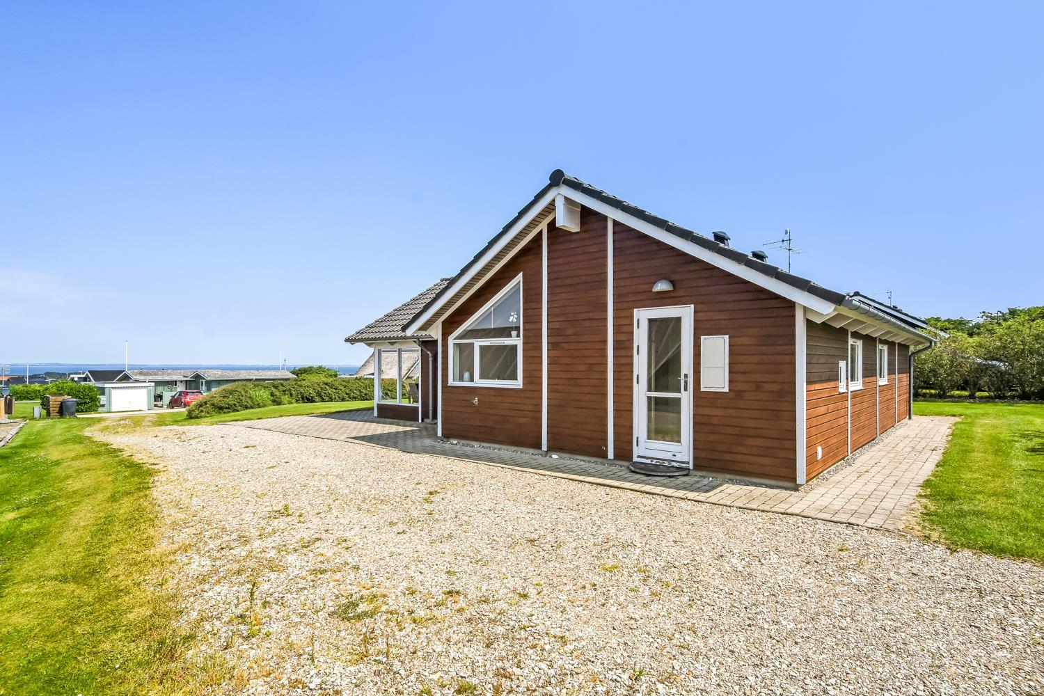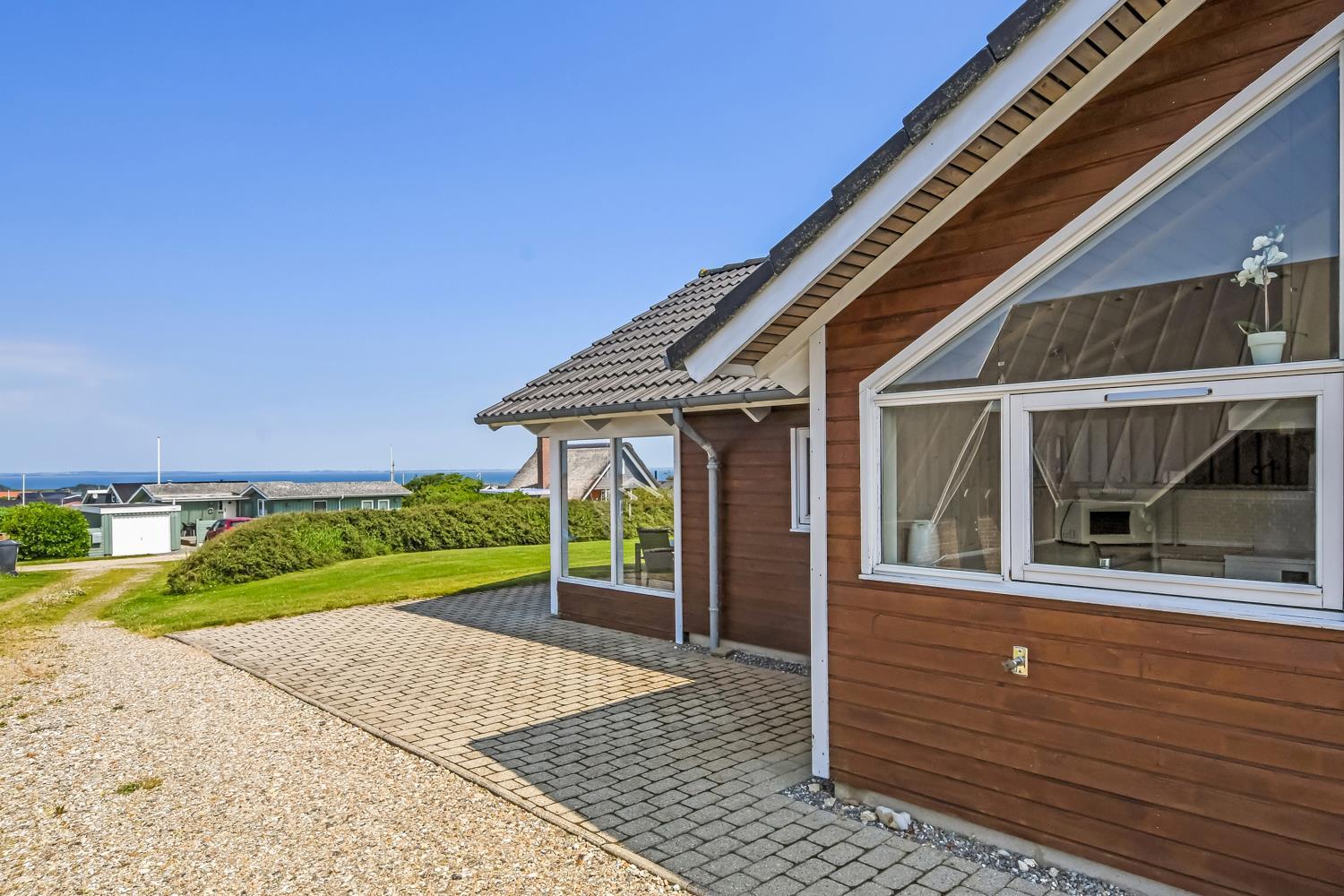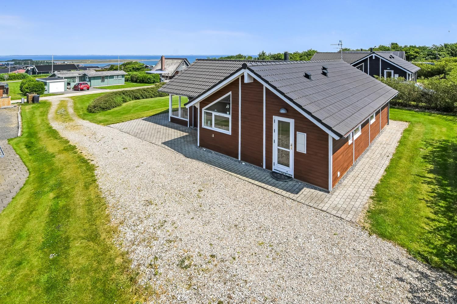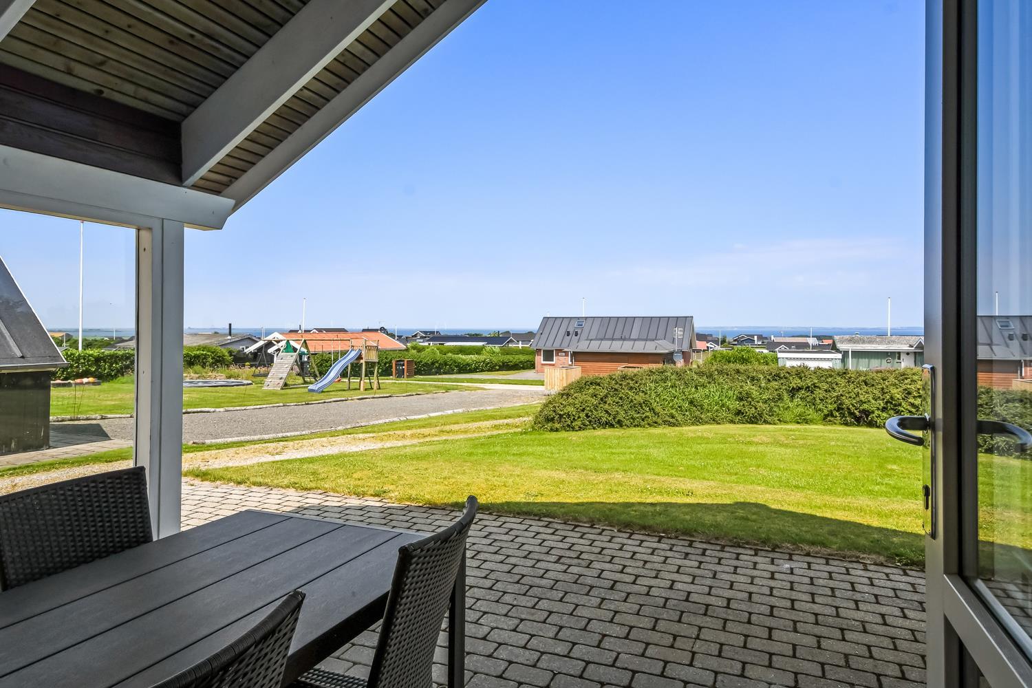 Beliggende på en ca. 955 m2 stor, velholdt grund kun 300 fra Limfjorden. Stort, delvist overdækket terrasseanlæg med havemøbler, solsenge og grill. Terrassen går hele vejen rundt om huset, så der er altid mulighed for en plads i solen. Et lækkert feriehus på alle årstider. Fra huset findes der er dejligt stisystem som fører direkte ned til vandet på få minutter. Ca. 400 m fra huset ligger den nye flotte naturlegeplads i træ med fodboldbane og rutsjebane. Der er kun fire km til Lemvig, som er en livlig handelsby med mange butikker, fiskerestaurant, museum m.m. Tager man bilen er en tur til Thyborøn en oplevelse i sig selv og klares på 20 min. Her er der flere forskellige aktiviteter som fiskeriauktion, Sea War Museum eller besøg det spændende Jyllandsakvarie, hvor børnene kan se og røre ved fisk og krabber, eller besøg det helt unikke Sneglehus. Dagen sluttes af med is i hånden, mens at I går tur langs havnekajen og ser på alle fiskekutterne.